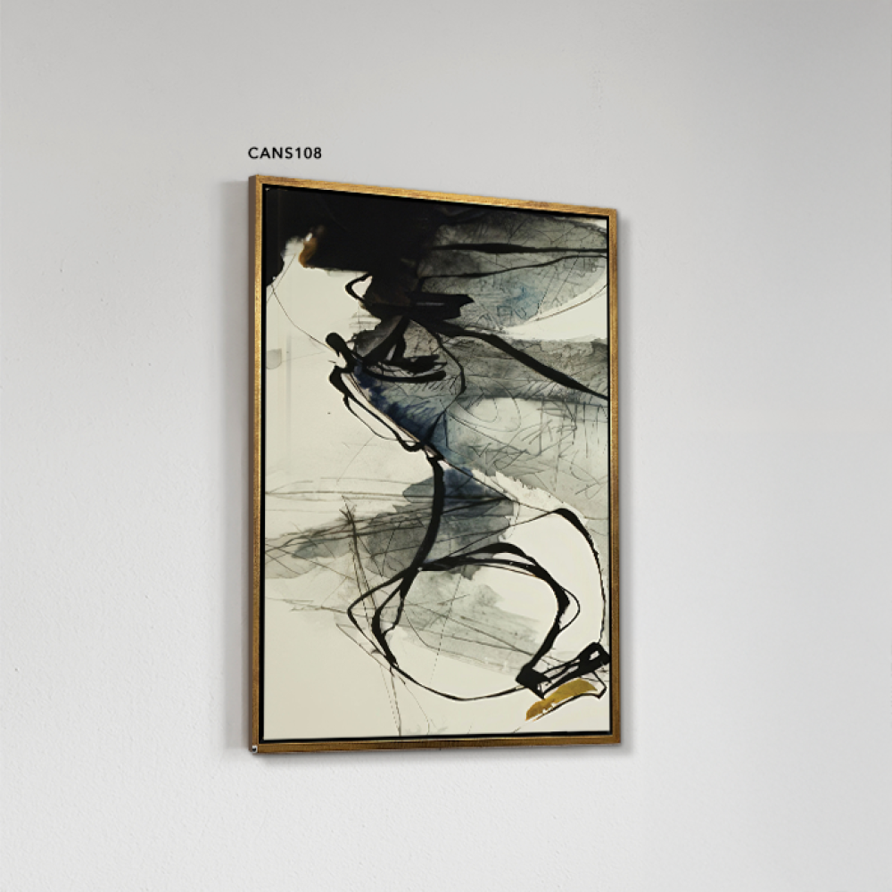 لوحة جدارية كانفس ، خطوط عشوائية - تدرجات الأسود والأخضر مع الرمادي