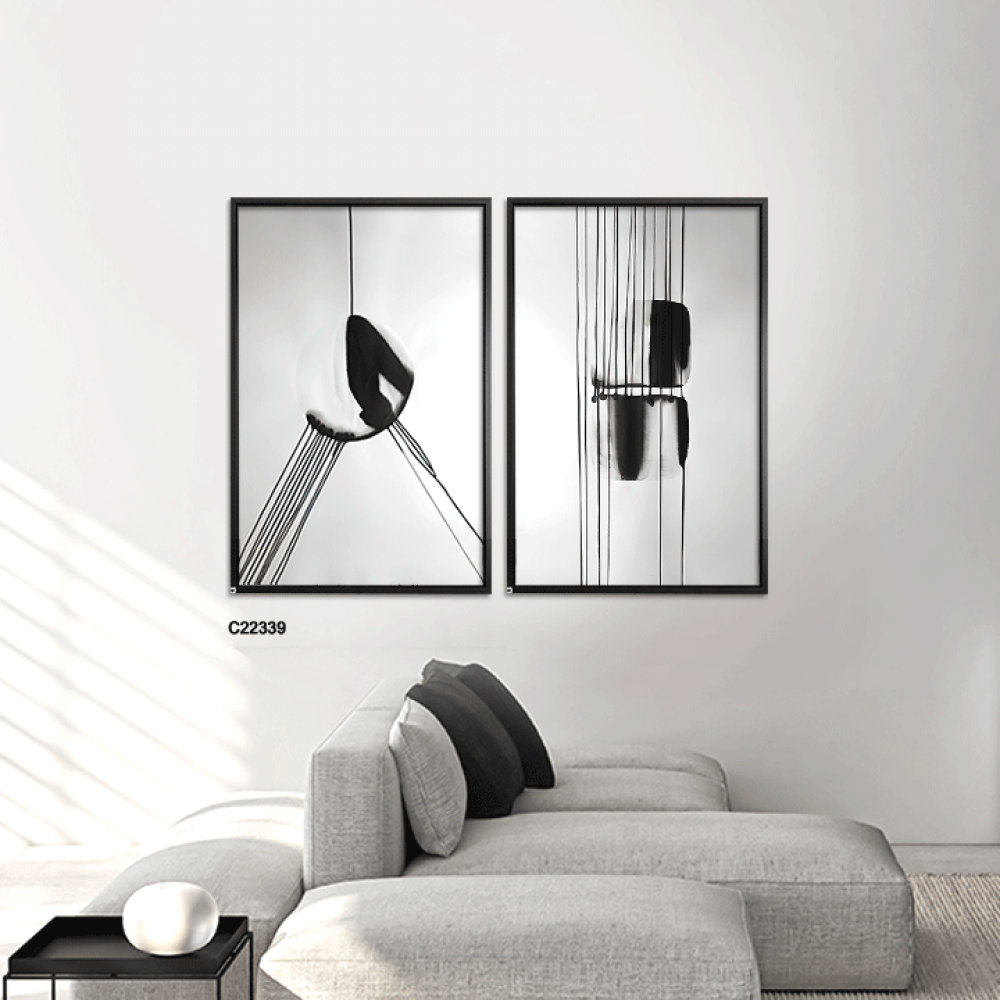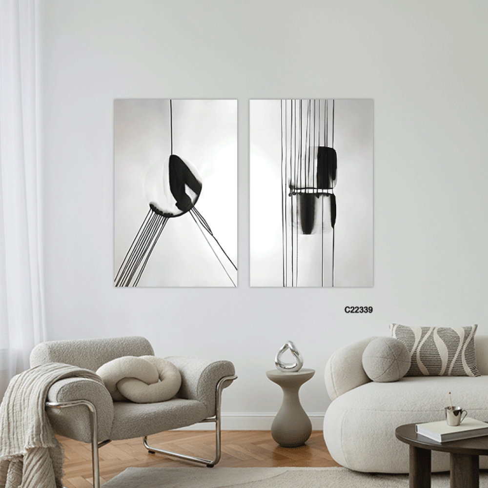 تأتي هذه اللوحة بتصميم، يحمل خطوط واشكال بتدرجات الأسود على خلفية باللون الأبيض والرمادي بما يضفي تأثيرًا فنيًا على أي مكان تٌضع فيه. ستكون إضافة مثالية إلى غرف المعيشة وغرف النوم والمكاتب.