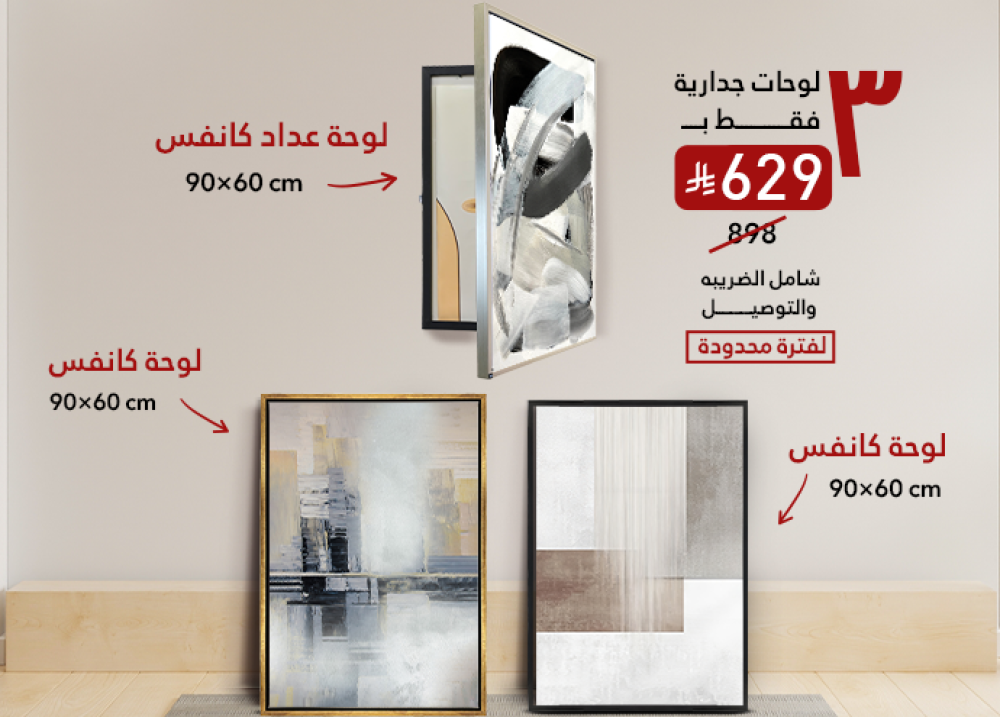 أضف لمسة من الذوق العصري لجدران منزلك مع عرض مميز من 3 لوحات كانفس بتصميمات فنية تجريدية ناعمة وألوان هادئة:🔹 لوحة كانفس لتغطية العداد تجريدية بالأبيض والأسود والرمادي بتفاصيل انسيابية حديثة تمنح المكان طابعًا معاصرًا وأنيقًا – (90 × 60 سم)🔹 لوحة كانفس بلون رملي ولمسات هندسيةتمزج بين الأبيض والبني بتدرجات فاخرة لتناسب غرف المعيشة أو المكاتب – (90 × 60 سم)🔹 لوحة فنية بتفاصيل ضبابية أنيقةتحاكي الأسلوب الأوروبي الحديث في اللوحات التجريدية، بتأثير بصري مريح ومتوازن – (90 × 60 سم)✔️ السعر يشمل الضريبة والتوصيل✔️ جاهزة للتعليق✔️ جودة طباعة ممتازة على قماش كانفس مشدود بإطار داخلي