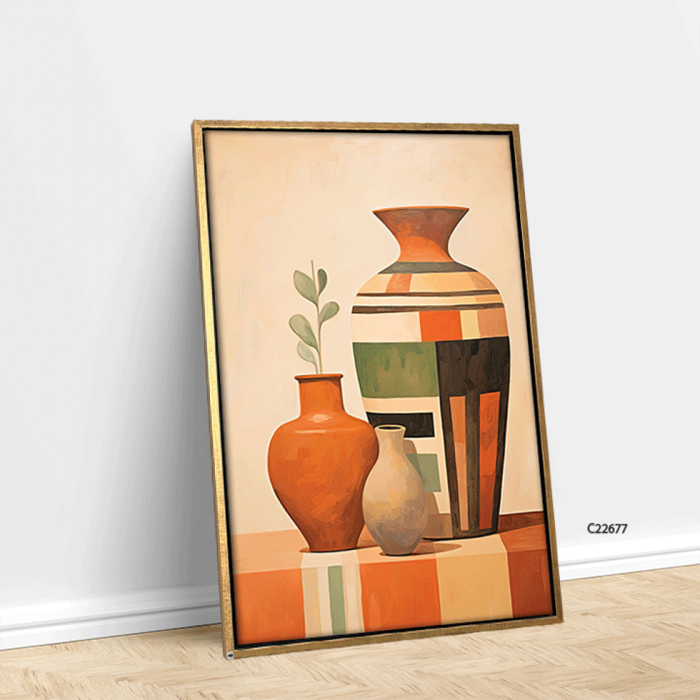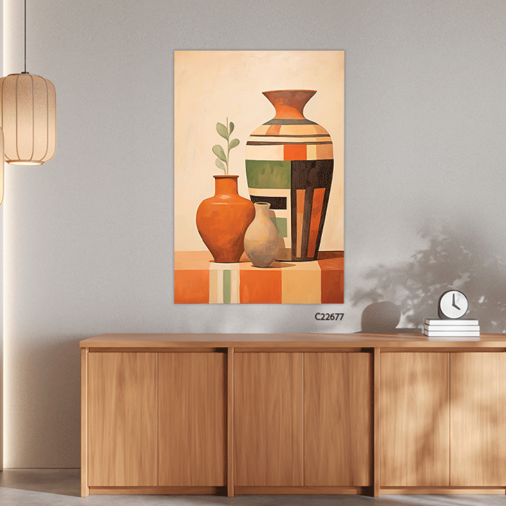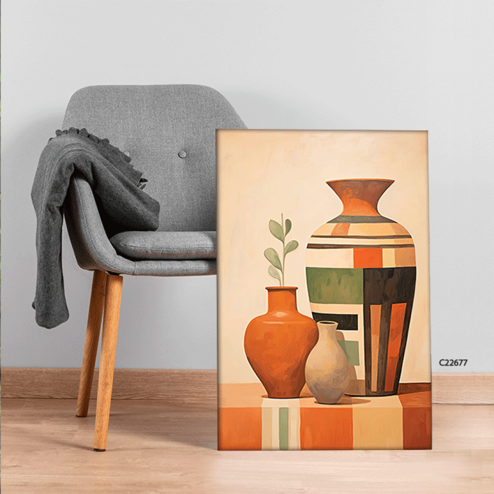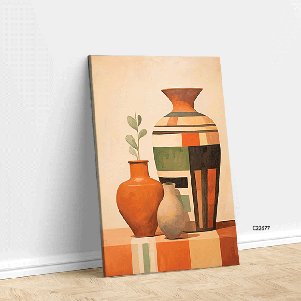 لوحة جدارية تصور مزهريات ملونة بتدرجات دافئة
