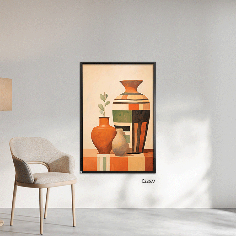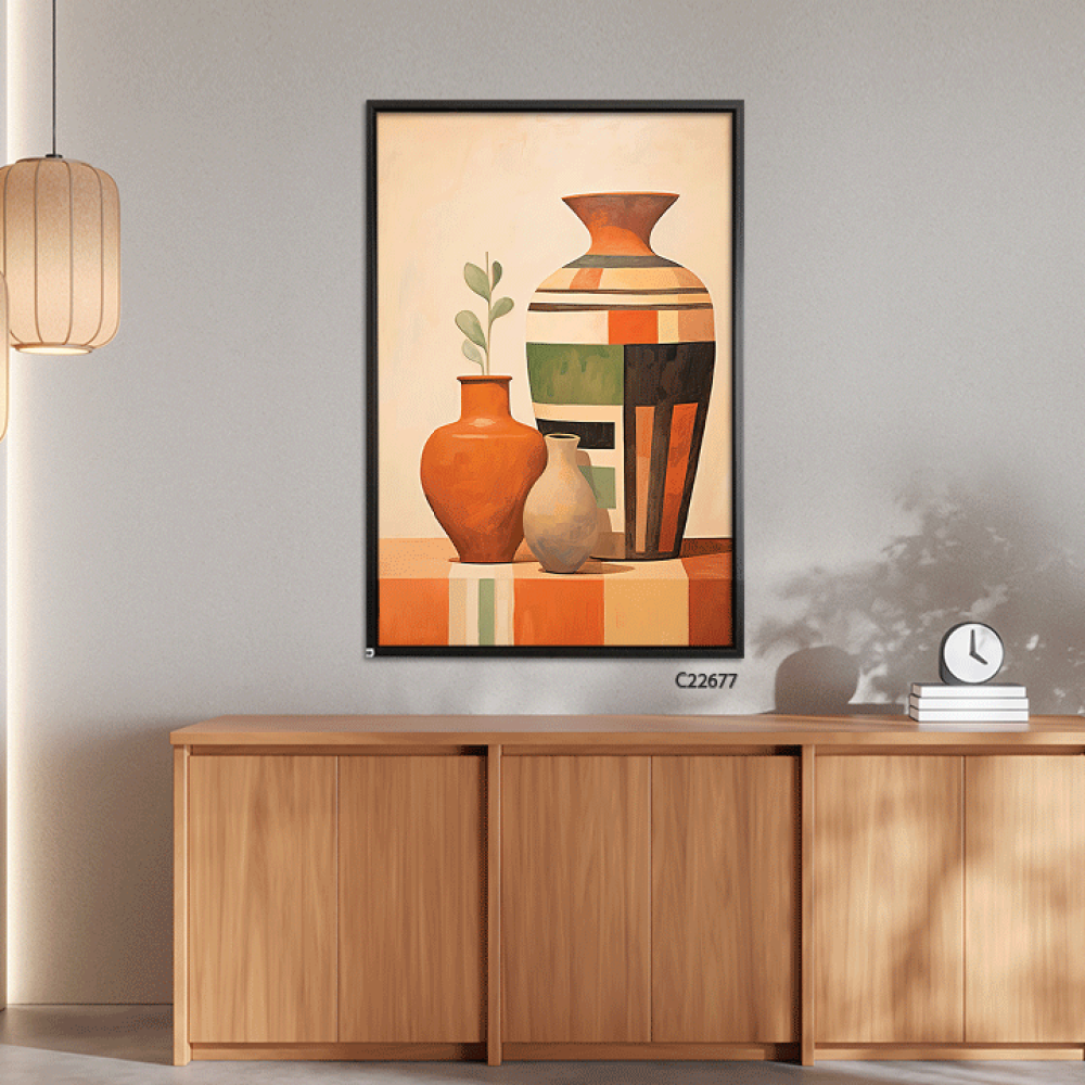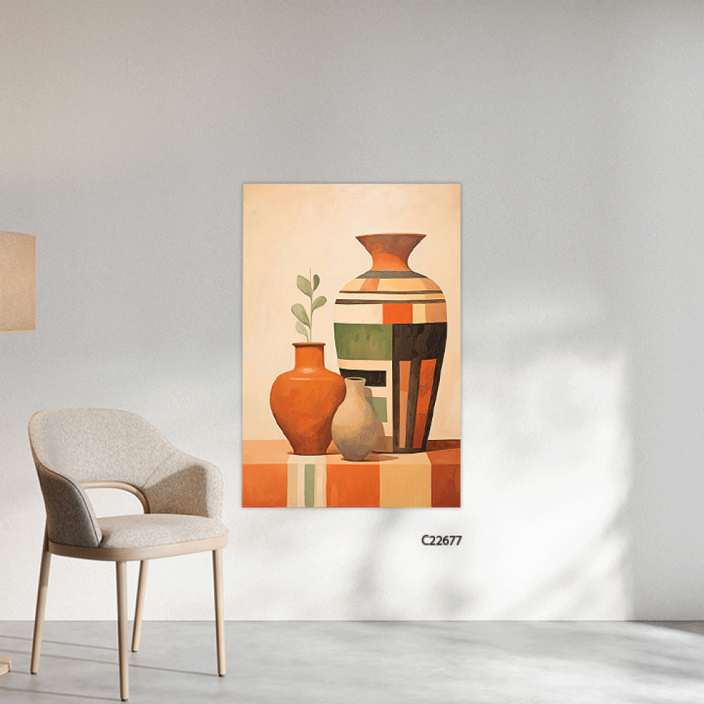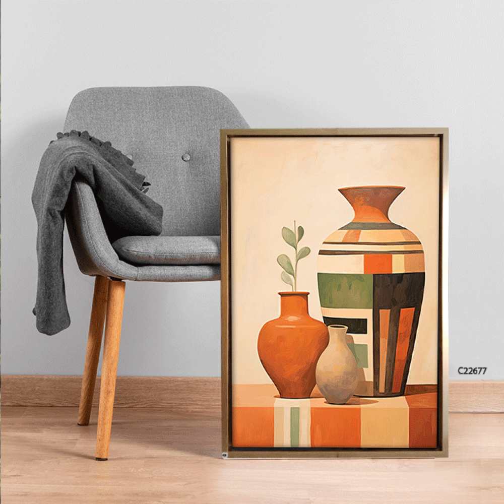 لوحة جدارية تصور مزهريات ملونة بتدرجات دافئة