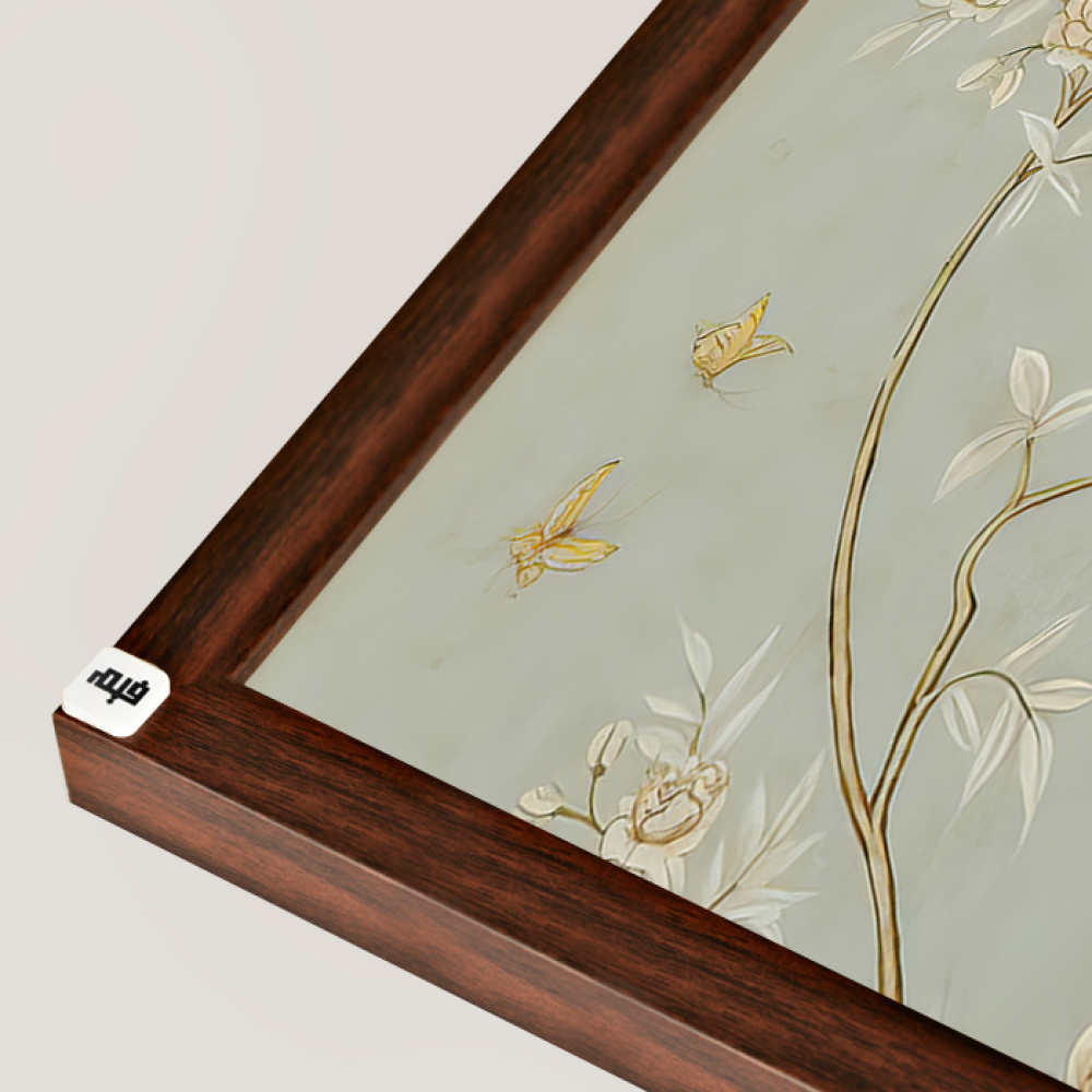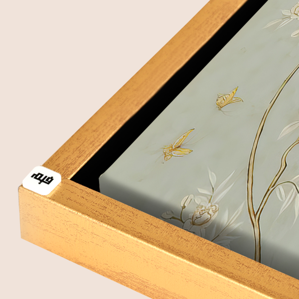 لوحة جدارية تتميز بخلفية باللون الأخضر الفاتح وتحتوي على رسومات فنية دقيقة لأغصان مزهرة بألوان هادئة مثل الذهبي والبيج. على الأغصان، توجد طيور ملونة بلون الأزرق والأخضر مما يضيف لمسة حيوية إلى التصميم. اللوحة تتمتع بتفاصيل راقية وناعمة تناسب الديكورات الكلاسيكية والحديثة على حد سواء.*لوحات جدارية مطبوعة على أجود الخامات قابلة للمسح. * كود المنتج : C22624* سهلة التركيب لوجود حامل خلفي .* جاهزة للتركيب (يوجد مسامير مرفقة مع الطلب) .* الاطار الظاهر بالصورة افتراضي يمكن اختيار نوع وشكل الاطار او بدون الاطار.* للتعديل على الألوان او المقاس او اضافة طبقة من الاكريليكيرجى التواصل واتس على 0556823009 .اكتشف كل ما يخص اللوحات الجدارية وكيف تختار الأنسب لمساحتك عبر المقال التالي " لوحات جدارية"