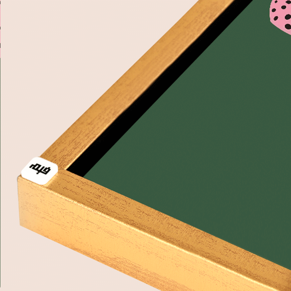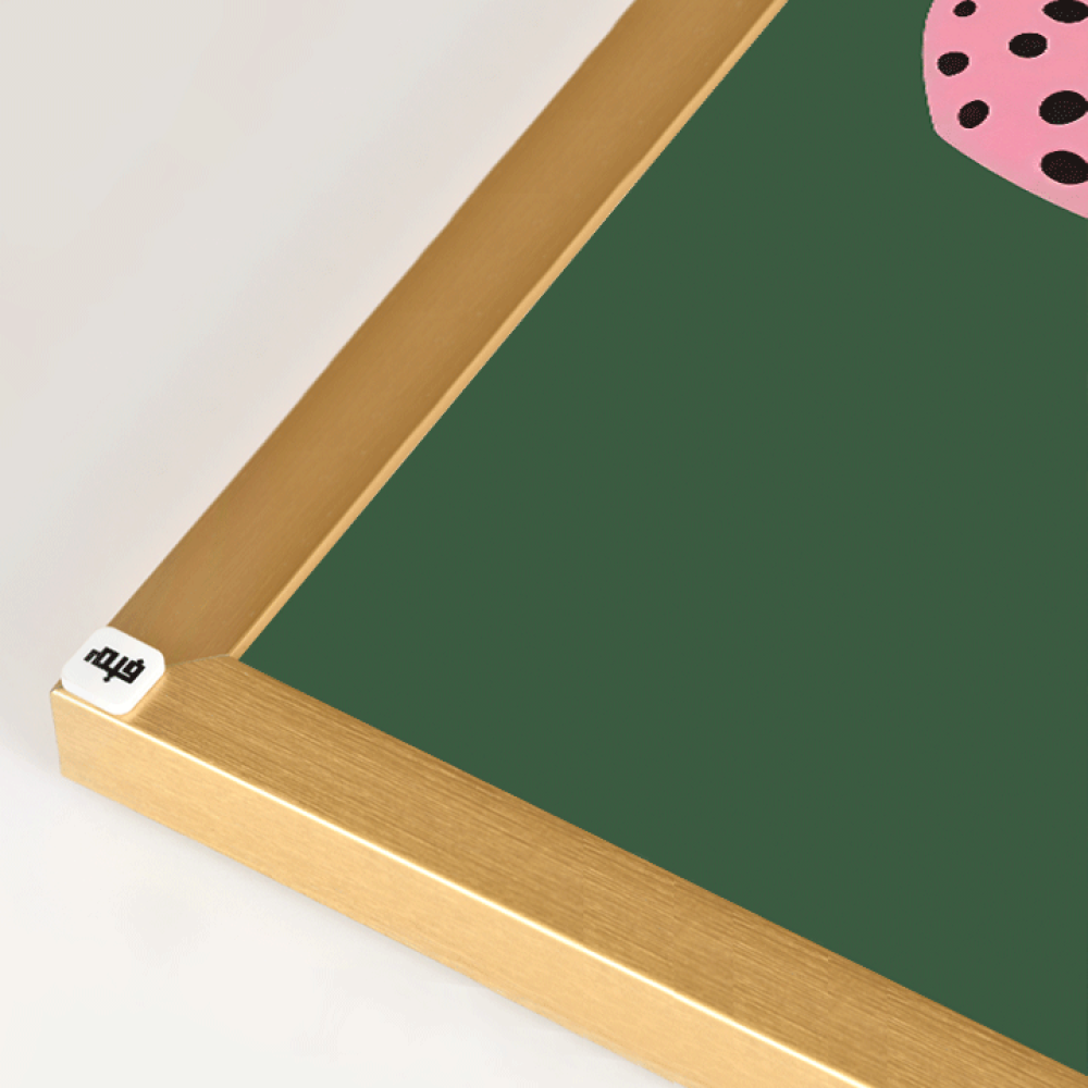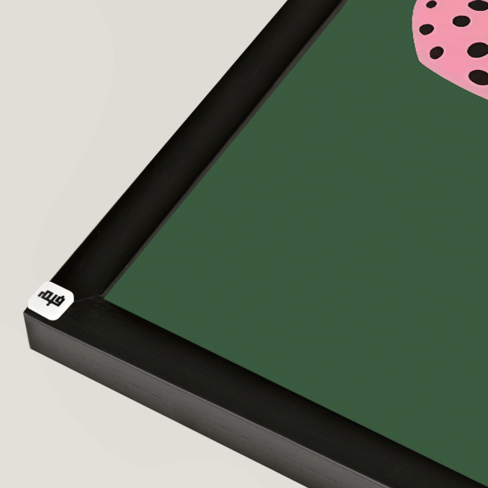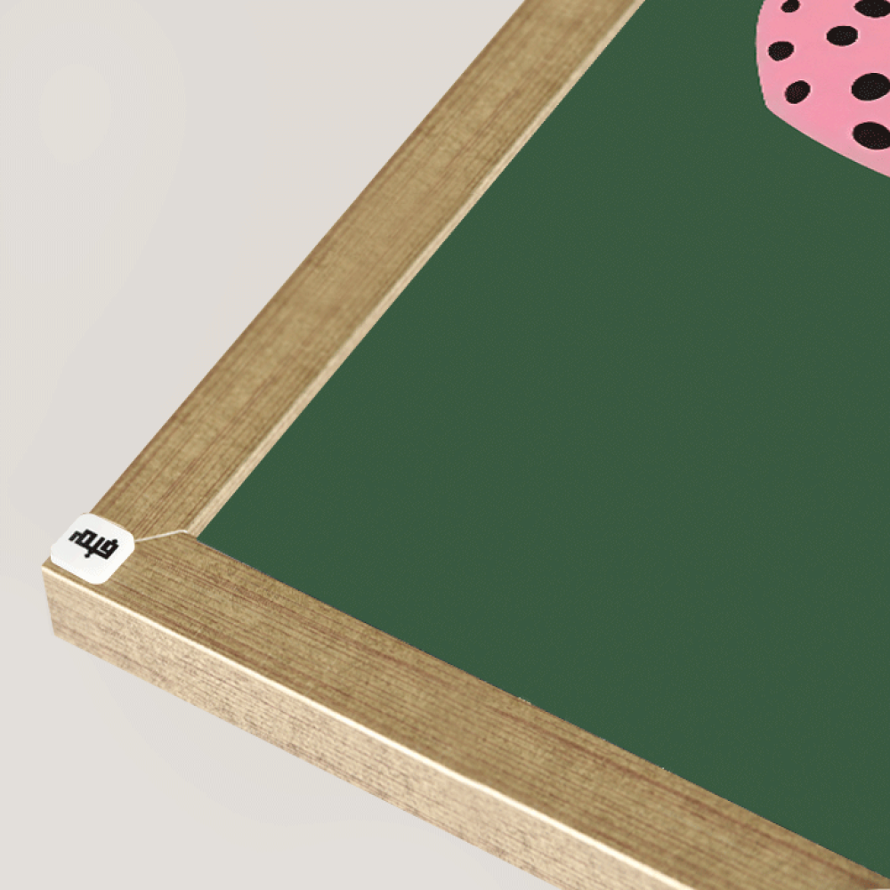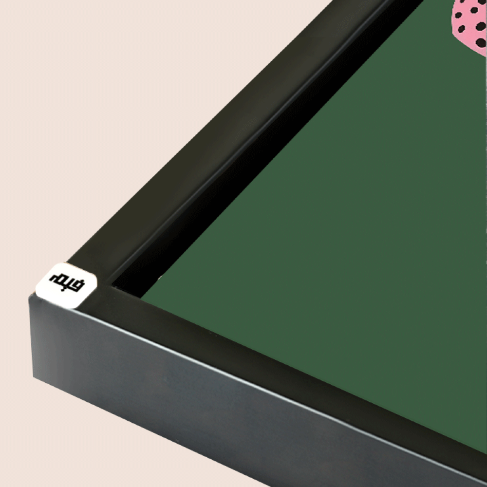 لوحة جدارية تصور فهداً مميزاً باللون الوردي، مما يمنحه طابعاً فريداً الخلفية باللون الأخضر تضيف تبايناً جريئاً ومشعاً، مما يجعل الفهد الوردي يبرز بشكل...