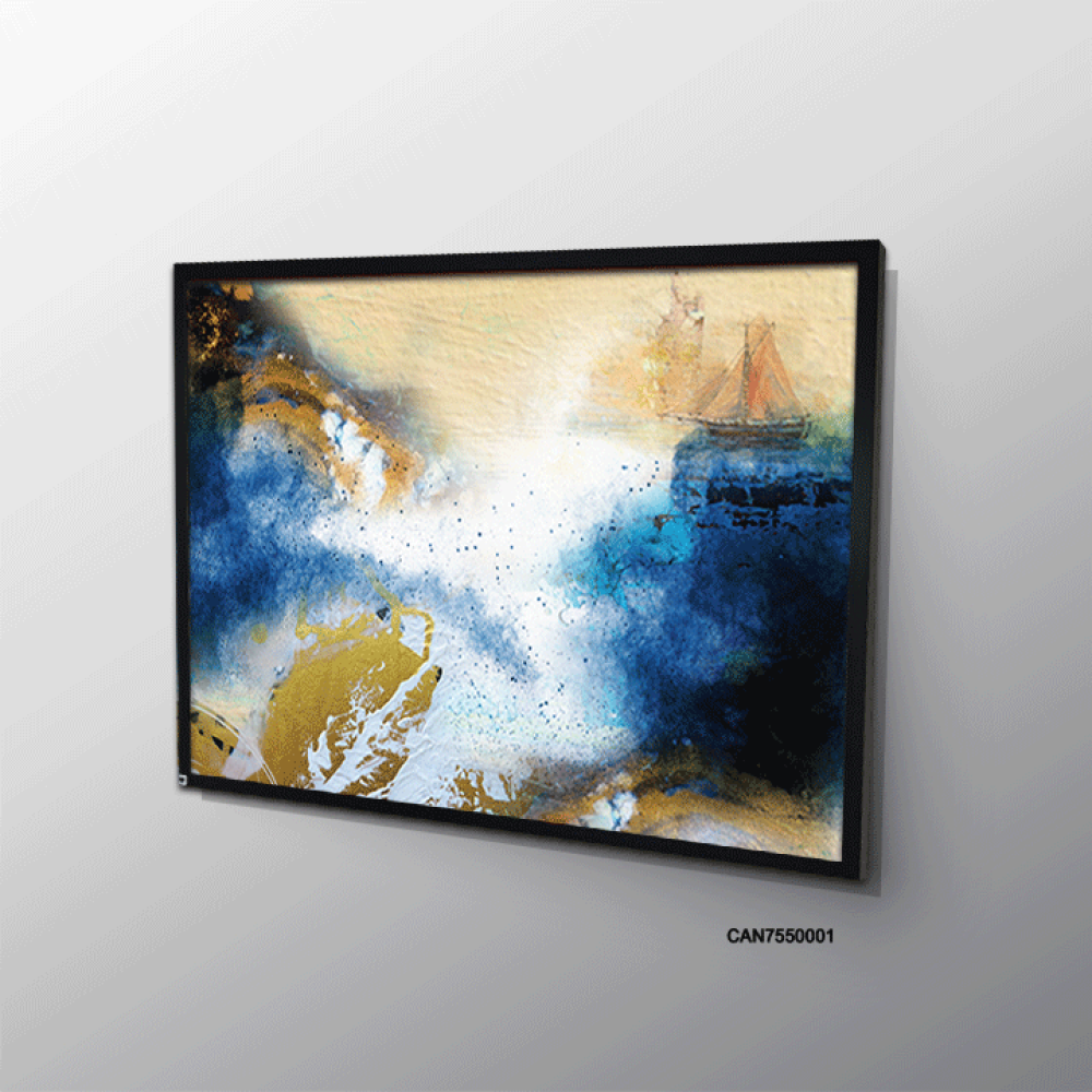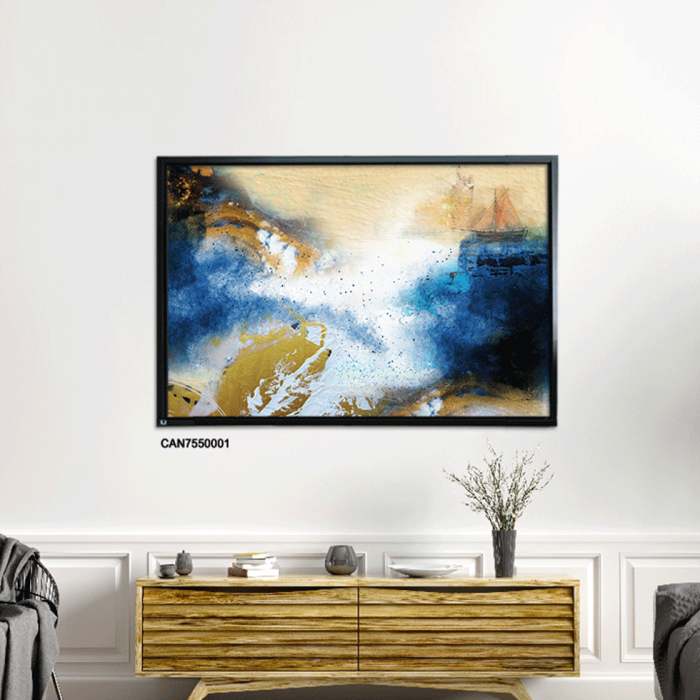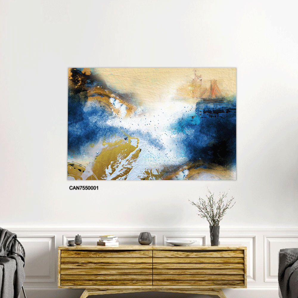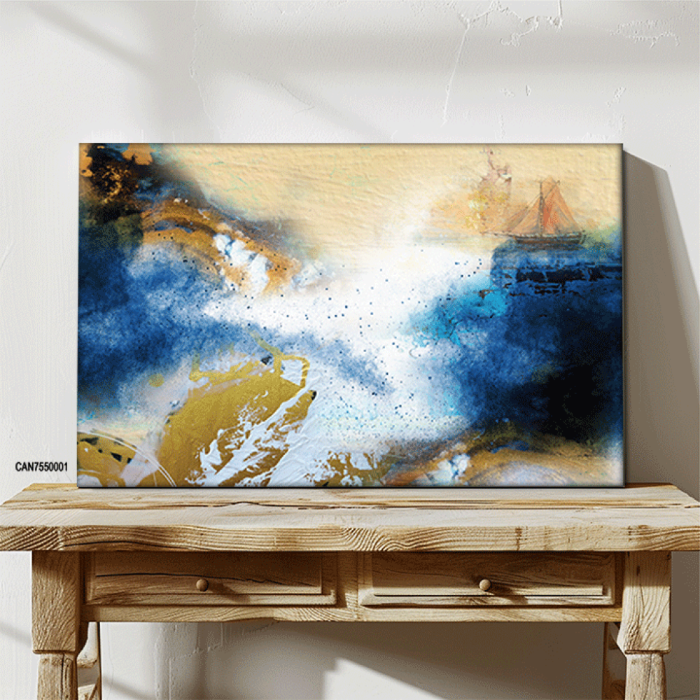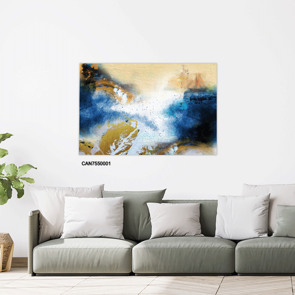 اضفي لمسة من الفن على ديكورك مع لوحة جدارية كانفس !تأتي هذه اللوحة بتصميم من تدرجات الأزرق والذهبي مع البيج والأبيض يتداخلوا معًا ليخلقوا مشهدًا مذهلا...