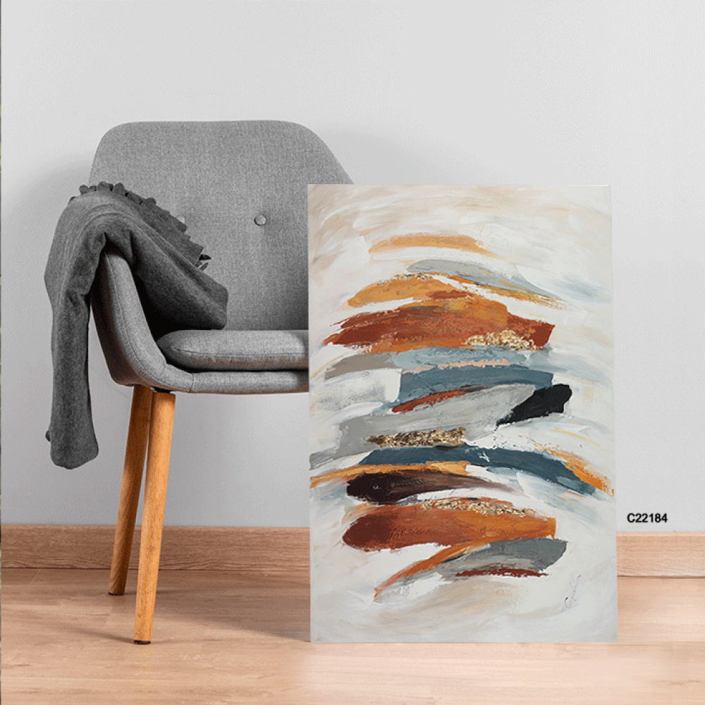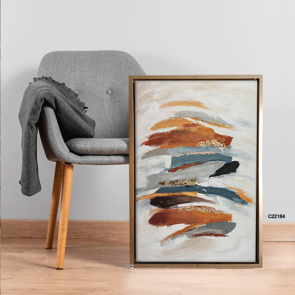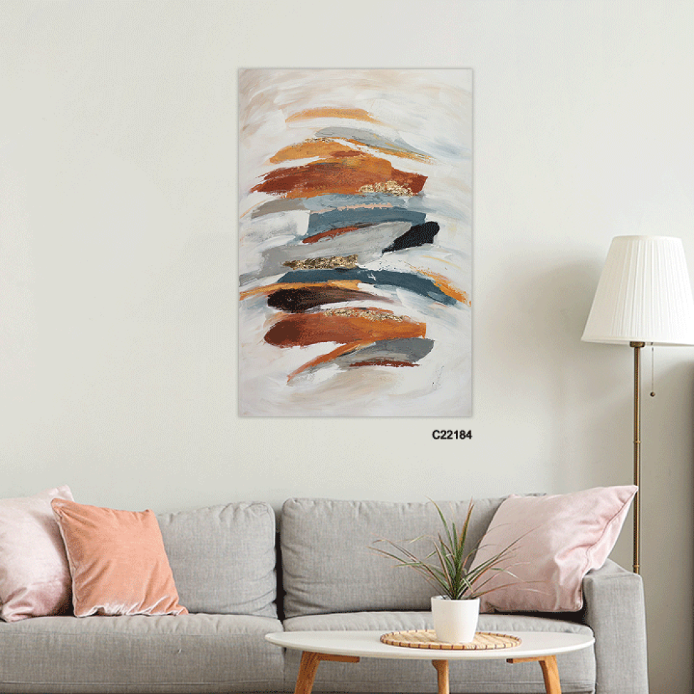 لوحة جدارية كانفس،تداخل ألوان-تدرجات البني والبرتقالي مع الازرق والبيج