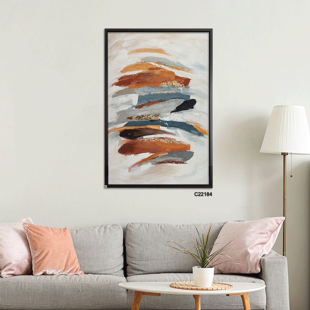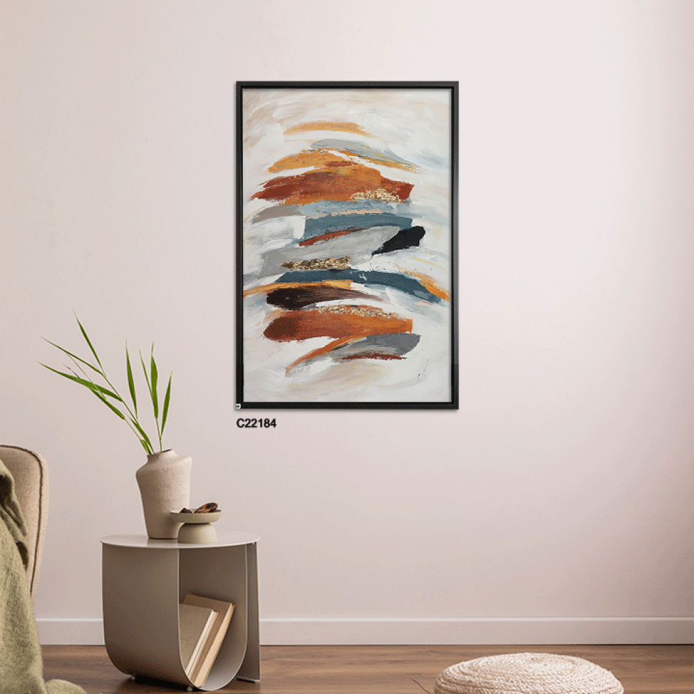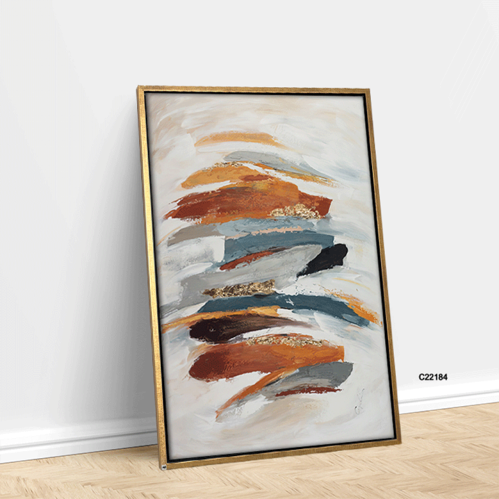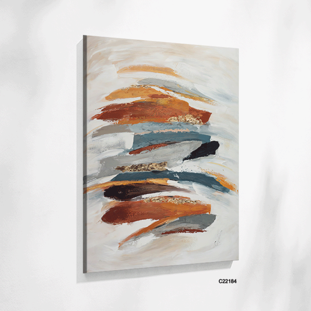 لوحة جدارية كانفس،تداخل ألوان-تدرجات البني والبرتقالي مع الازرق والبيج
