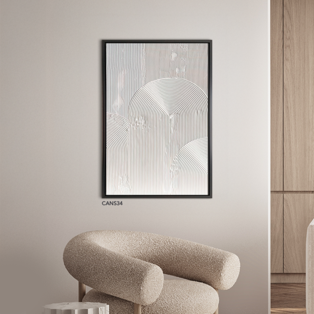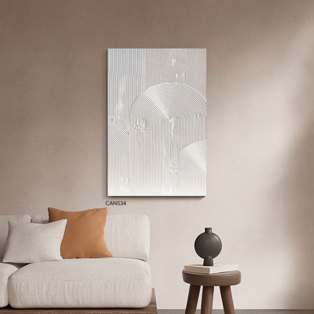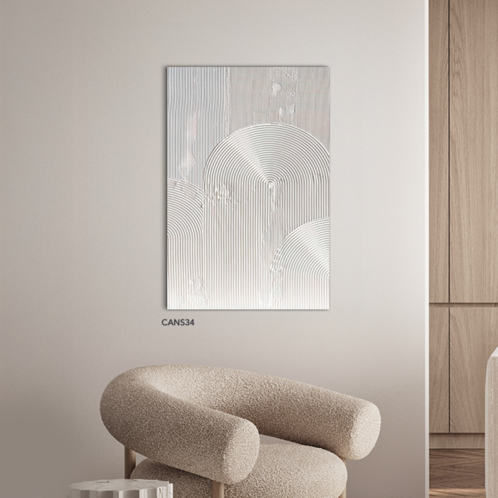 لوحة جدارية كانفس ، أشكال بطابع جبسي - اللون الأبيض