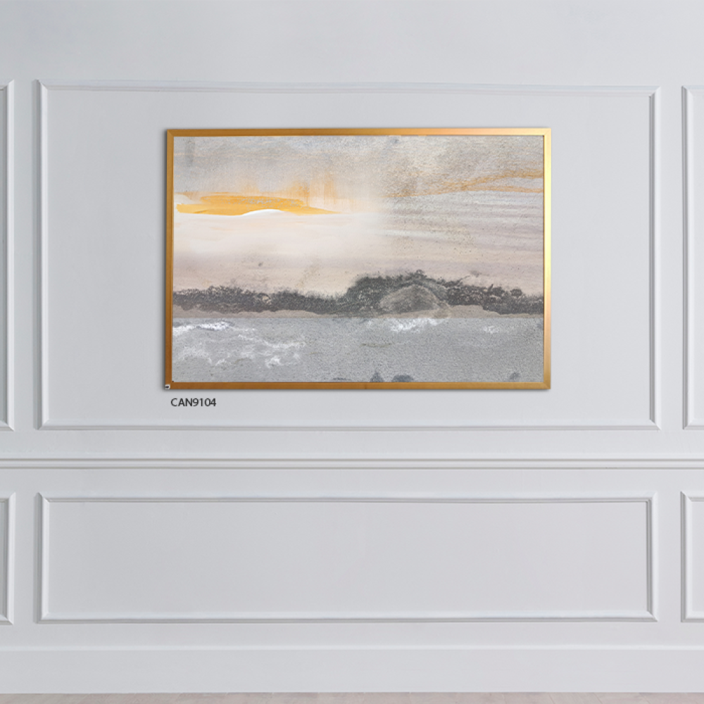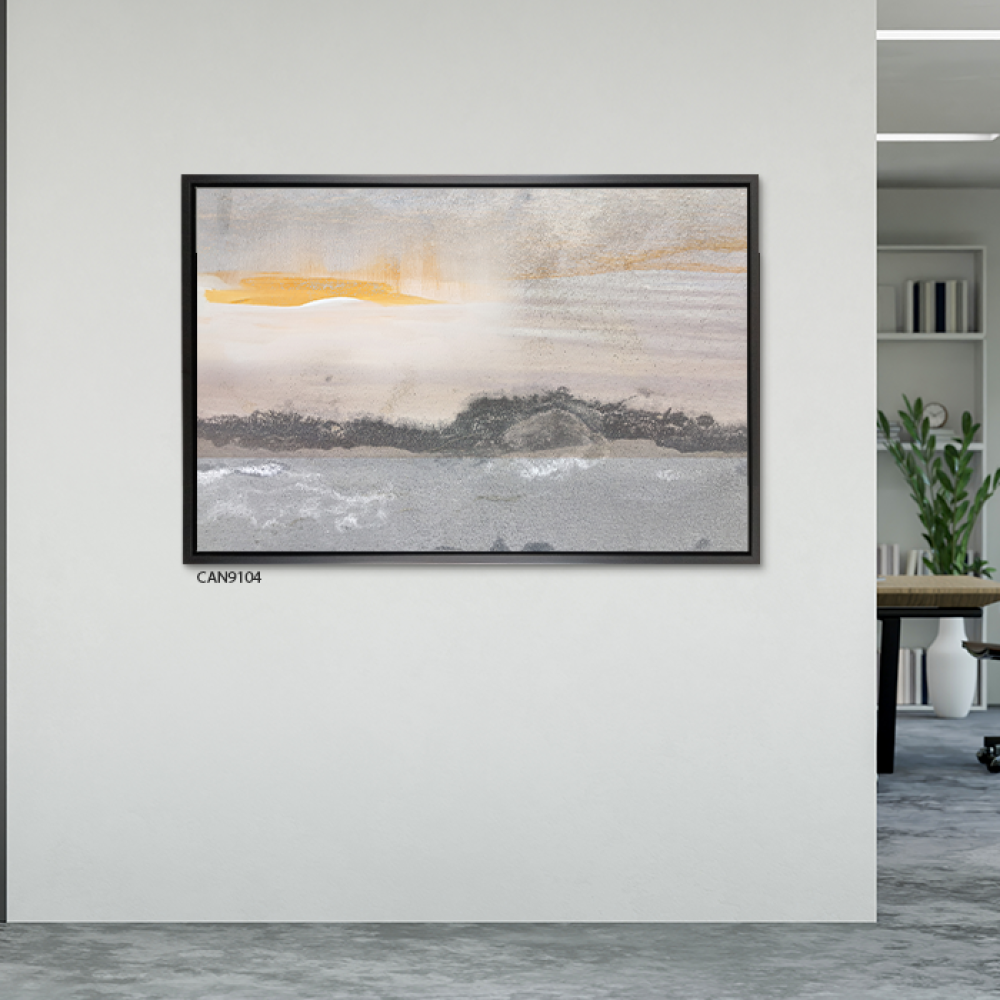 تأتي هذه اللوحة بتصميم من الفن التجريدي تتداخل فيه تدرجات الرمادي مع الأصفر والبيج لتخلق مشهدًا فريدة لجزيرة بعيدة مع سماء وبحر بما يضفي جوًا من الجمال والهدوء على أي مكان تٌضع فيه. ستكون إضافة مثالية إلى المجالس وغرف المعيشة وغرف النوم .