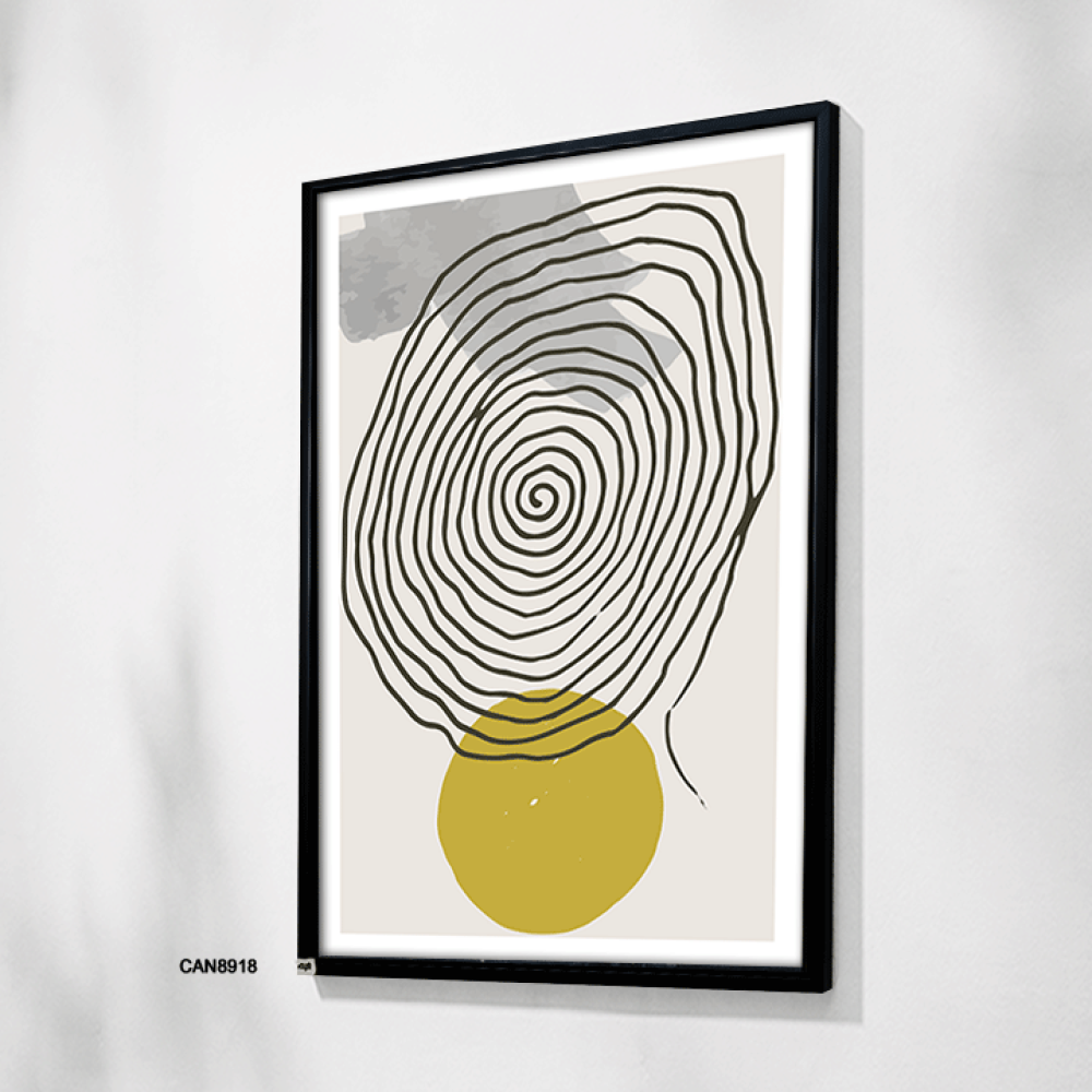 لوحة جدارية كانفس ، بصمة وخطوط ودائرة - اللون الأسود مع الأصفروالابيض