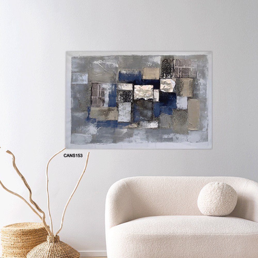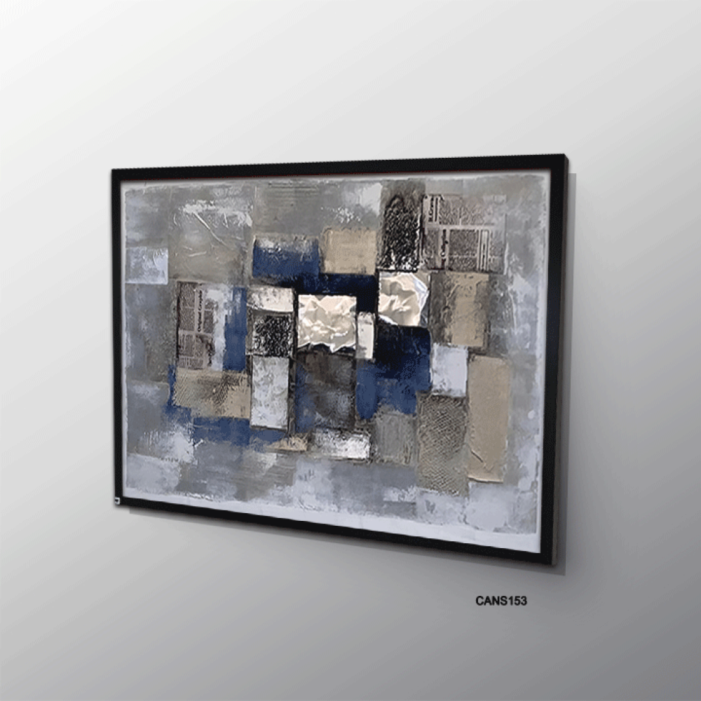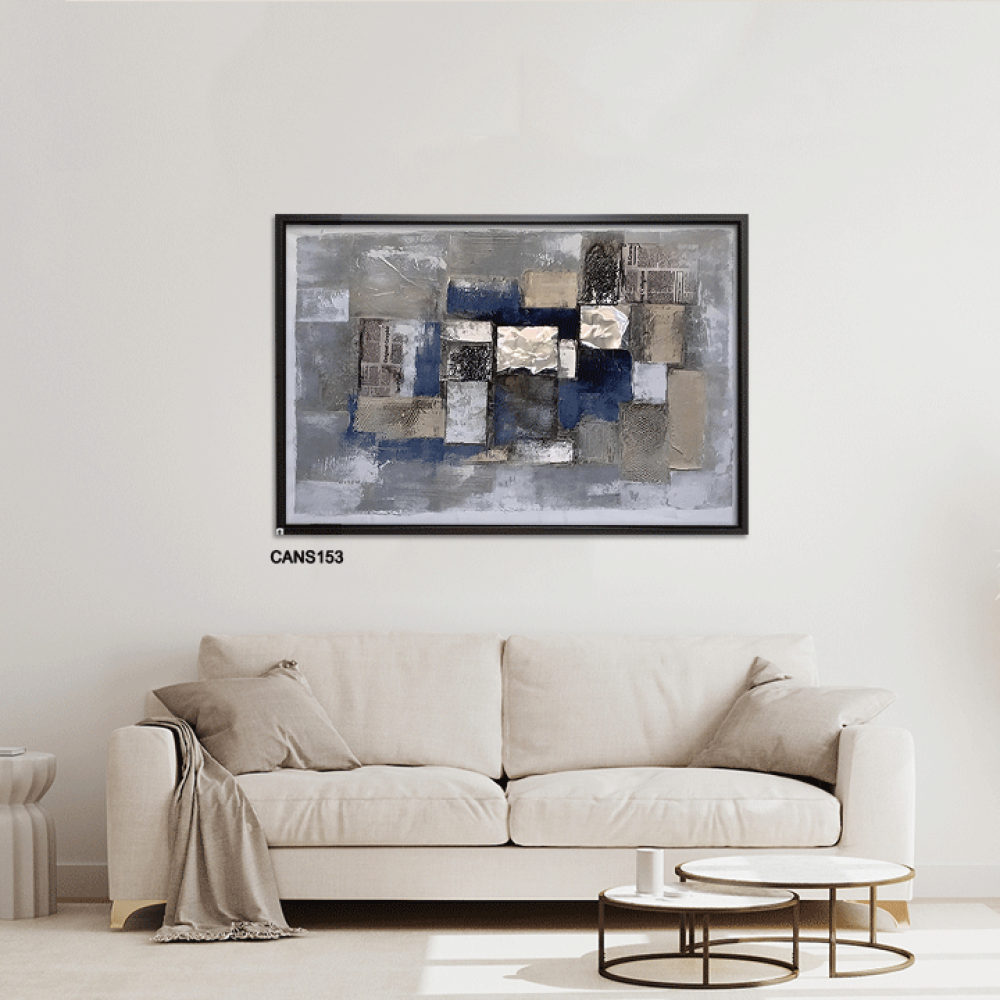 لوحة جدارية كانفس ، تداخل ألوان بطابع دخاني - تدرجات الكحلي والرمادي مع الأسود