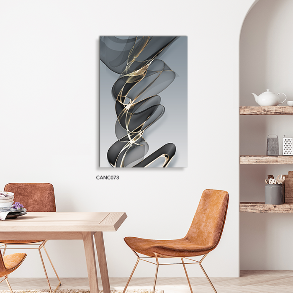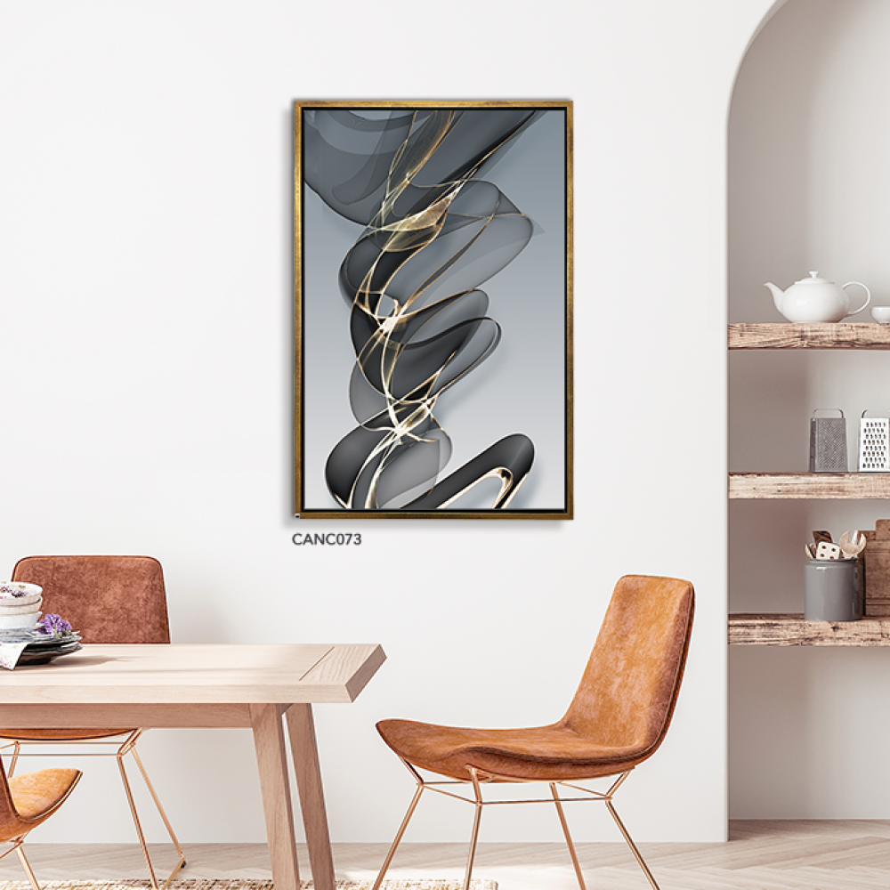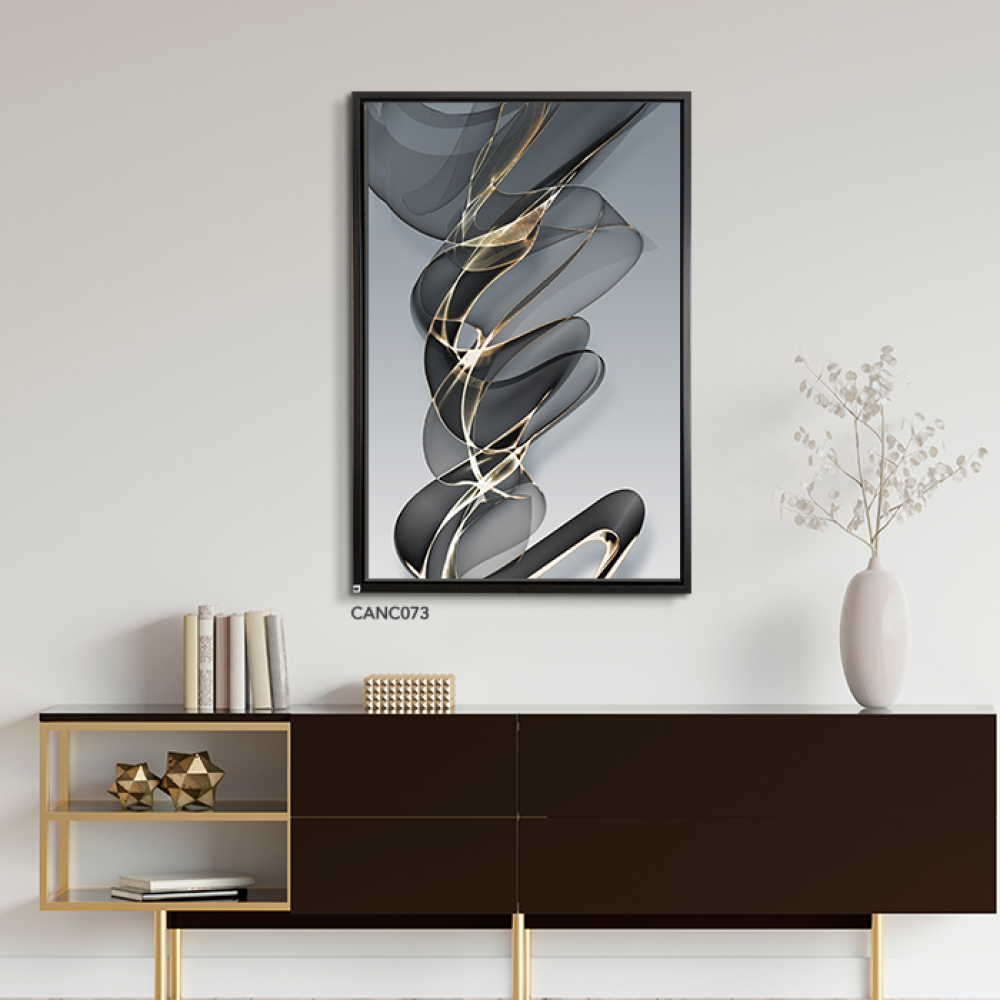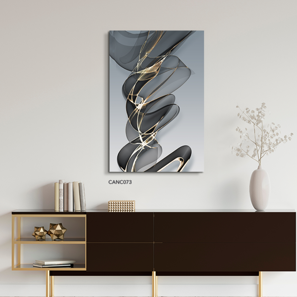 لوحة جدارية كانفس ، تموجات - تدرجات الأسود والذهبي مع الرمادي والأبيض