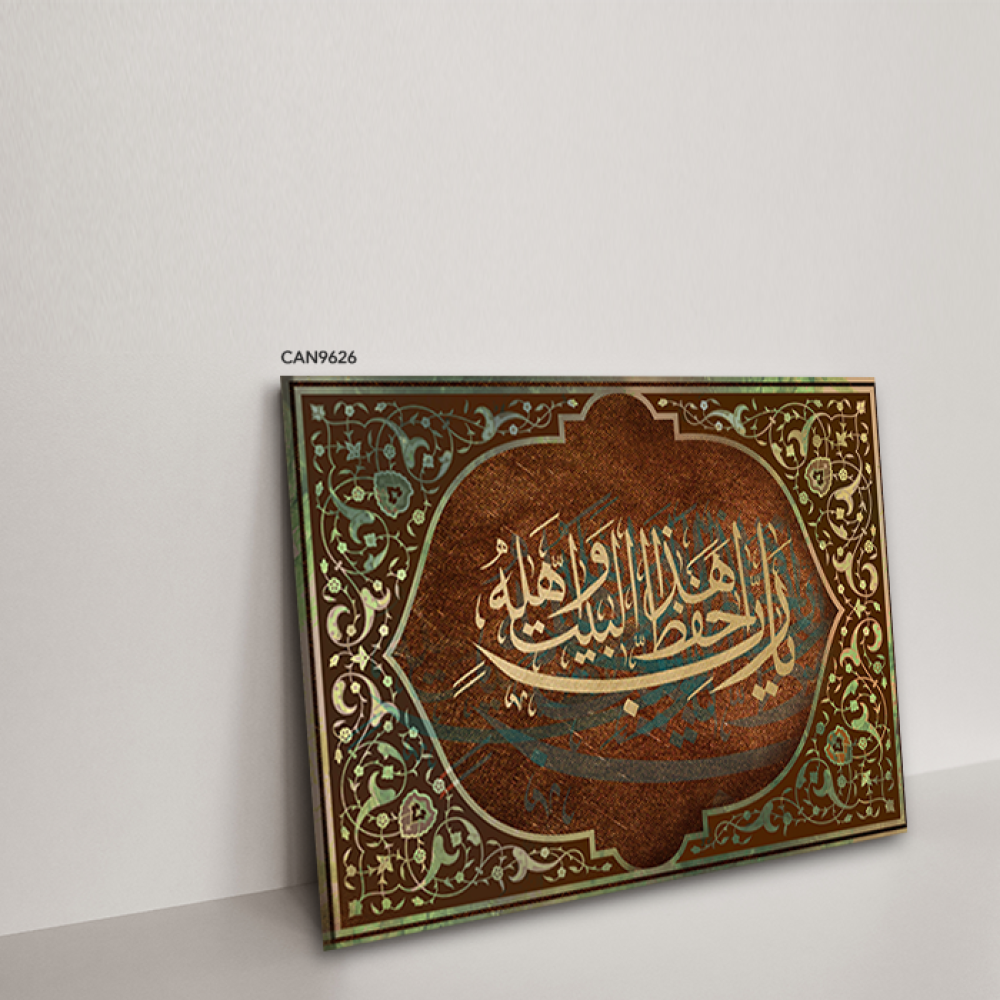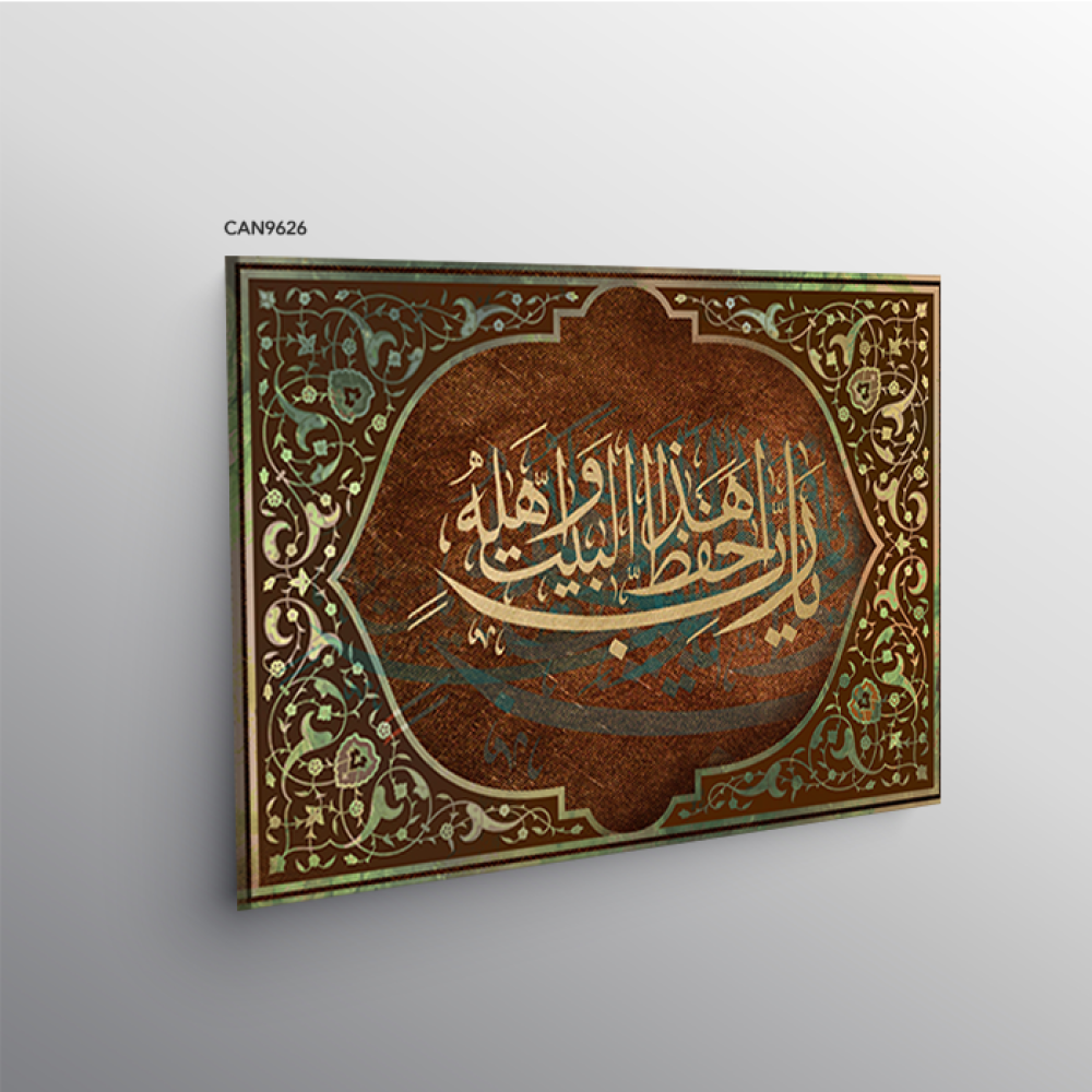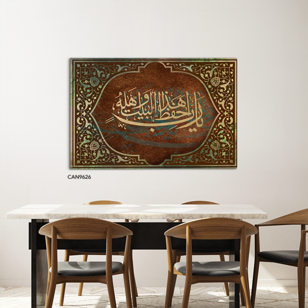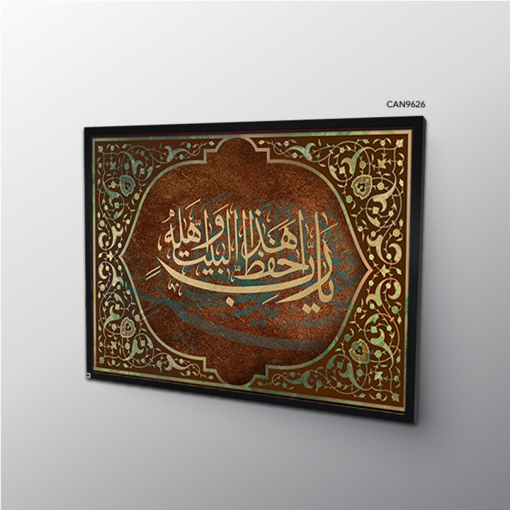 لوحة جدارية كانفس ، دعاء ( يارب احفظ هذا البيت وأهله ) - درجات الذهبي والبني مع البيج