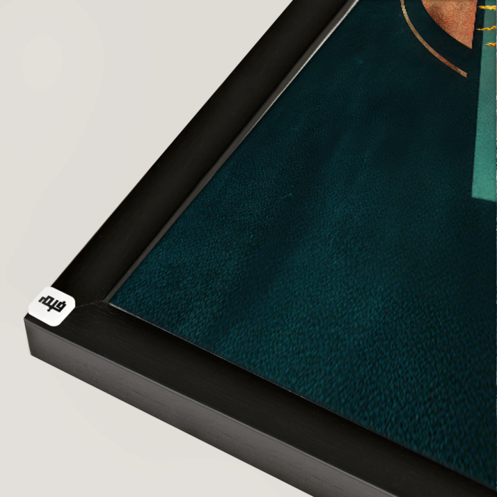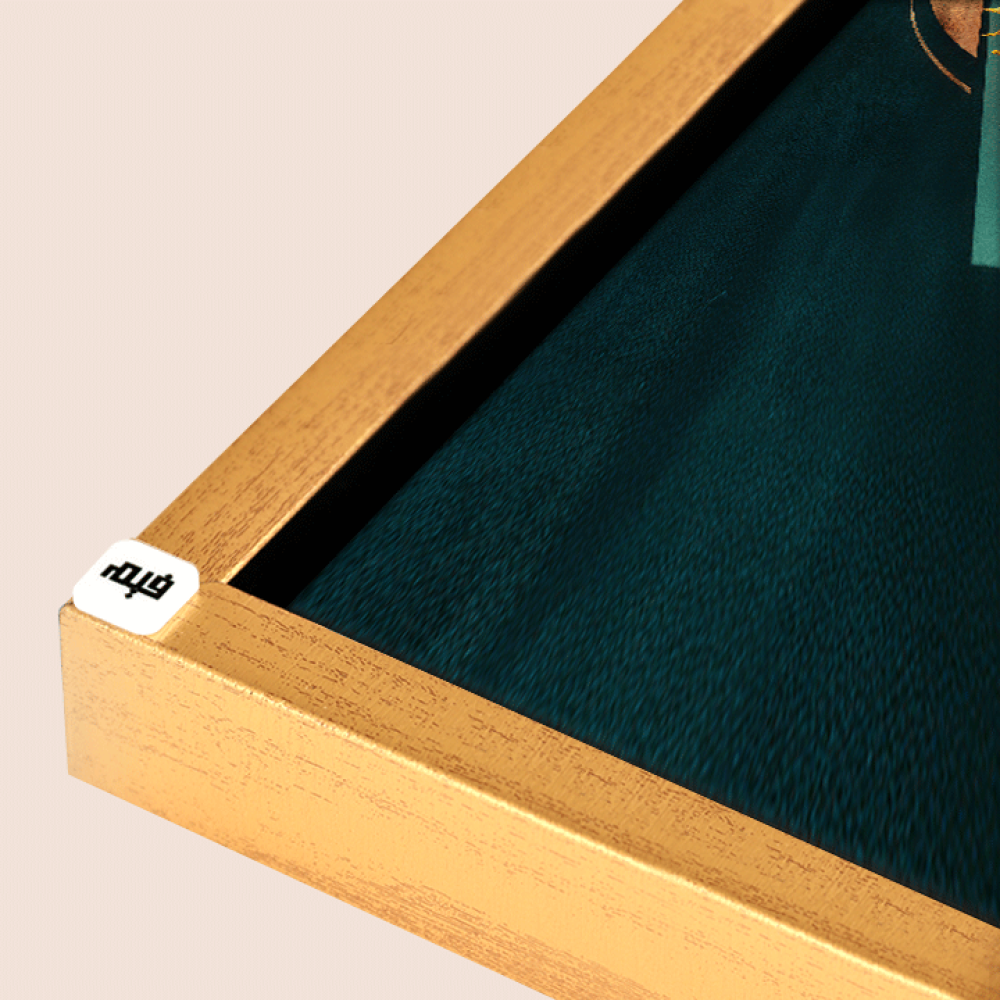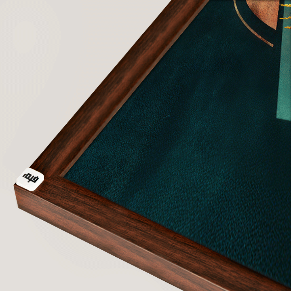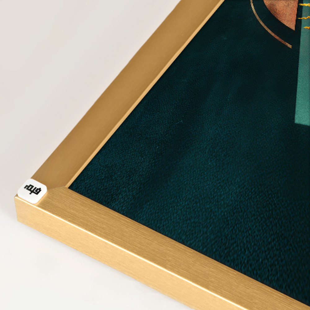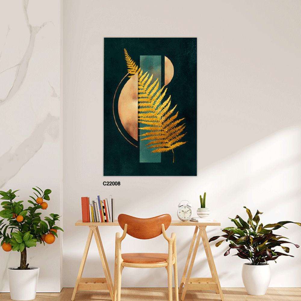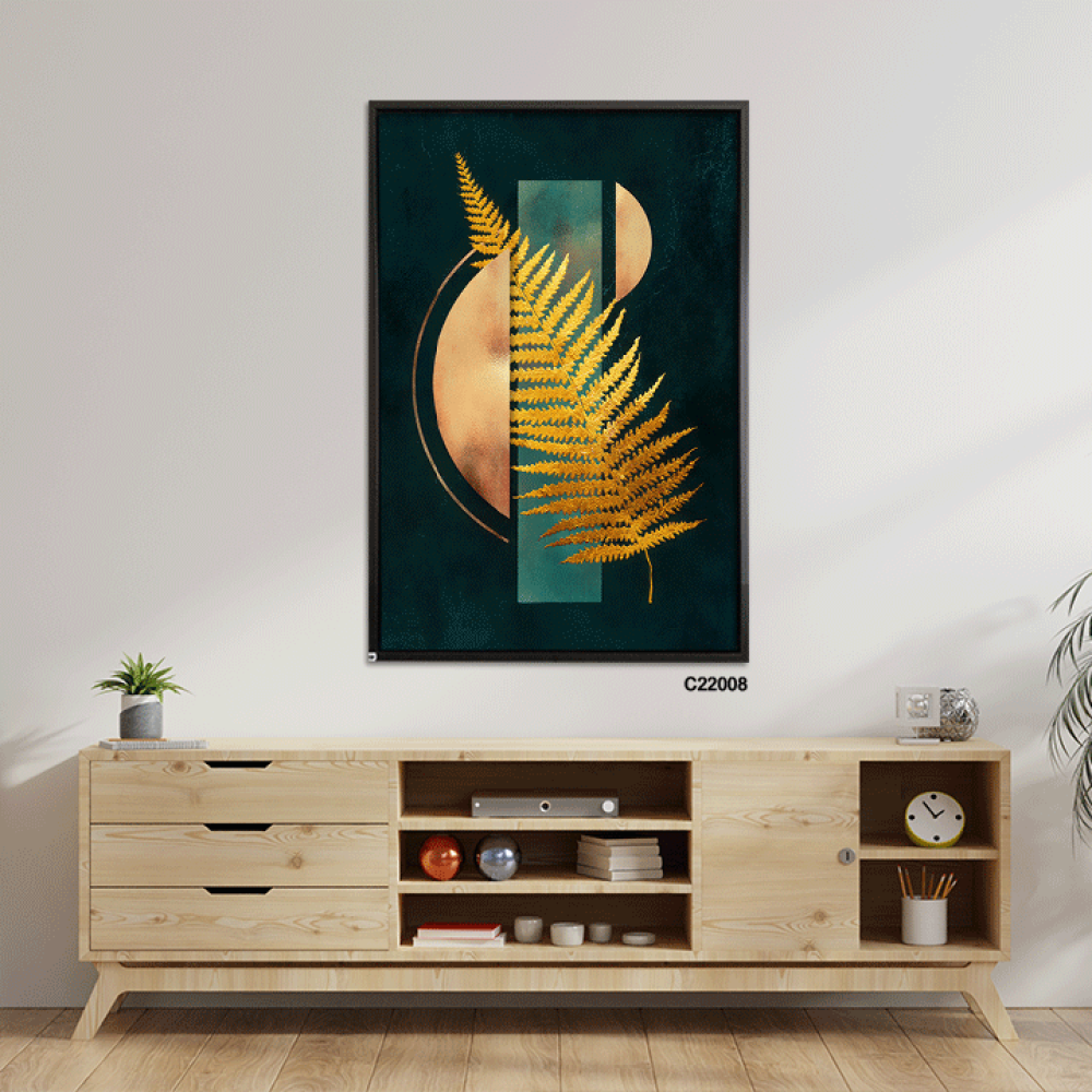 لوحة جدارية كانفس ، ريش وأشكال - تدرجات الذهبي والأخضر مع الأسود والبيج