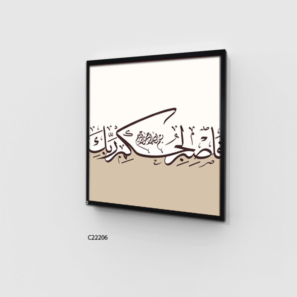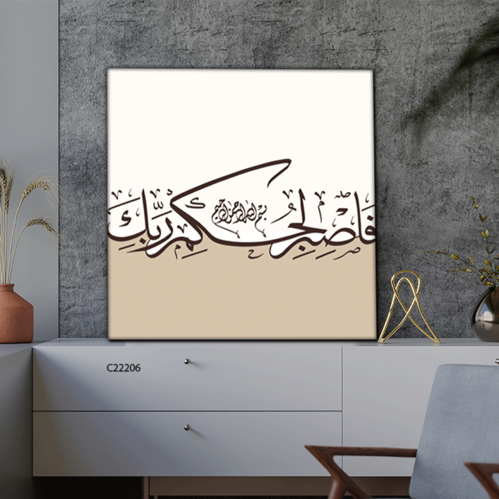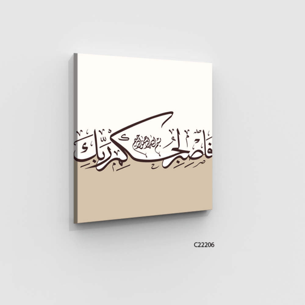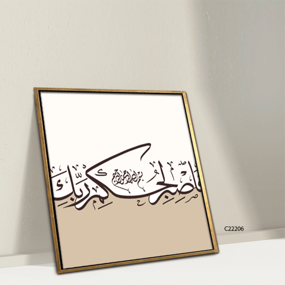 لوحة جدارية كانفس ، فاصبر لحكم ربك - درجات البني مع البيج