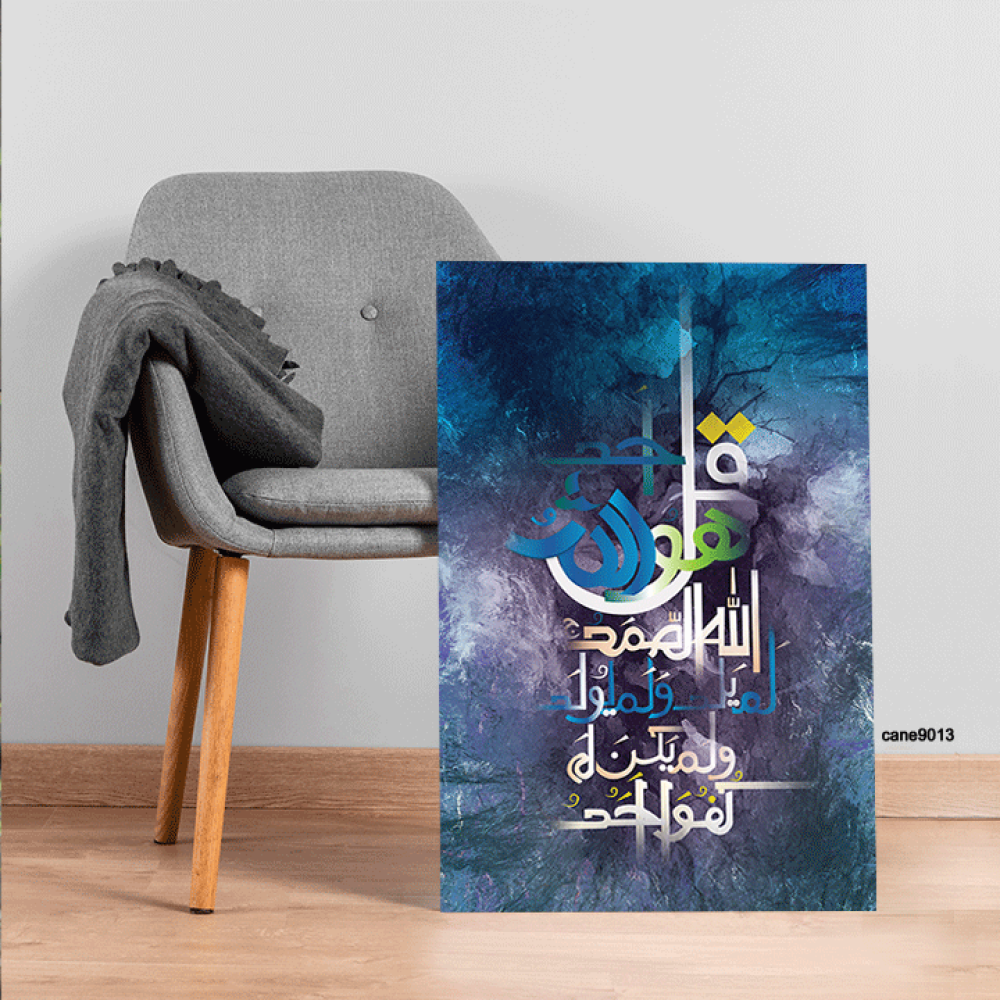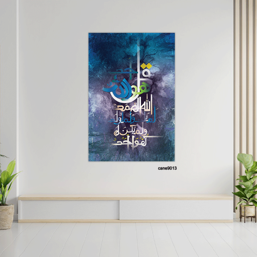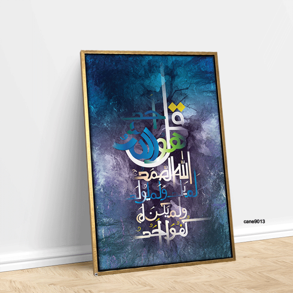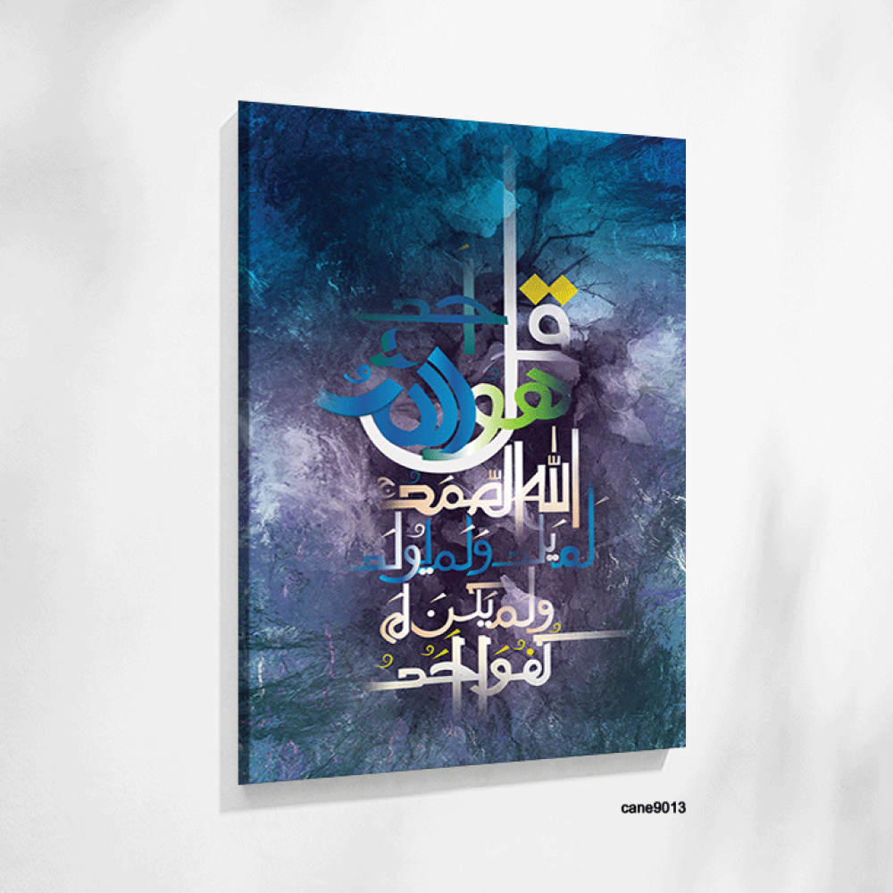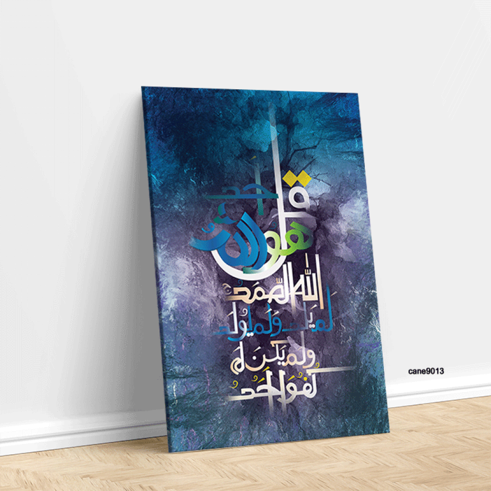 لوحة جدارية كانفس آية (سورة الأخلاص ) درجات أزرق وبنفسجي وأبيض