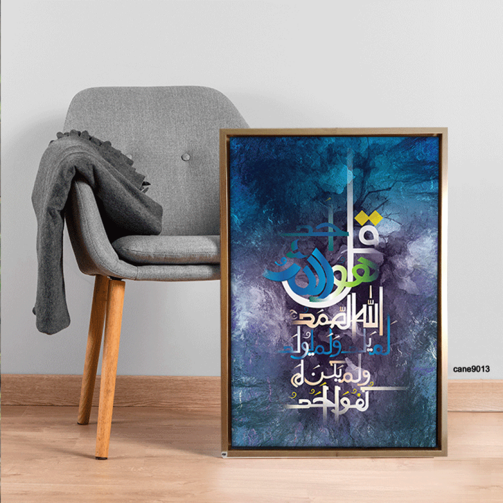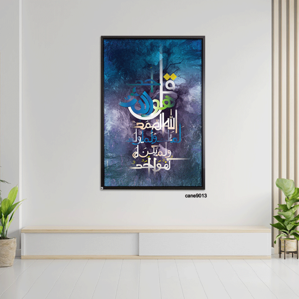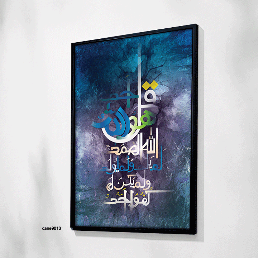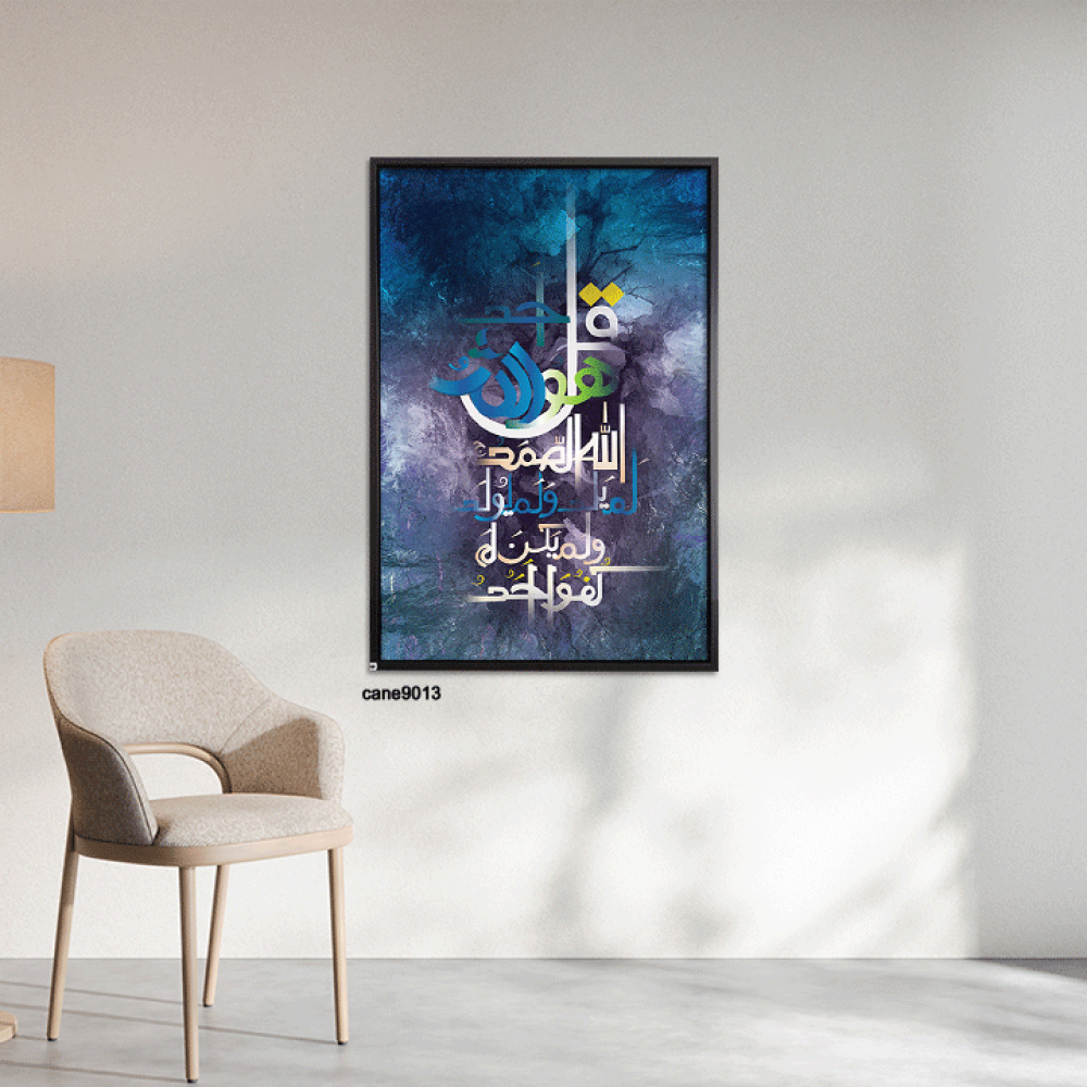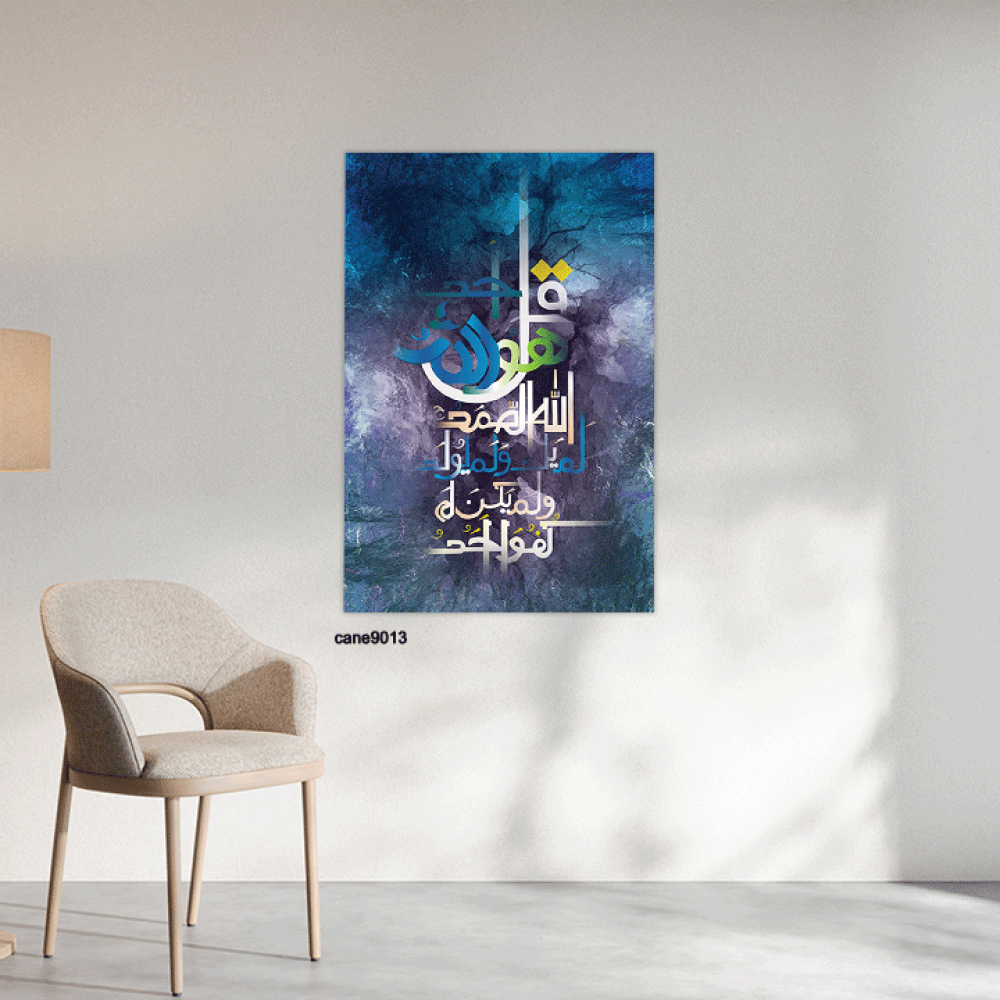لوحة جدارية كانفس آية (سورة الأخلاص ) درجات أزرق وبنفسجي وأبيض