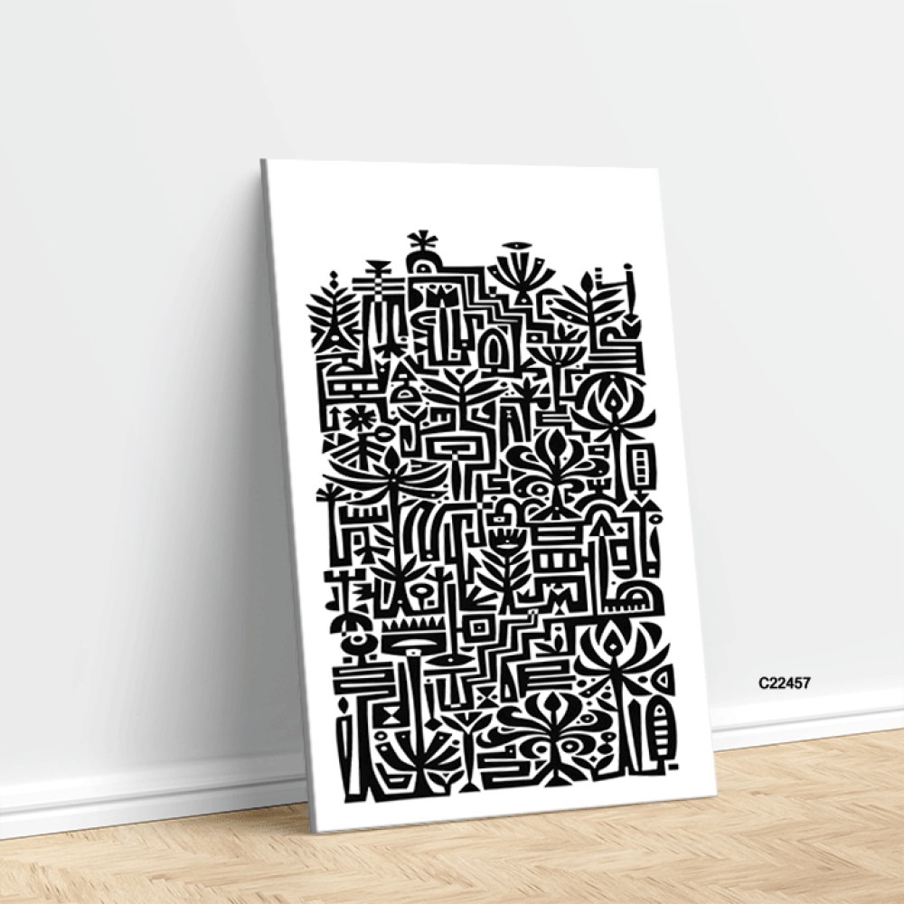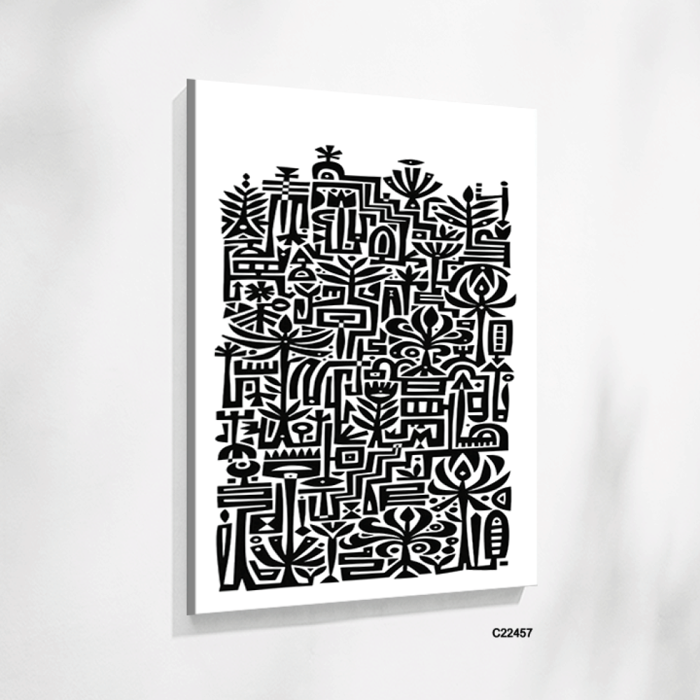لوحة جدارية كانفس تتضمن زخارفًا واشكال بتدرجات اللونين الأبيض والأسود. تتميز اللوحة بأسلوبها العصري ، مما يضفي عليها مظهرًا أنيقًا وجذابًا. تعكس هذه ا...