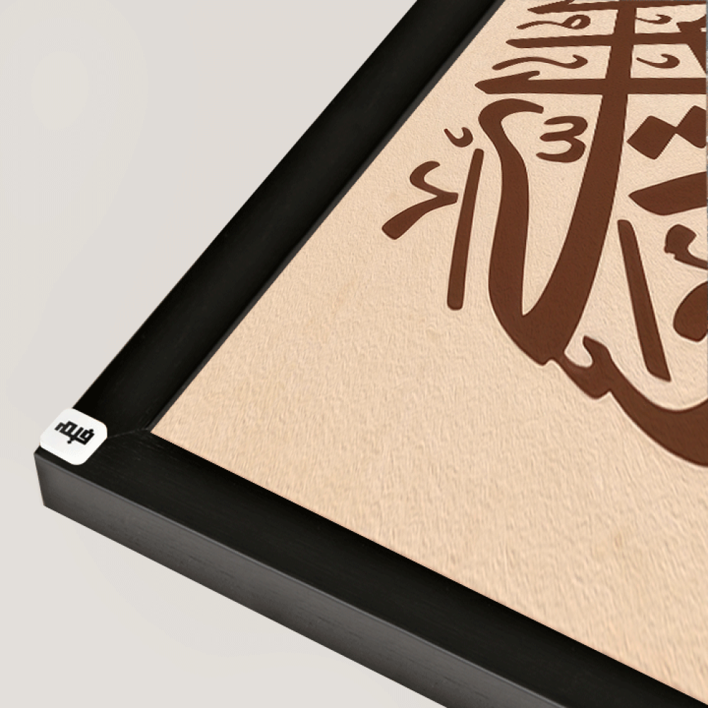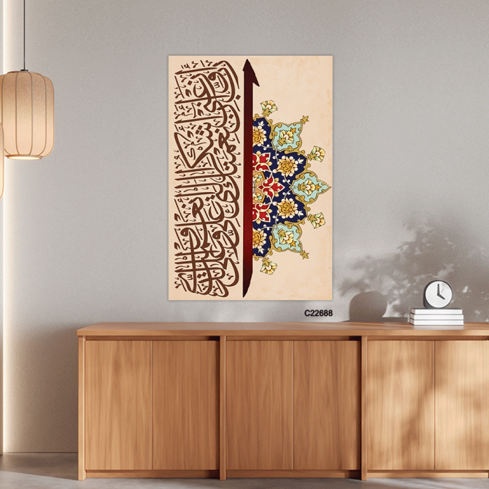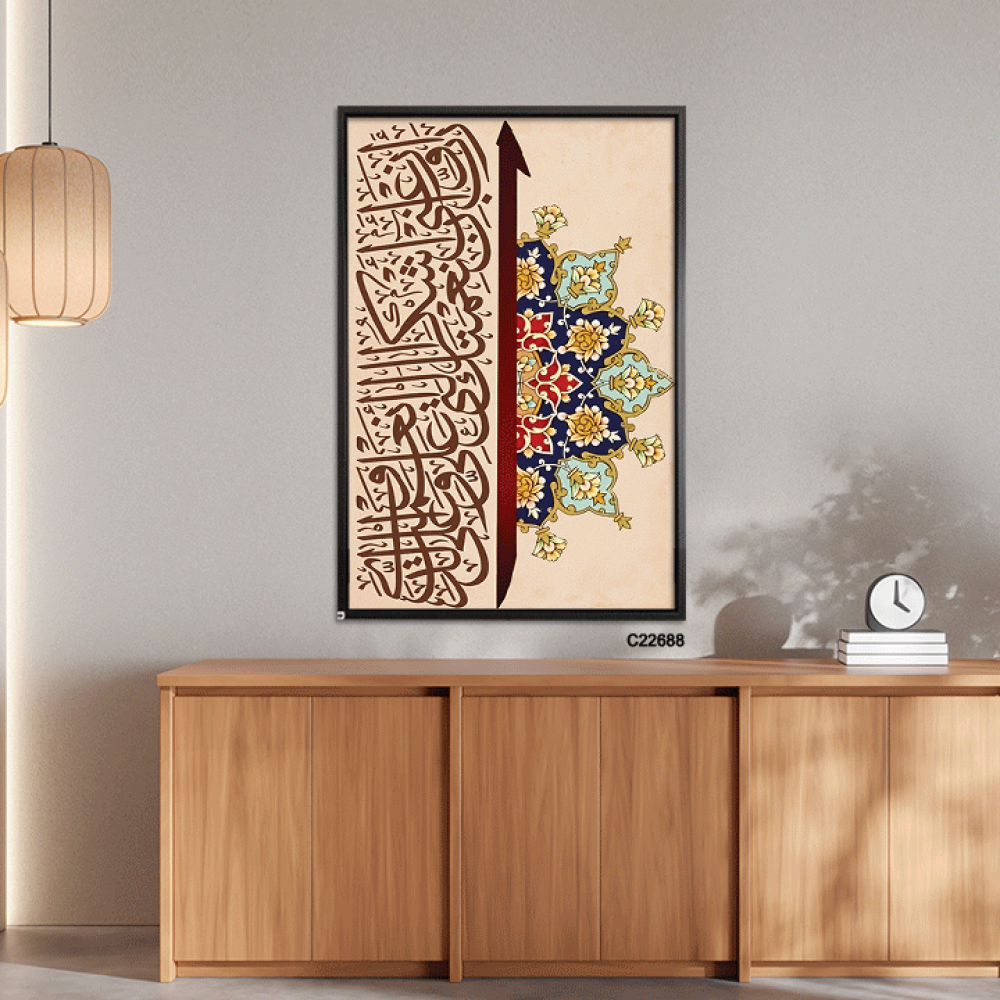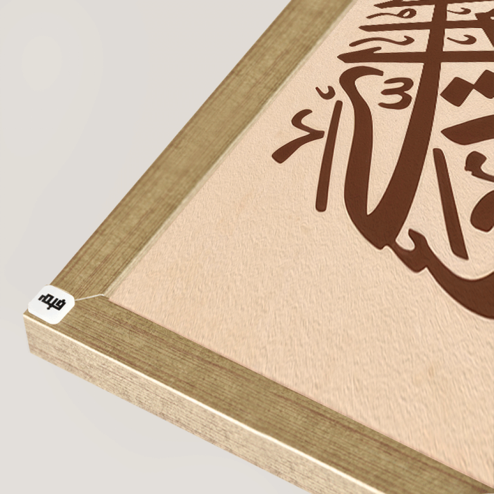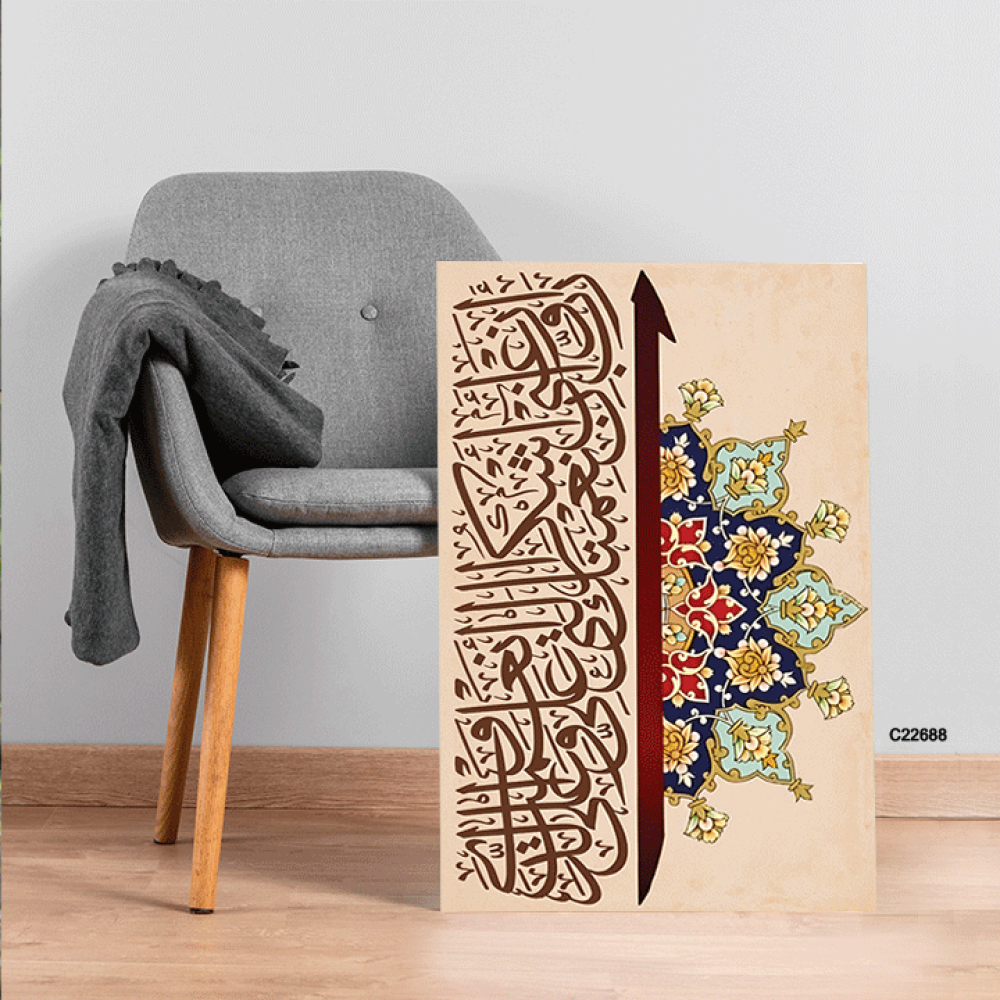 لوحة جدارية كانفس اية قرآنية (ربي اوزعني ان اشكر نعمتك التي انعمت على والدي ) وزخارف اسلامية بتدرجات البني و الازرق