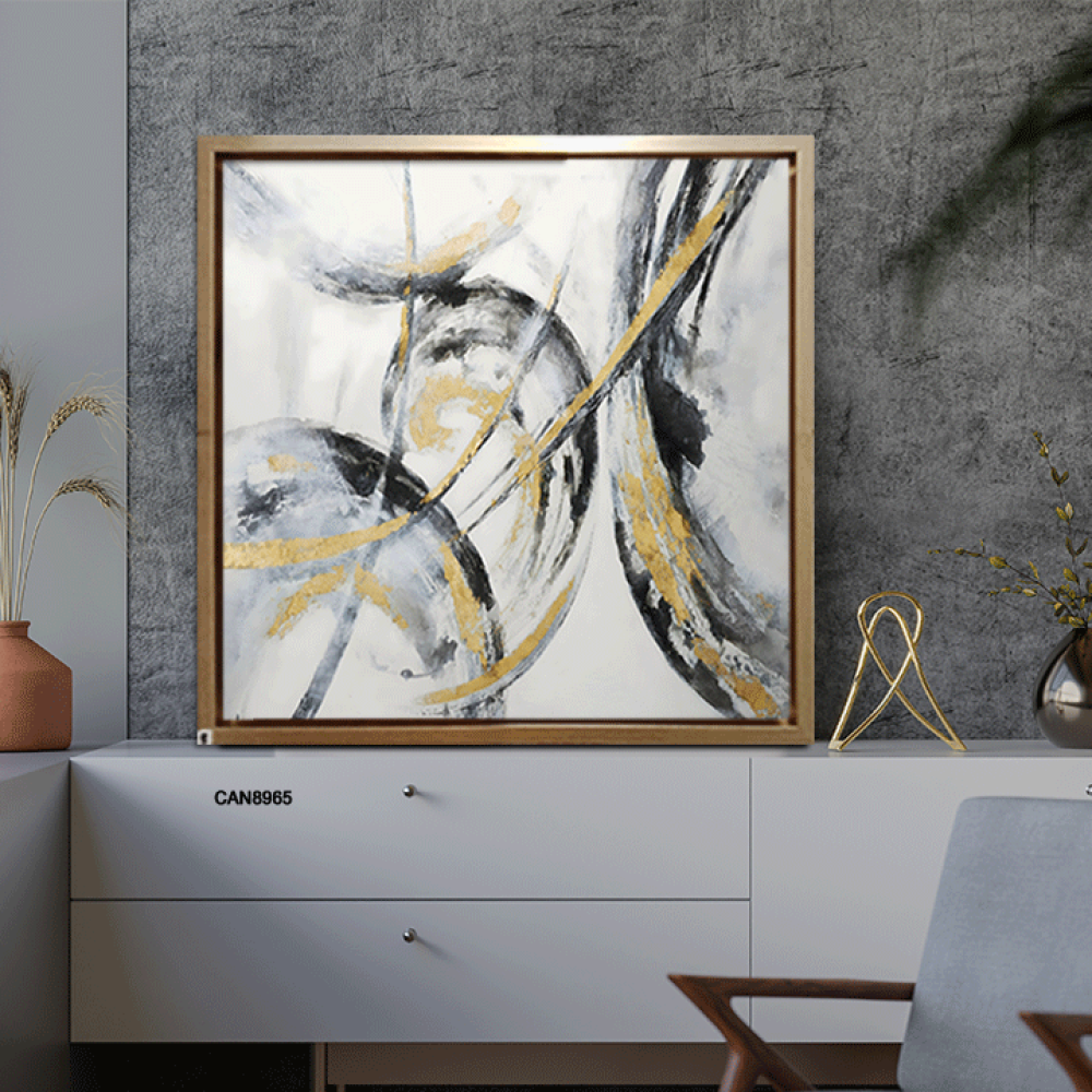 أضف لمسة من الفخامة لديكورك مع لوحة جدارية كانفس !تأتي هذه اللوحة بتصميم من الفن التجريدي تتداخل فيه ضربات فرشاة متعرجة بتدرجات الأسود والذهبي على خلفية من الأبيض بما يضفي جوًا من الفخامة على أي مكان تٌضع فيه. ستكون إضافة مثالية إلى المجالس وغرف المعيشة والمكاتب.اضفي لمسة تلفت الأنظار مع هذه اللوحة- مثبتة على اطار خشبي داخلي تختلف السماكات من 18 ملم الى 25 ملمحسب نوع الاطار المختار مع المنتج .- لوحات جدارية مطبوعة على أجود الخامات قابلة للمسح.- كود المنتج : CAN8965- سهلة التركيب لوجود حامل خلفي .- جاهزة للتركيب (يوجد مسامير مرفقة مع الطلب) .- المقاس : الطول 100 سم ، العرض 100 سم .- الاطار الظاهر بالصورة افتراضي يمكن اختيار نوع وشكل الاطار او بدون الاطار.تسوق ايضالوحة جدارية فنية كانفس تصور أشكال عشوائيةلوحه جداريه كبيره كانفس فن تجريدى