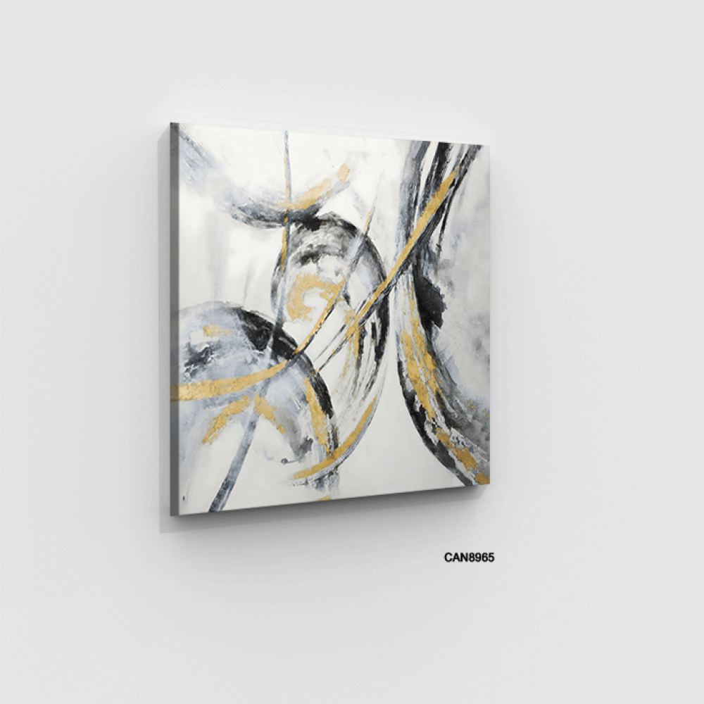أضف لمسة من الفخامة لديكورك مع لوحة جدارية كانفس !تأتي هذه اللوحة بتصميم من الفن التجريدي تتداخل فيه ضربات فرشاة متعرجة بتدرجات الأسود والذهبي على خلف...