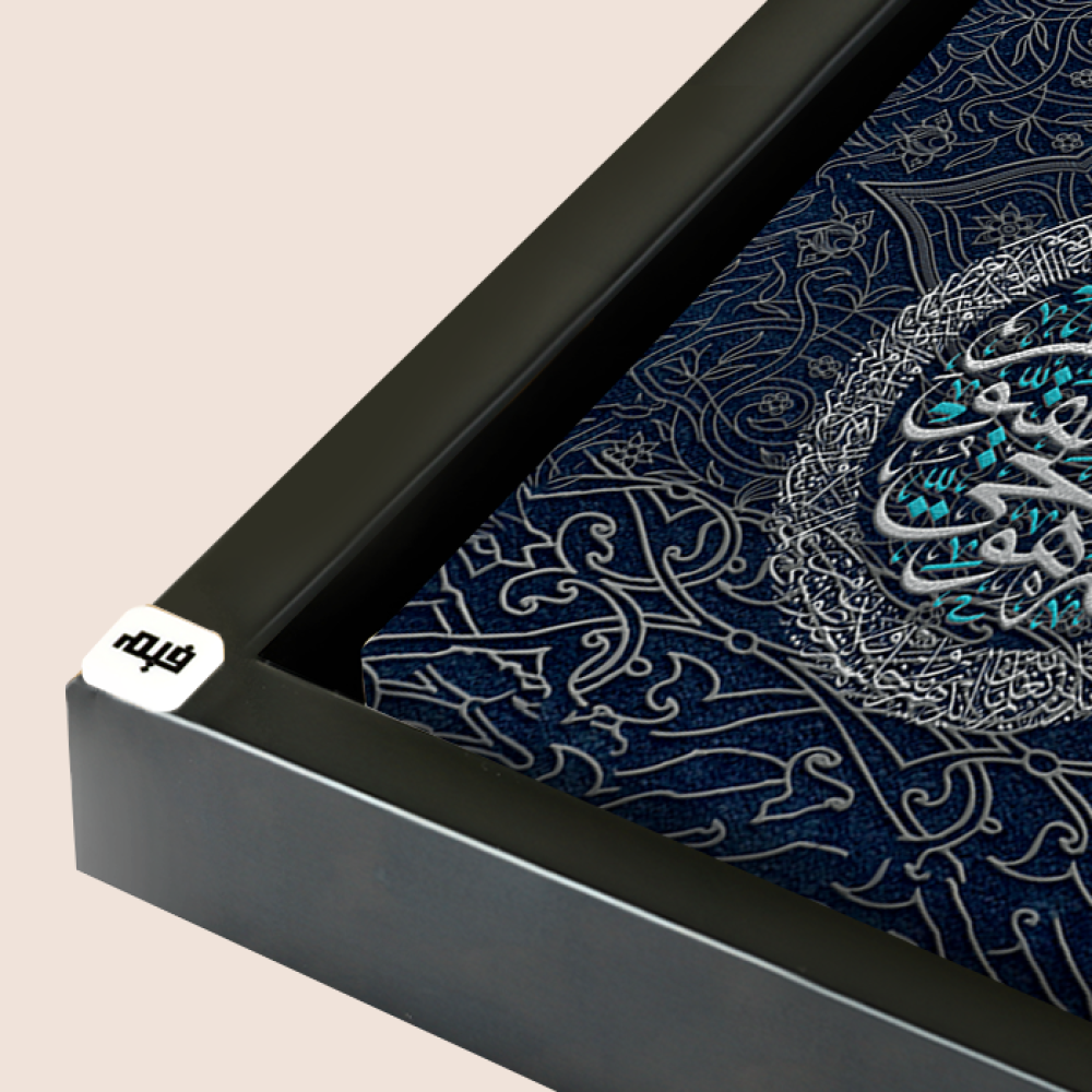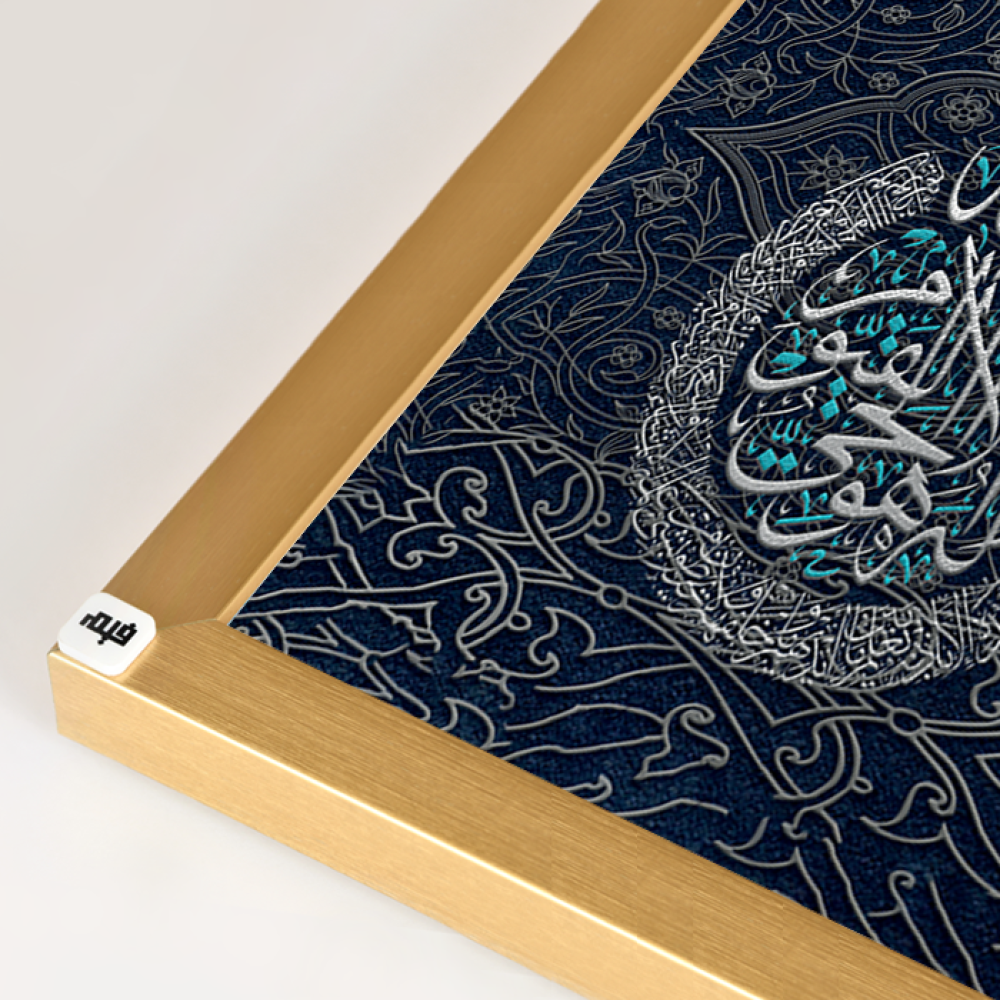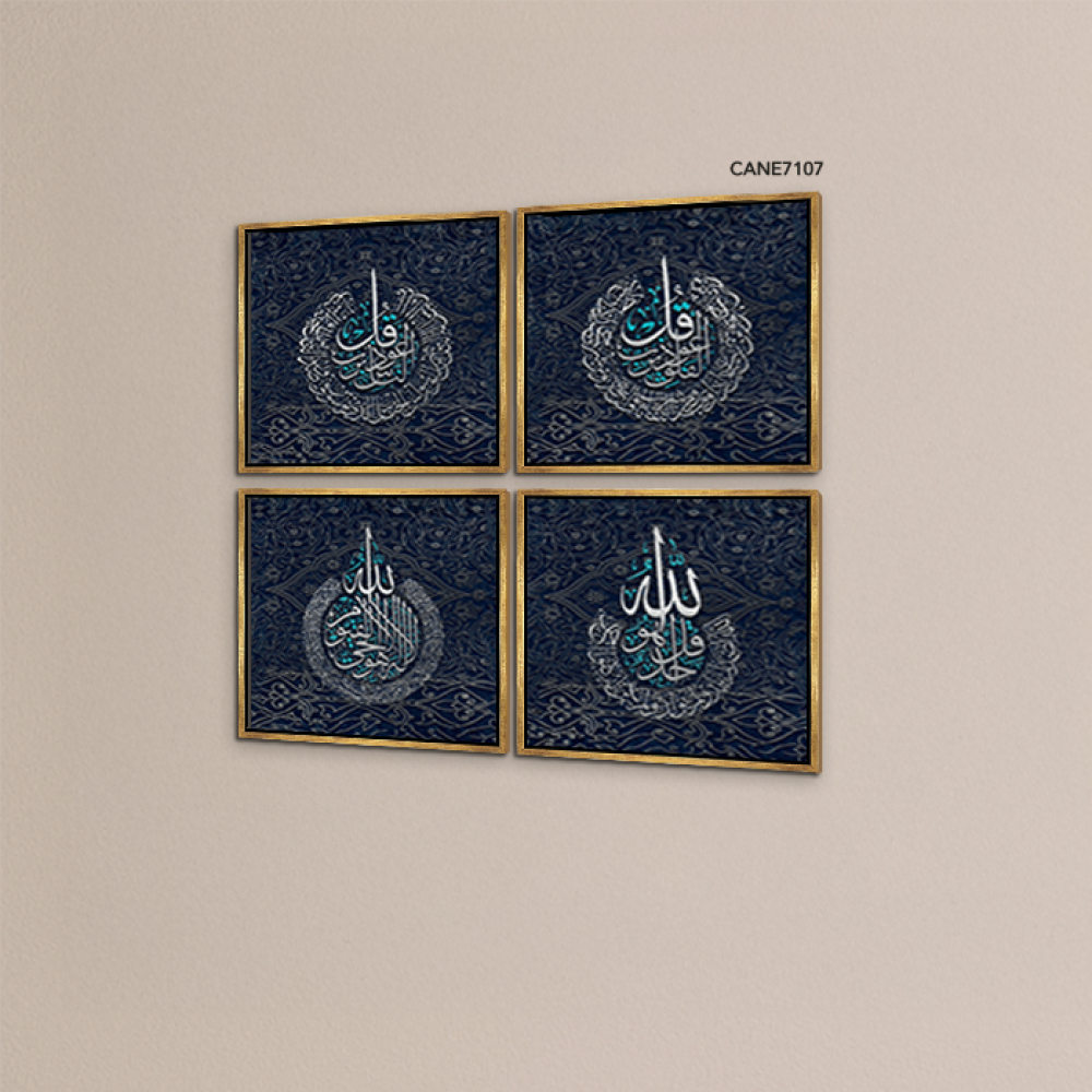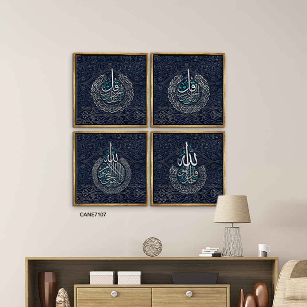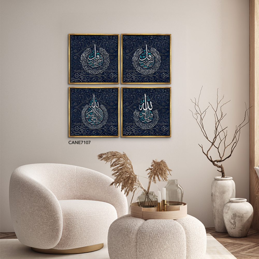 لوحة جدارية كانفس مقسمة ، آيات قرأنية - باللون الأسود والفضي - خط عربي و نقوش