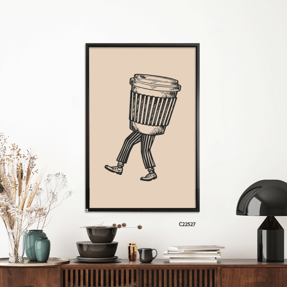 لوحة جدراية تحتوي كوب قهوة باللون البيج والاسود تناسب اللوحة المقاهي او ركن القهوة الخاص بك لتضفي له المزيد من الحيوية والاكتماللوحات جدارية مطبوعة عل...