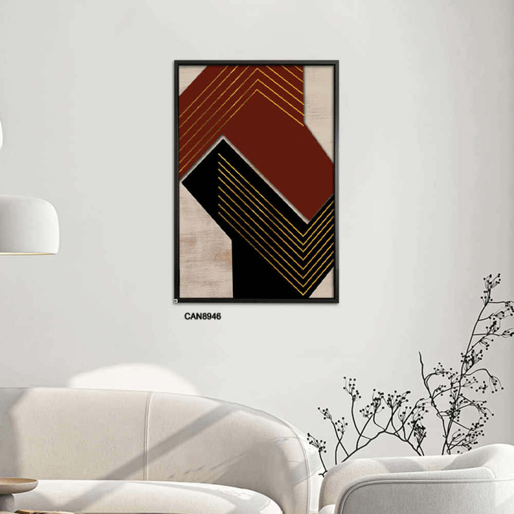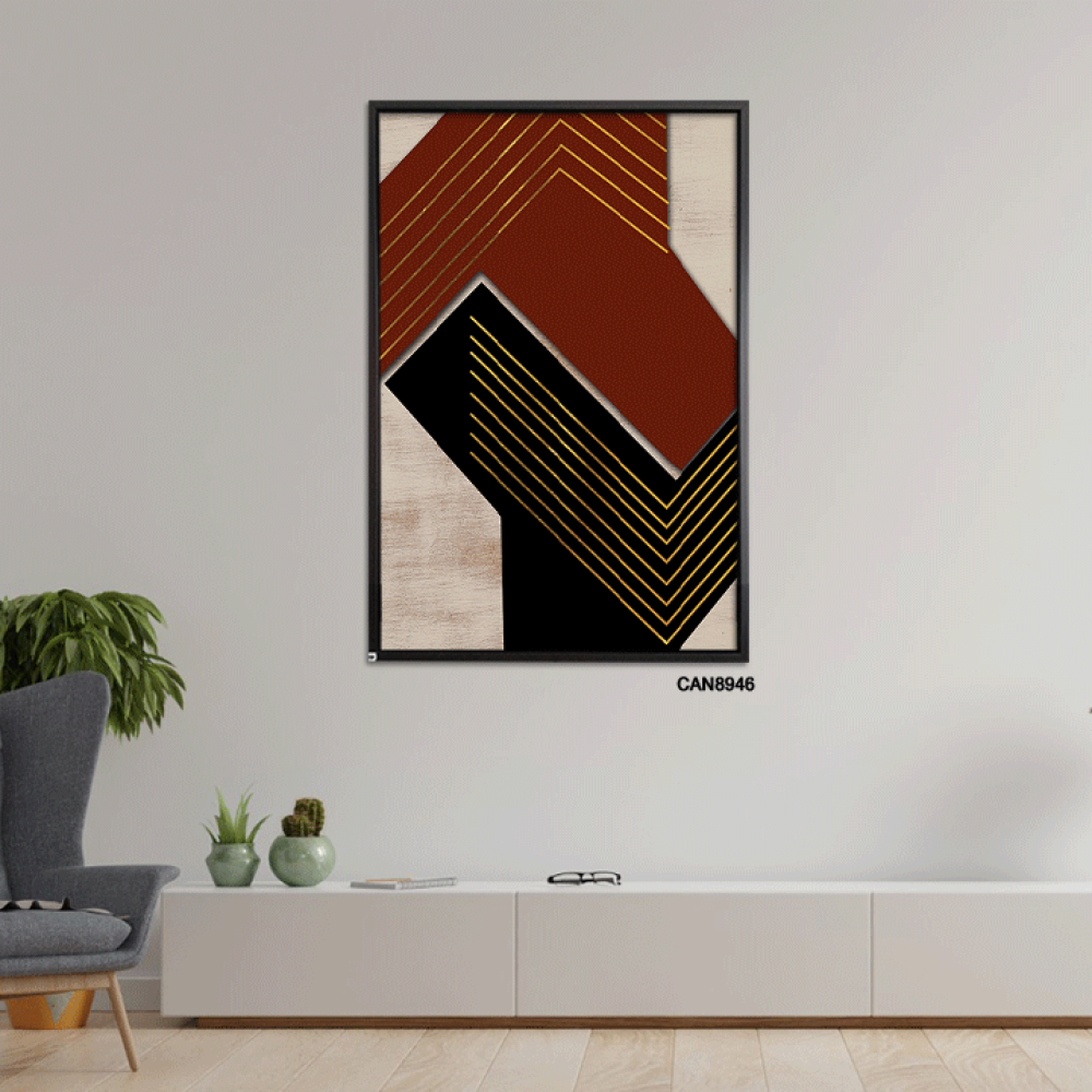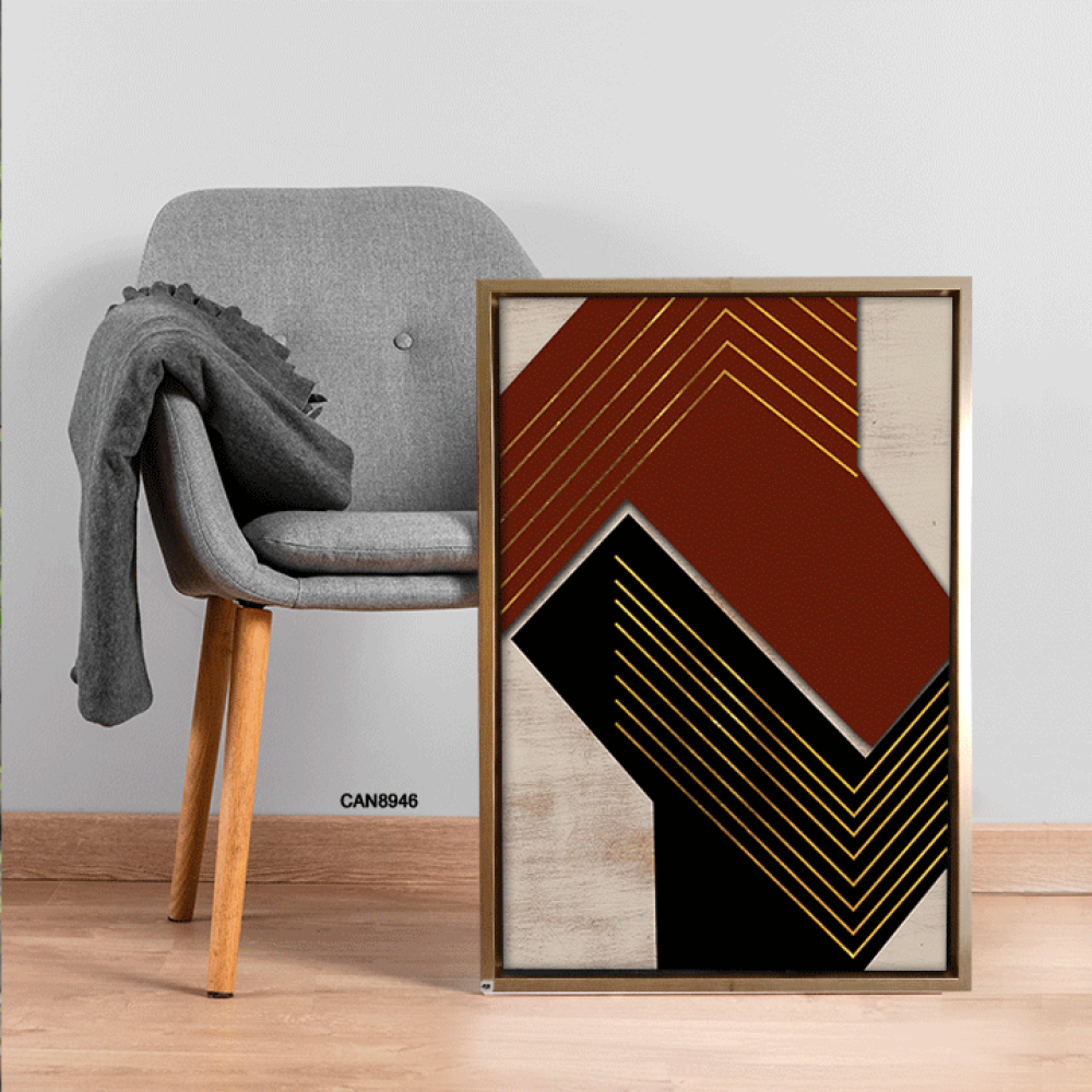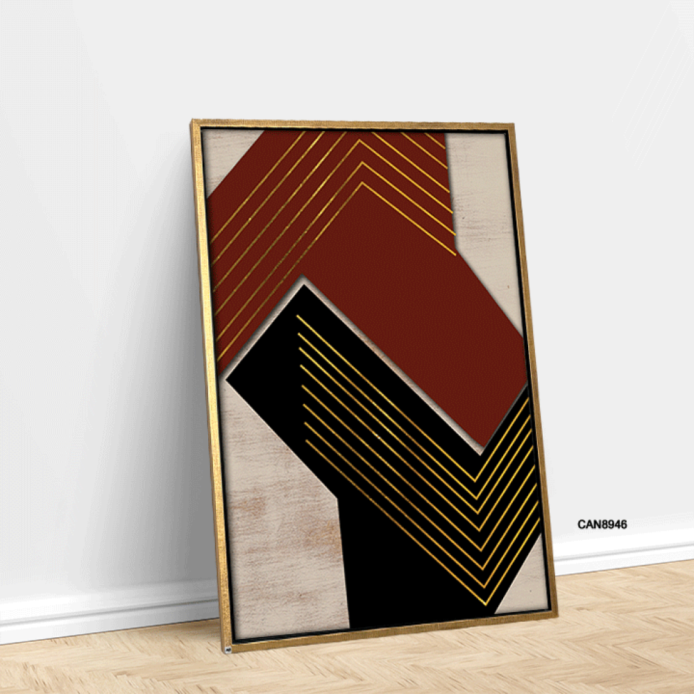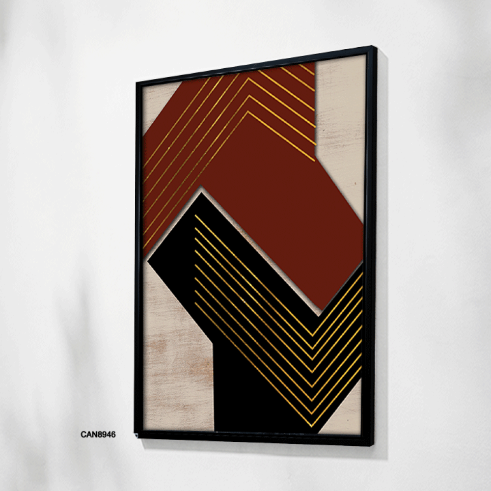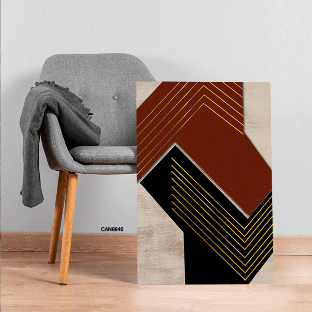لوحة فنية جدارية كانفس ، تداخل ألوان - اللون الأسود والعنابي مع الذهبي والبيج