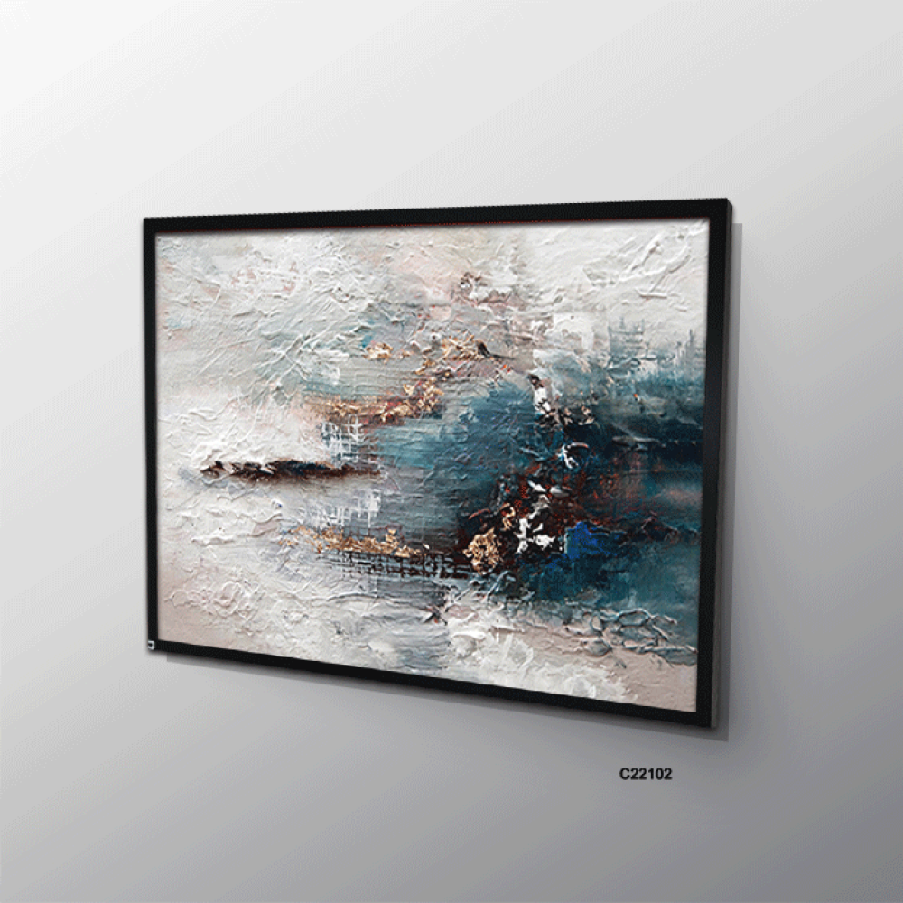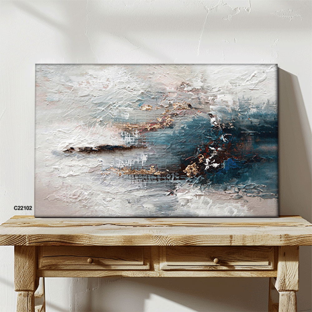 لوحة فنية جدارية كانفس ، تداخل الألوان - تدرجات البني والأزرق مع الرمادي والأبيض - فن تجريدي