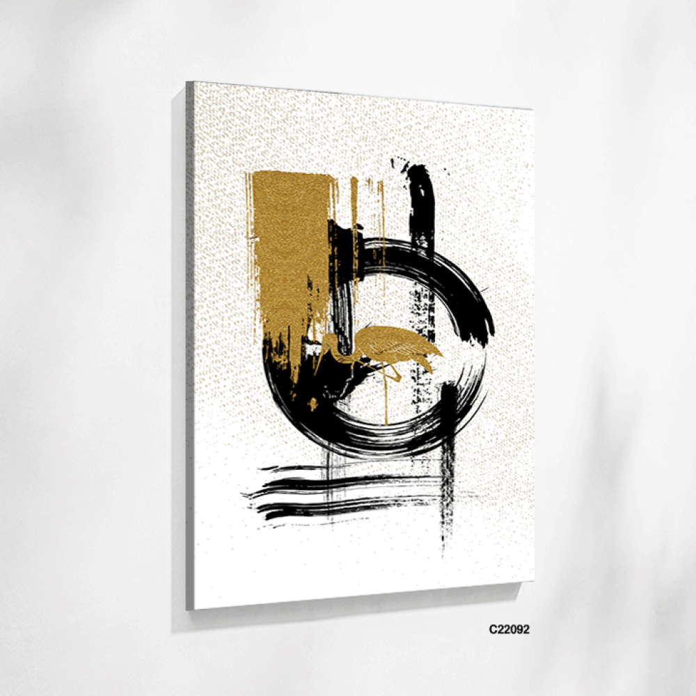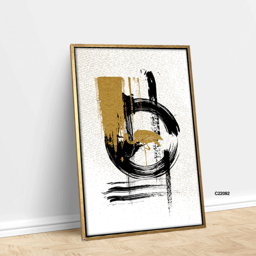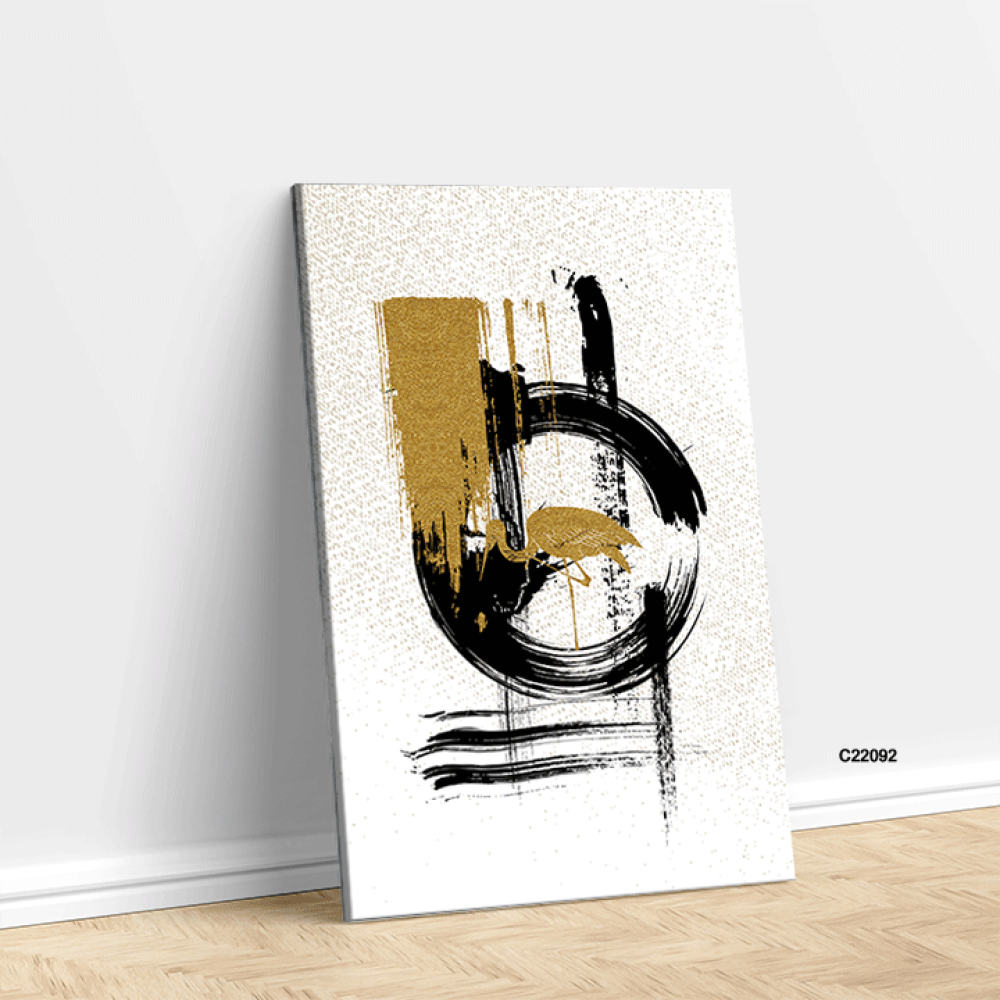 لوحة فنية جدارية كانفس ، دائرة - تدرجات الذهبي والأسود مع الأبيض - فن تجريدي