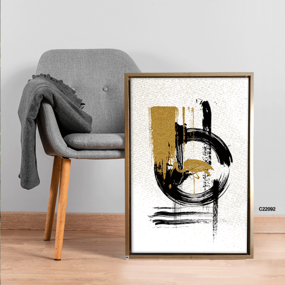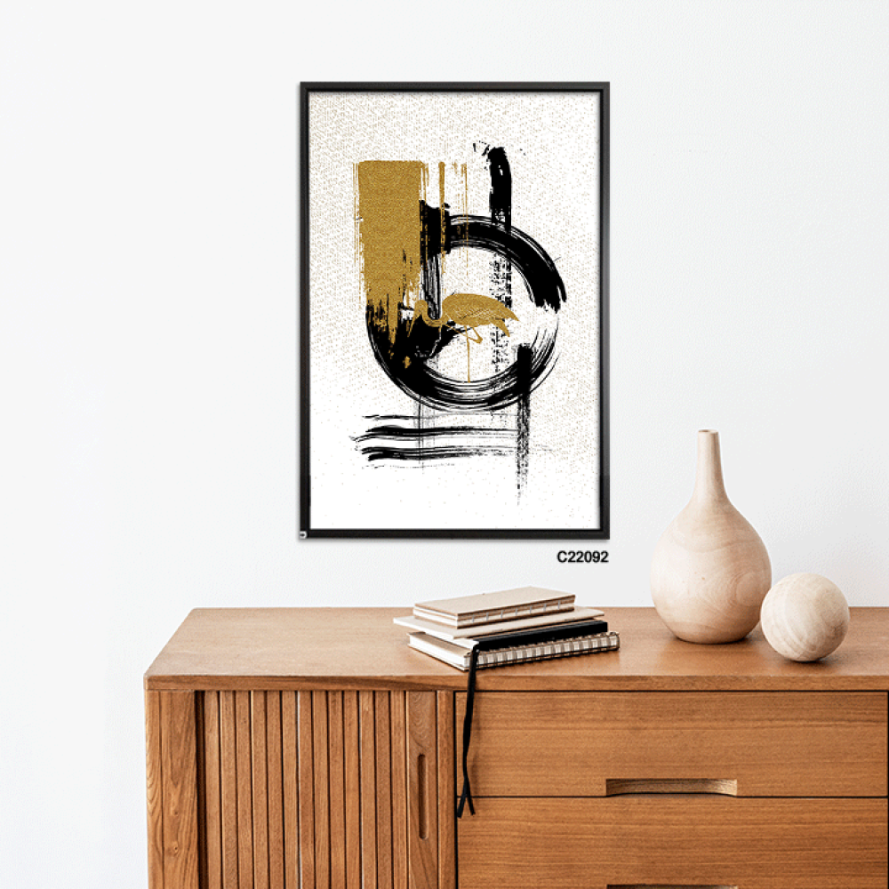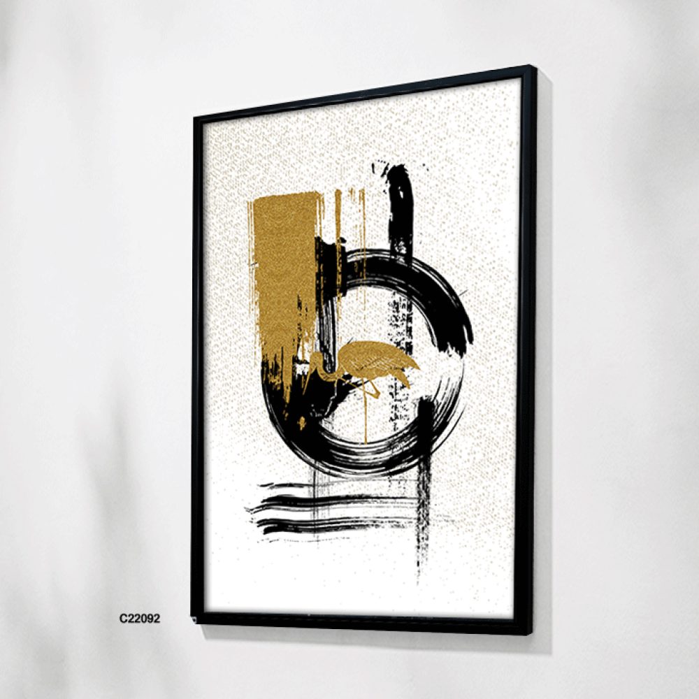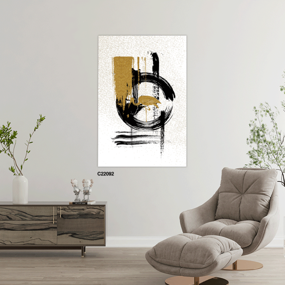 لوحة فنية جدارية كانفس ، دائرة - تدرجات الذهبي والأسود مع الأبيض - فن تجريدي