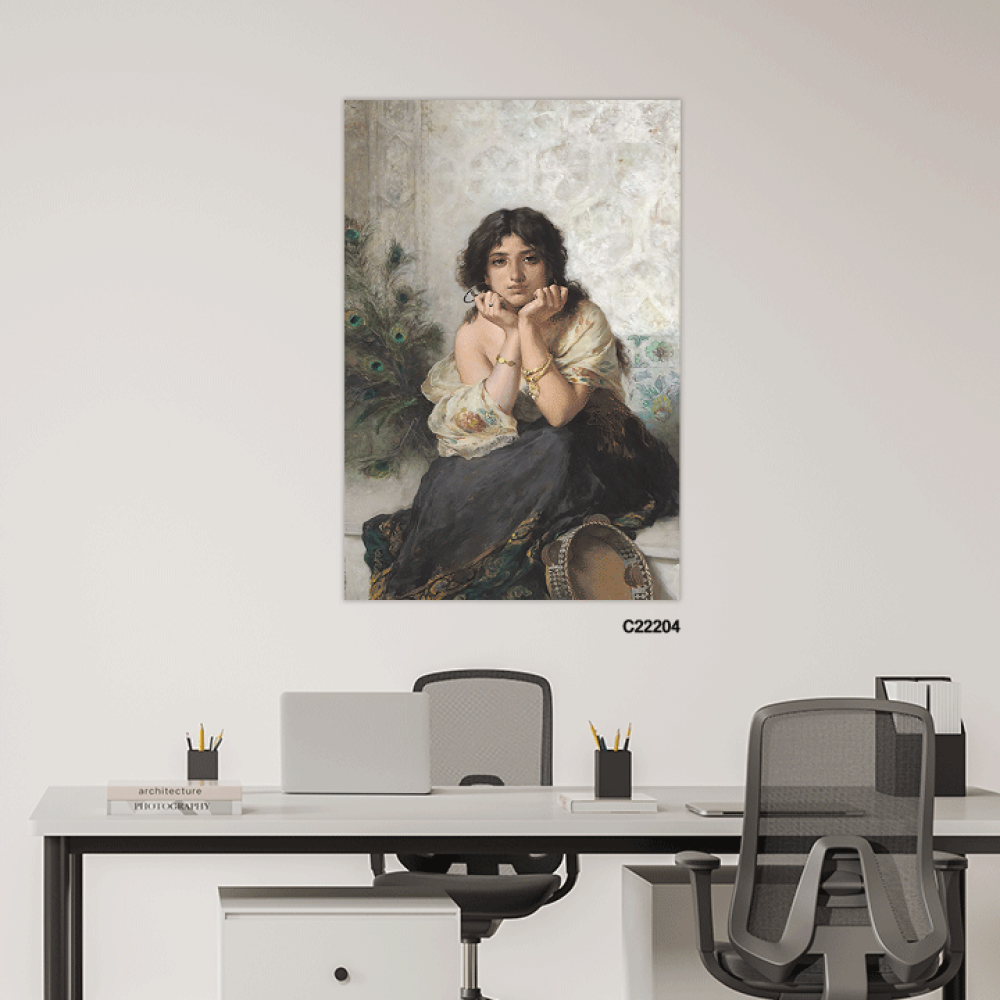 امنح ديكورك لمسة من الفن التشكيلي الراقي مع لوحة جدارية كانفسحيث يجسد التصميم جمال فتاة جالسة بنظرات متأملة بأسلوب فني فريد. تتألق هذه اللوحة بتدرجات ...
