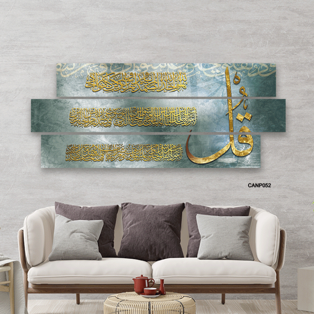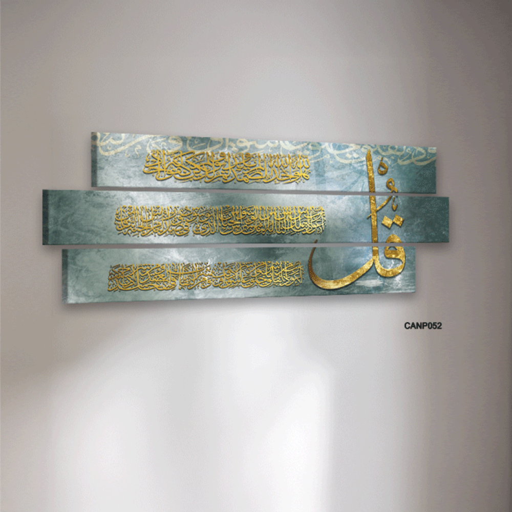 لوحة فنية جدارية كانفس آيات قرآنية القلاقل درجات الذهبي ورمادي مع التيفاني
