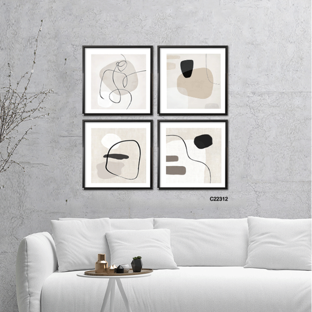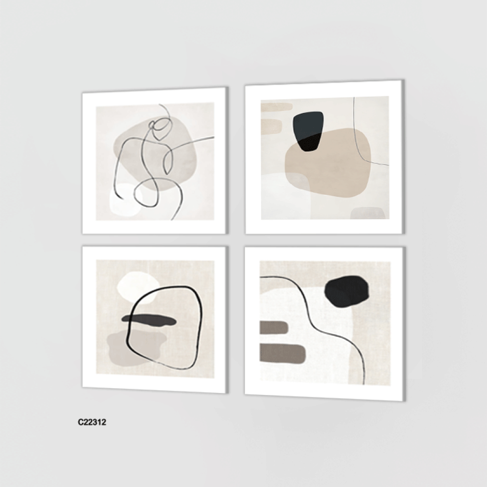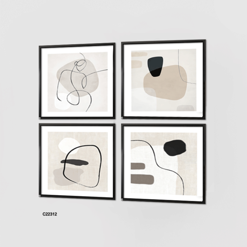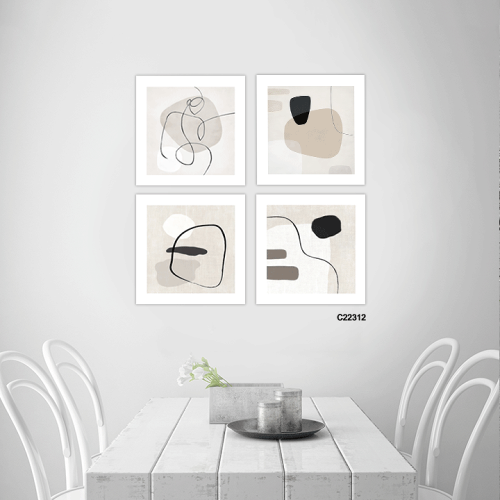 لوحة جدارية كانفس ، اشكال وخطوط - تدرجات الأسود رمادي أبيض