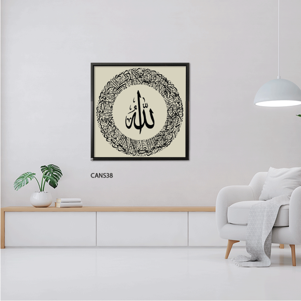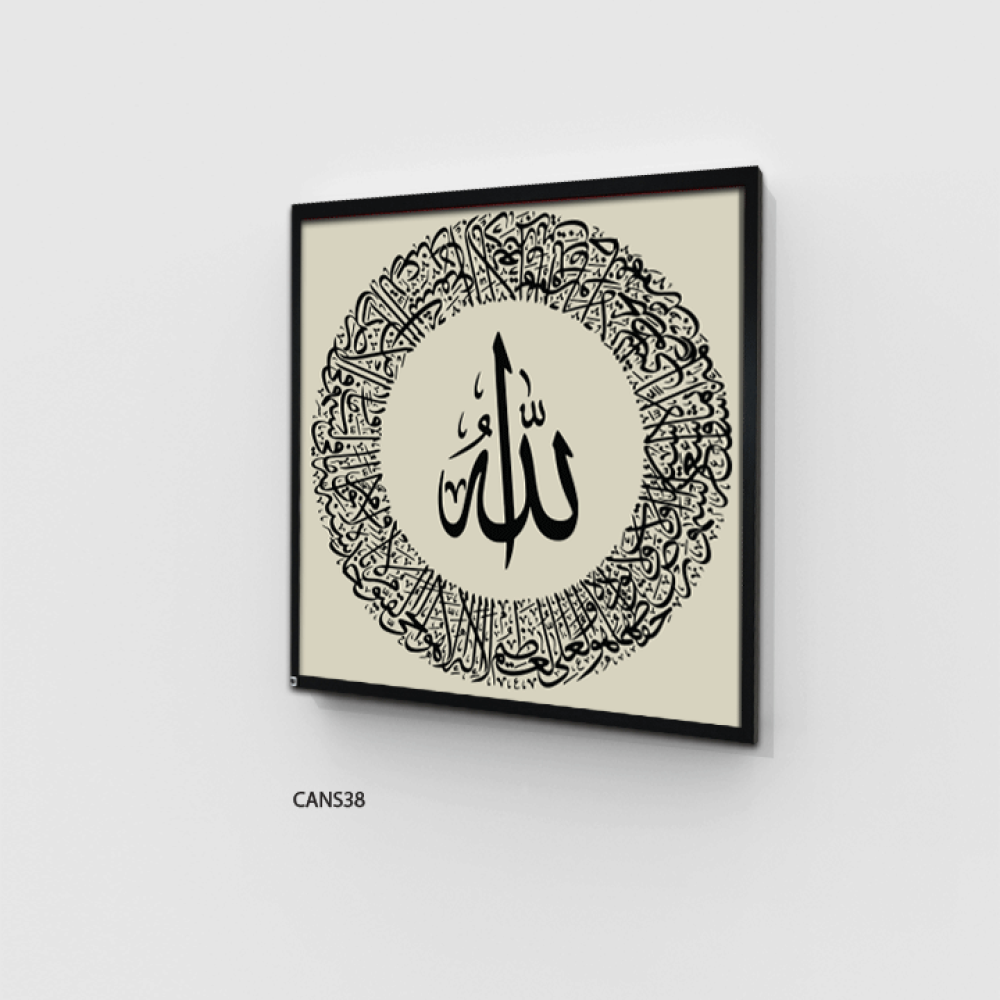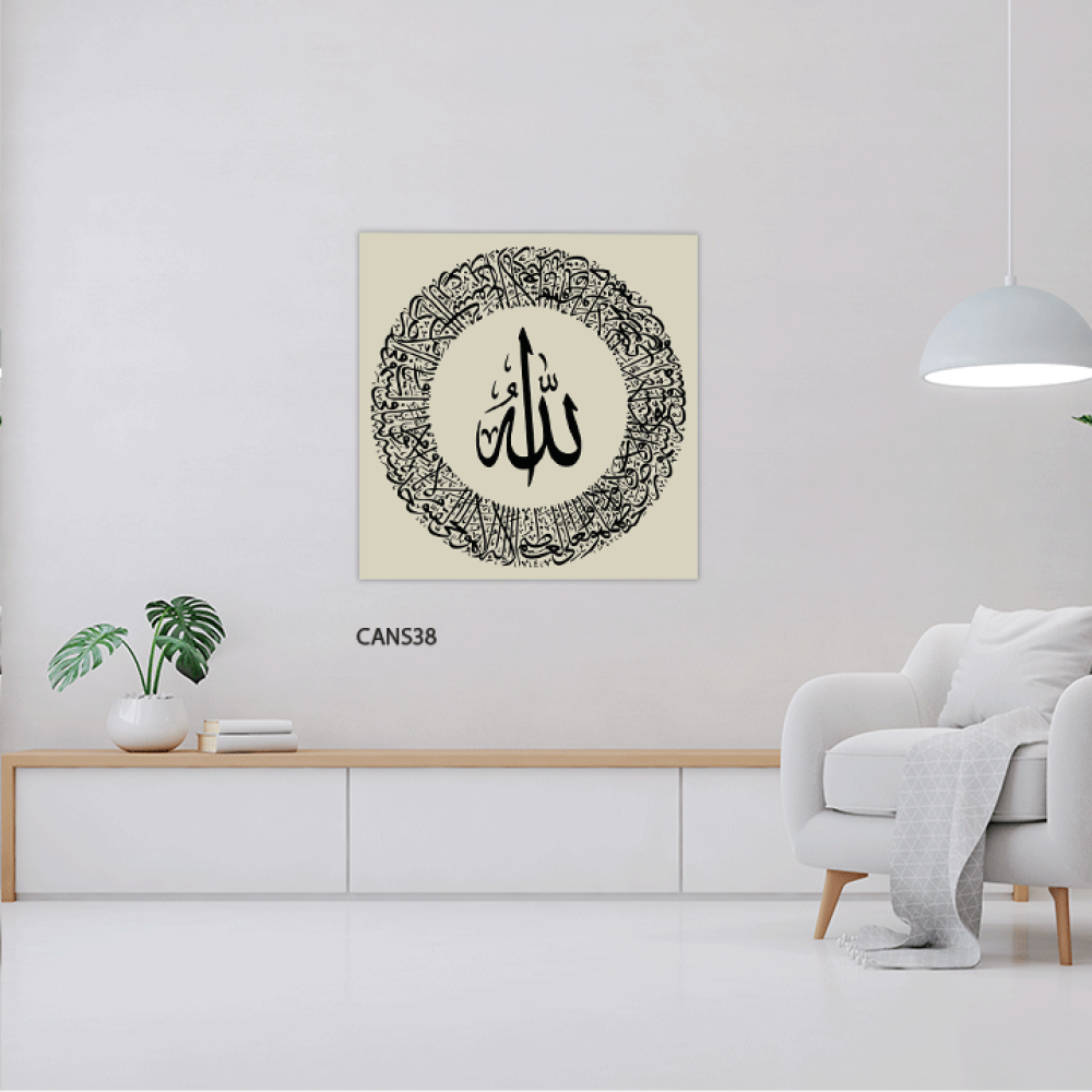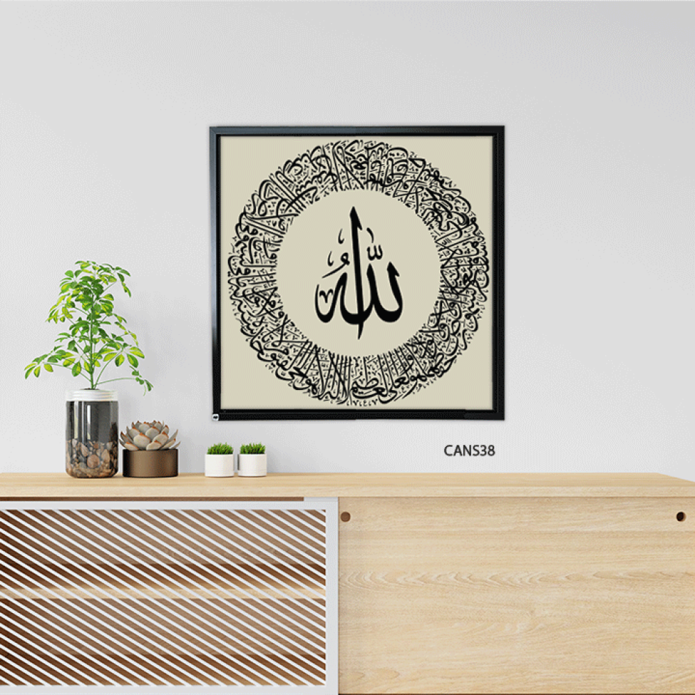 لوحة جدارية كانفس (الله) وآية الكرسي أسود وبيج