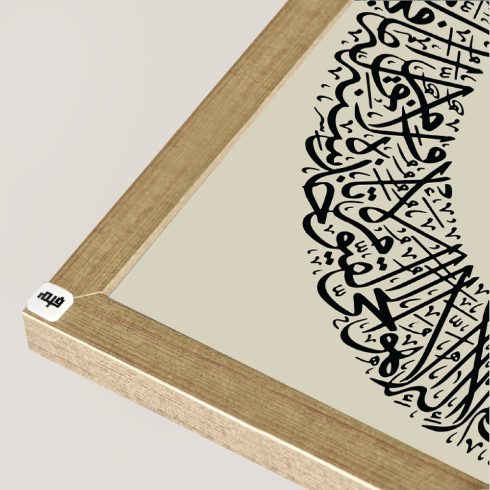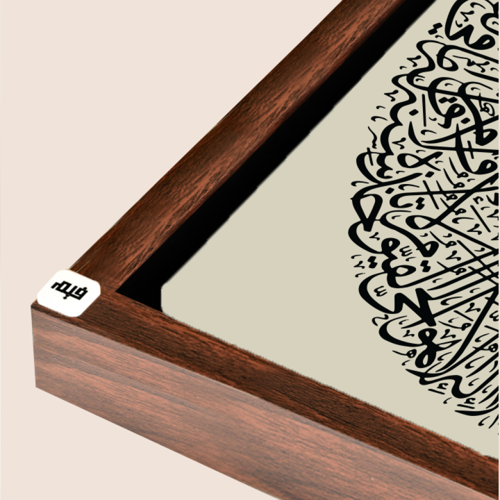 تأتي بتصميم تحمل آية الكرسي ولفظ الجلالة ( الله ) بخط عربي أنيق وزخارف إسلامية وبتدرجات الأسود مع البيج.