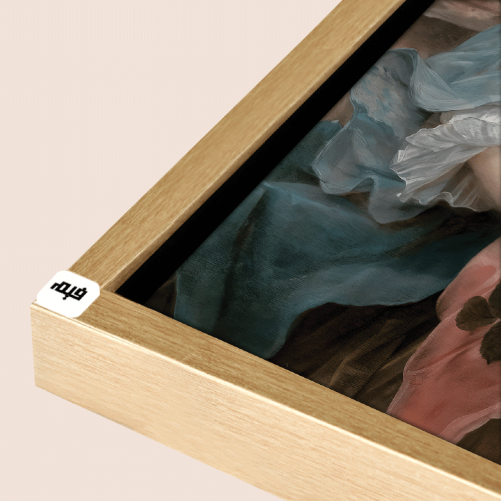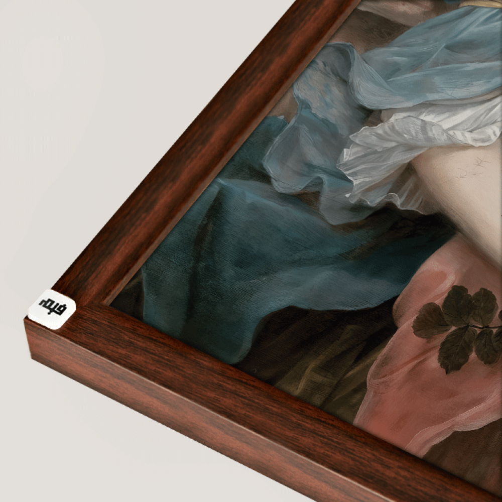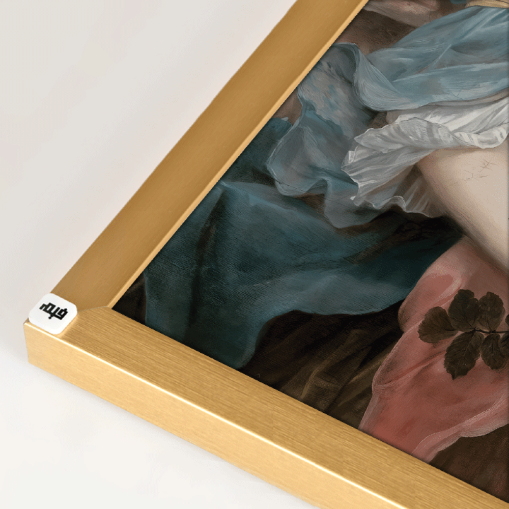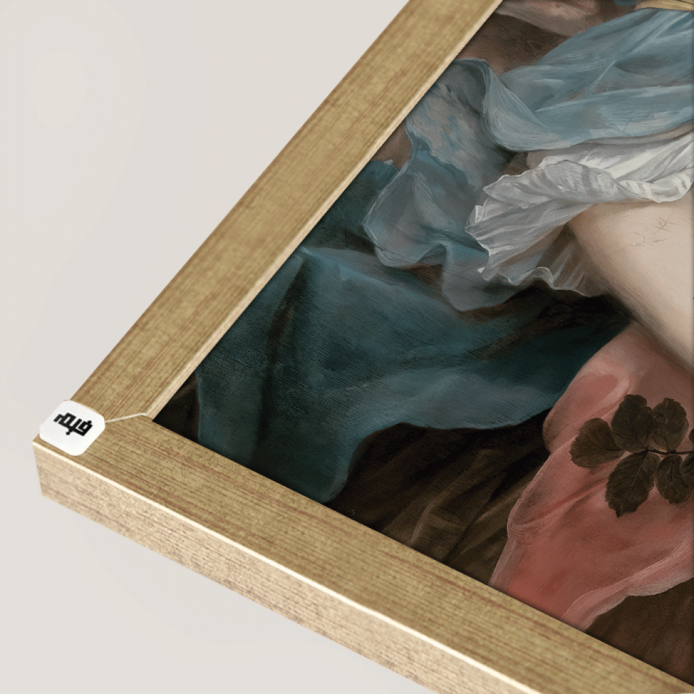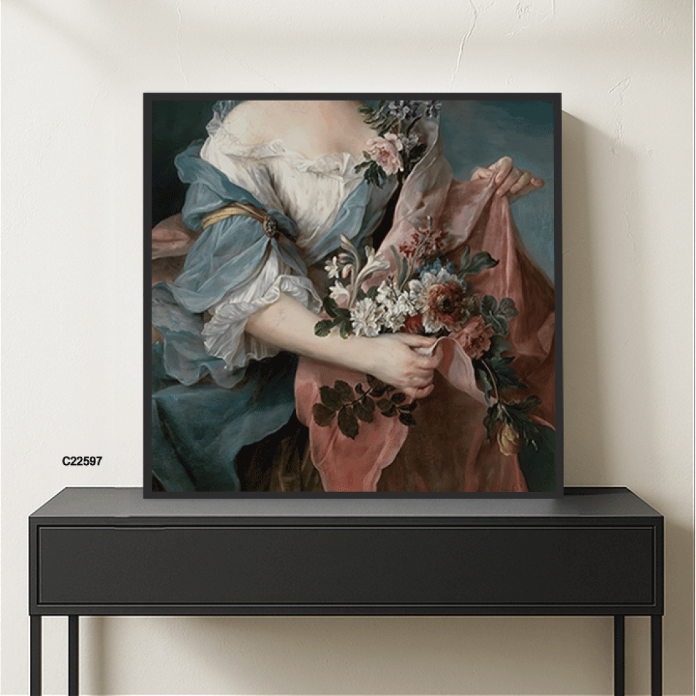 تُعرض اللوحة الجدارية على الكانفس تصميمًا فنيًا ساحرًا يجسد فتاة تحمل الأزهار والورود، بتدرجات أنيقة من الأزرق والبيج والوردي والأبيض والذهبي. هذا الع...
