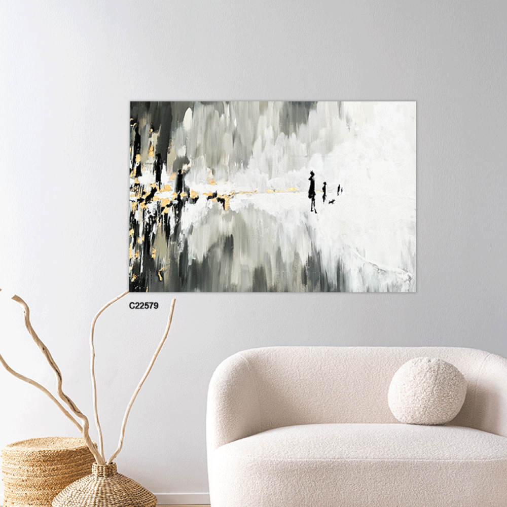 تُظهر اللوحة الجدارية على الكانفس تصميمًا فنيًا معاصرًا يجسد أشكالًا عشوائية متداخلة بتدرجات رائعة من الذهبي والأسود والأبيض والرمادي. يُضفي هذا المزيج من الألوان حيوية وتنوعًا على العمل الفني، مما يجعله قطعة جاذبة ومتميزة.* كود المنتج : C22579* سهلة التركيب لوجود حامل خلفي .* جاهزة للتركيب (يوجد مسامير مرفقة مع الطلب) .* الاطار الظاهر بالصورة افتراضي يمكن اختيار نوع وشكل الاطار او بدون الاطار.شاهد ايضا:لوحات جدارية كانفس خيوللوحات جدارية اسماء الله الحسنى
