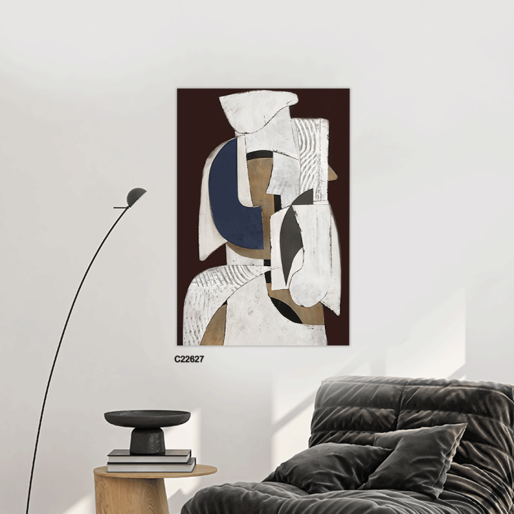 لوحة فنية جدارية تتكون من أشكال عشوائية متداخلة تجمع بين الألوان الحيادية والتدرجات الغامقة. الأشكال في اللوحة تأتي بتداخلات من الأبيض، الكحلي، البني،...