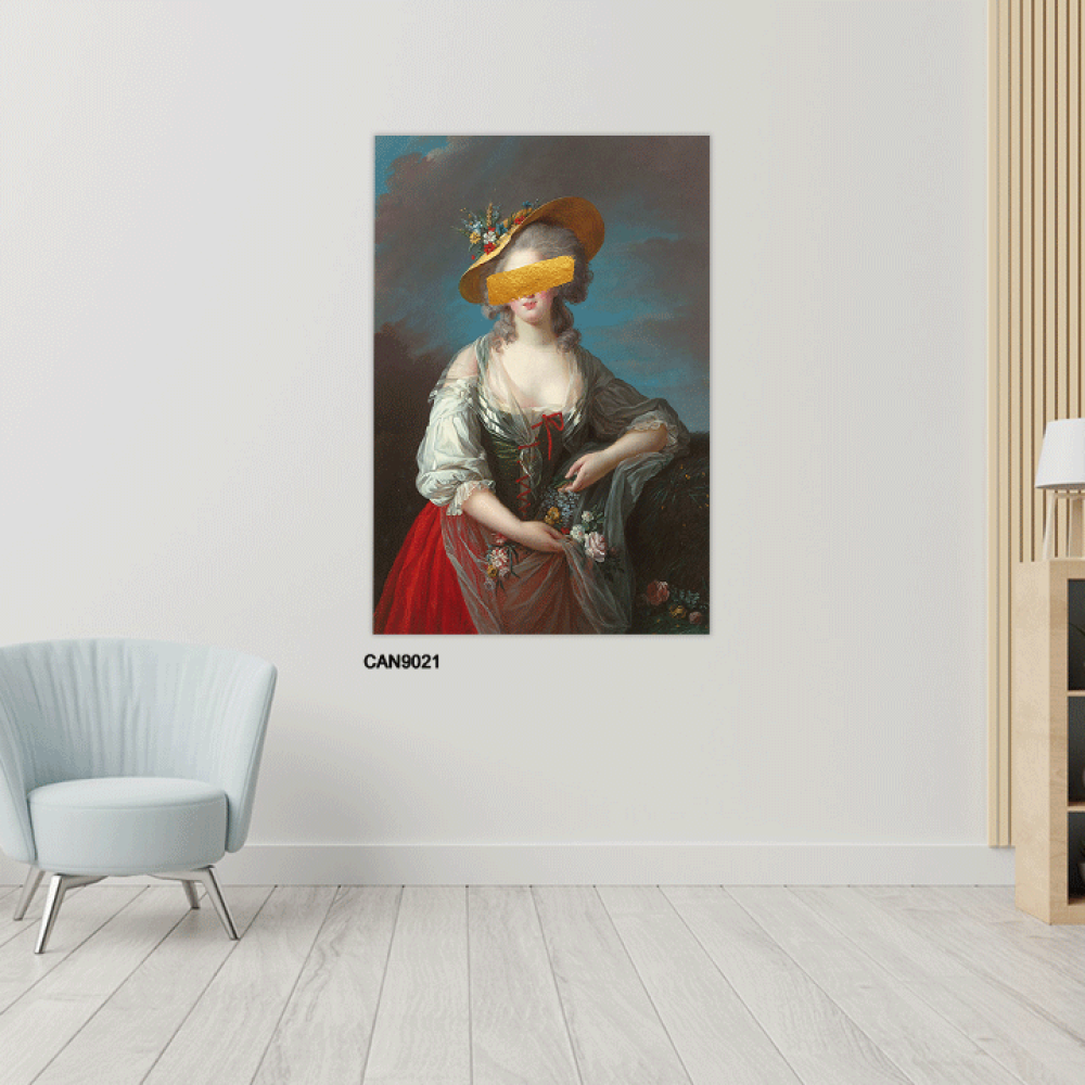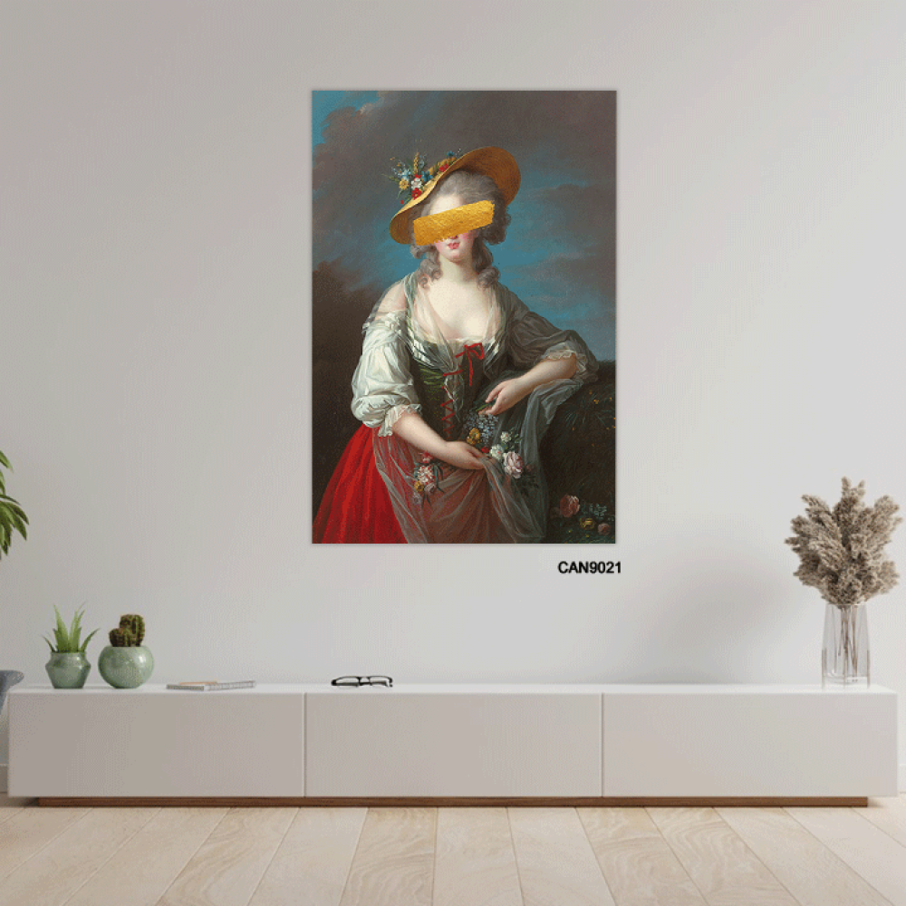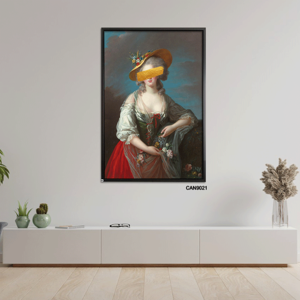 أضف لمسة كلاسيكية لديكورك مع لوحة جدارية كانفس !تأتي اللوحة بتصميم من الفن التشكيلي يصور سيدة بزي كلاسيكي من العصر الفيكتوري تدرجات الأحمر والأسود وال...
