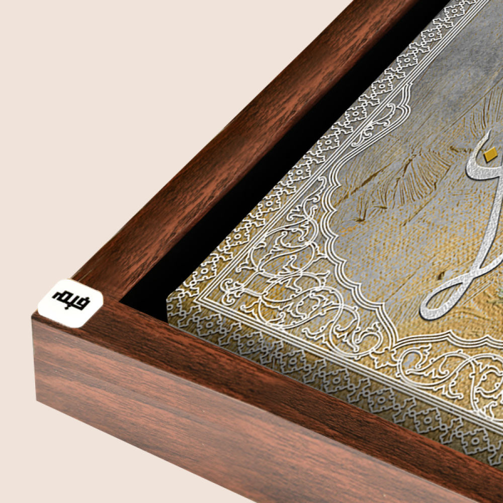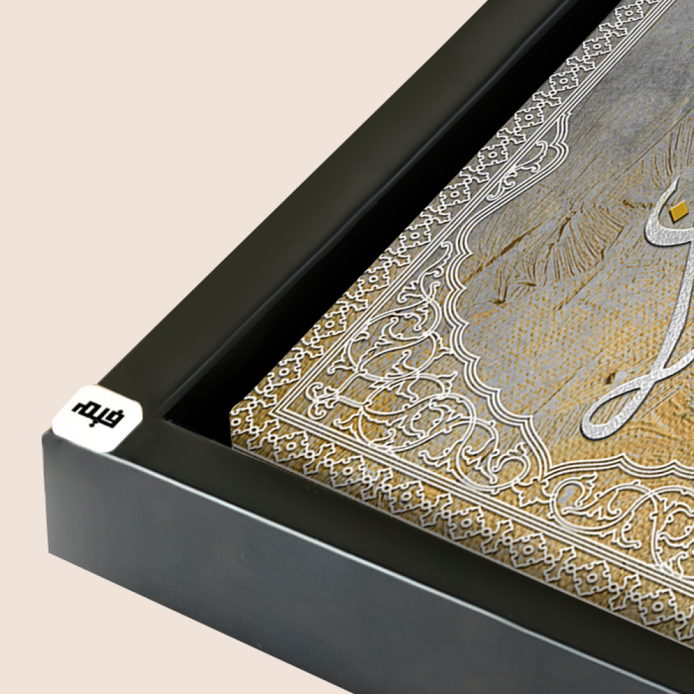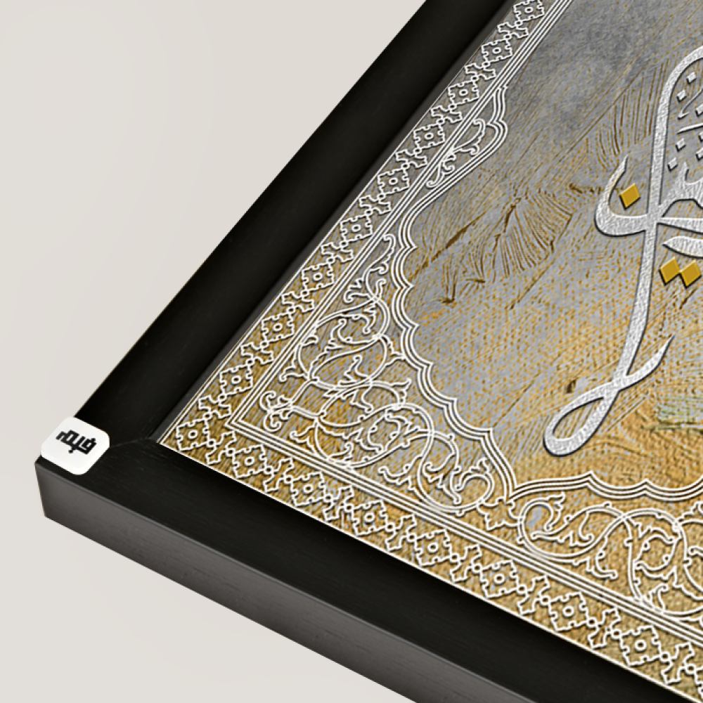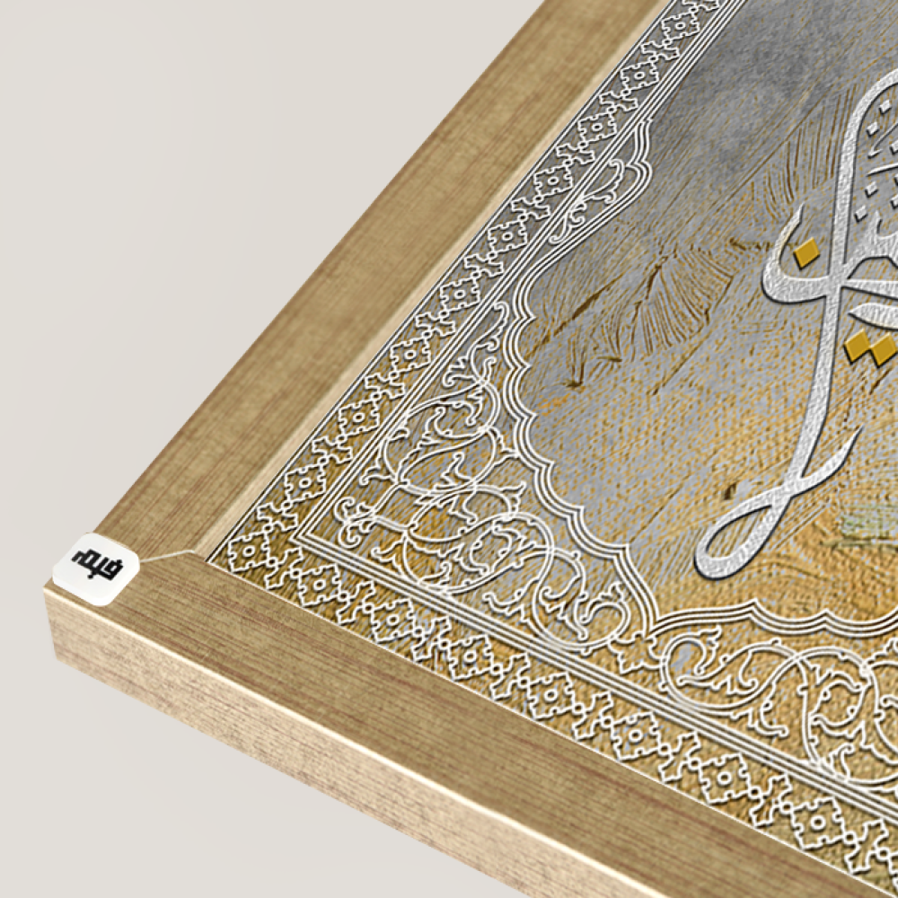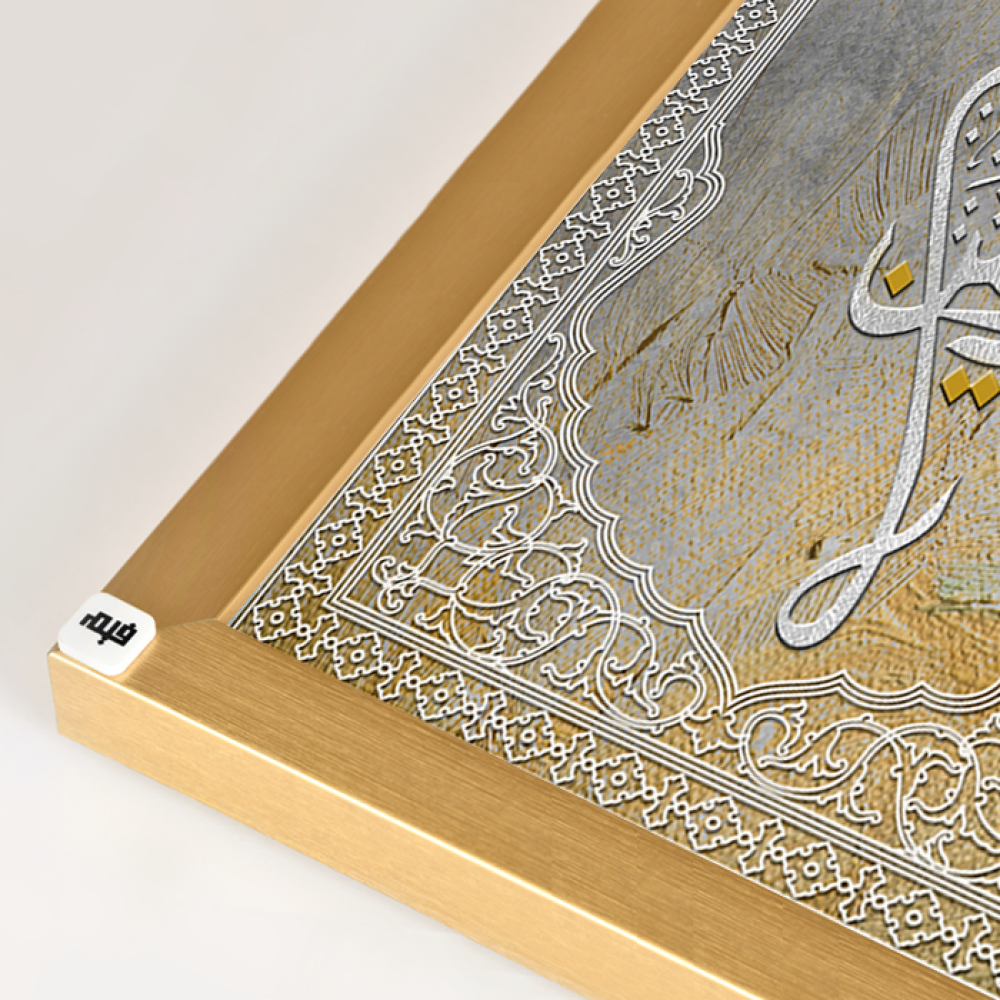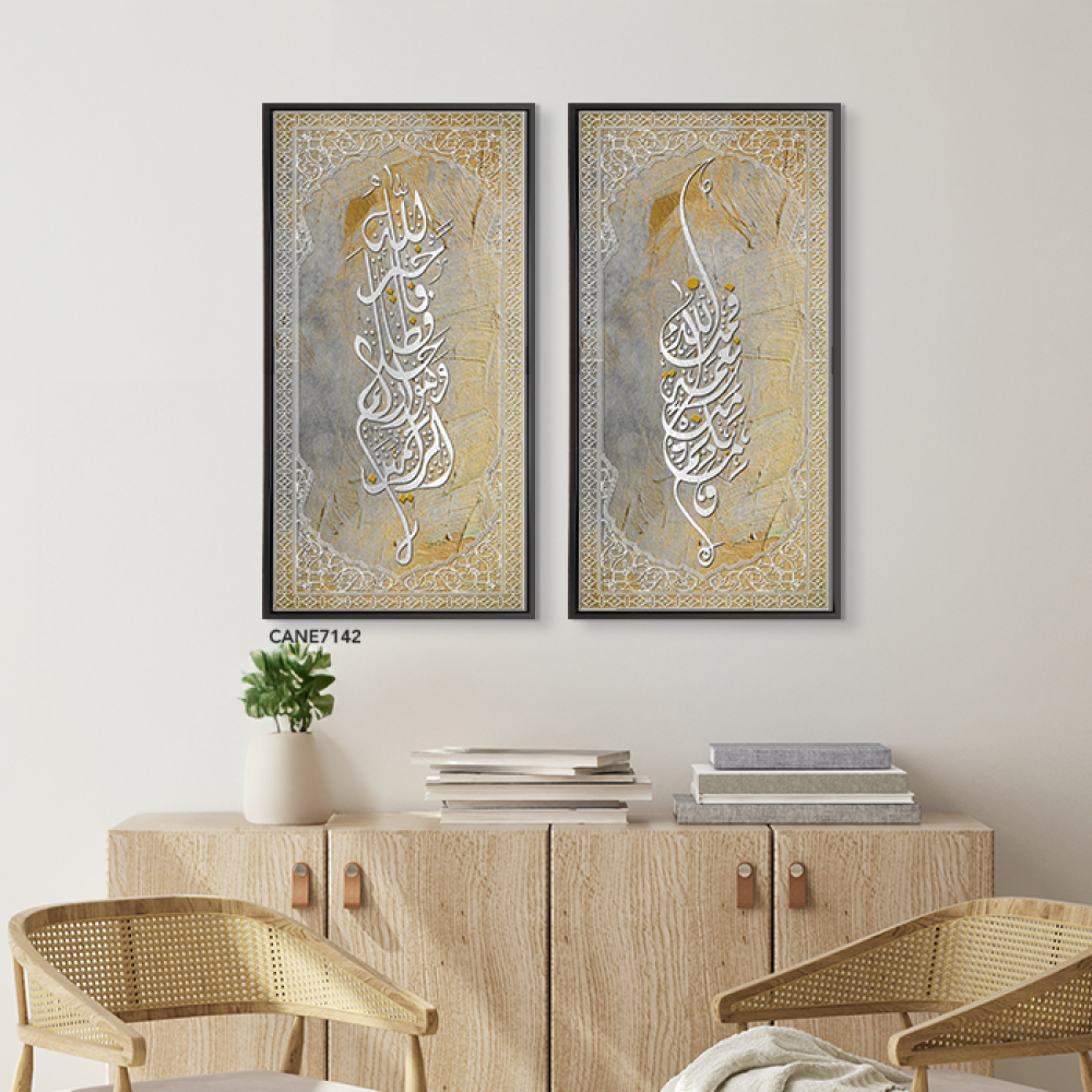 لوحة جدارية كانفس مقسمة ، آية قرأنية (الله خير حافظ - فما بكم من نعمة فمن الله) - درجات الذهبي والفضي مع البيج - خط عربي ونقوش