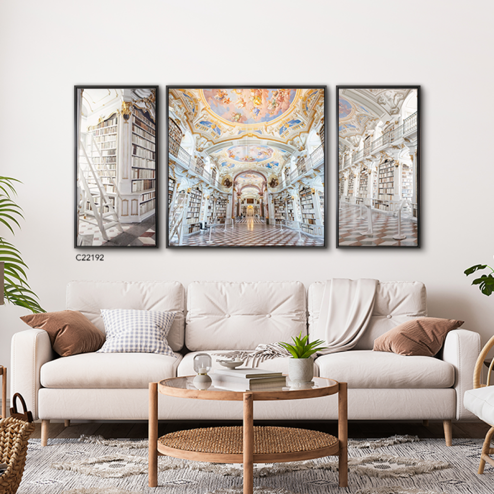 لوحة جدارية كانفس مقسمة مكتبة من العصر الفكتوري