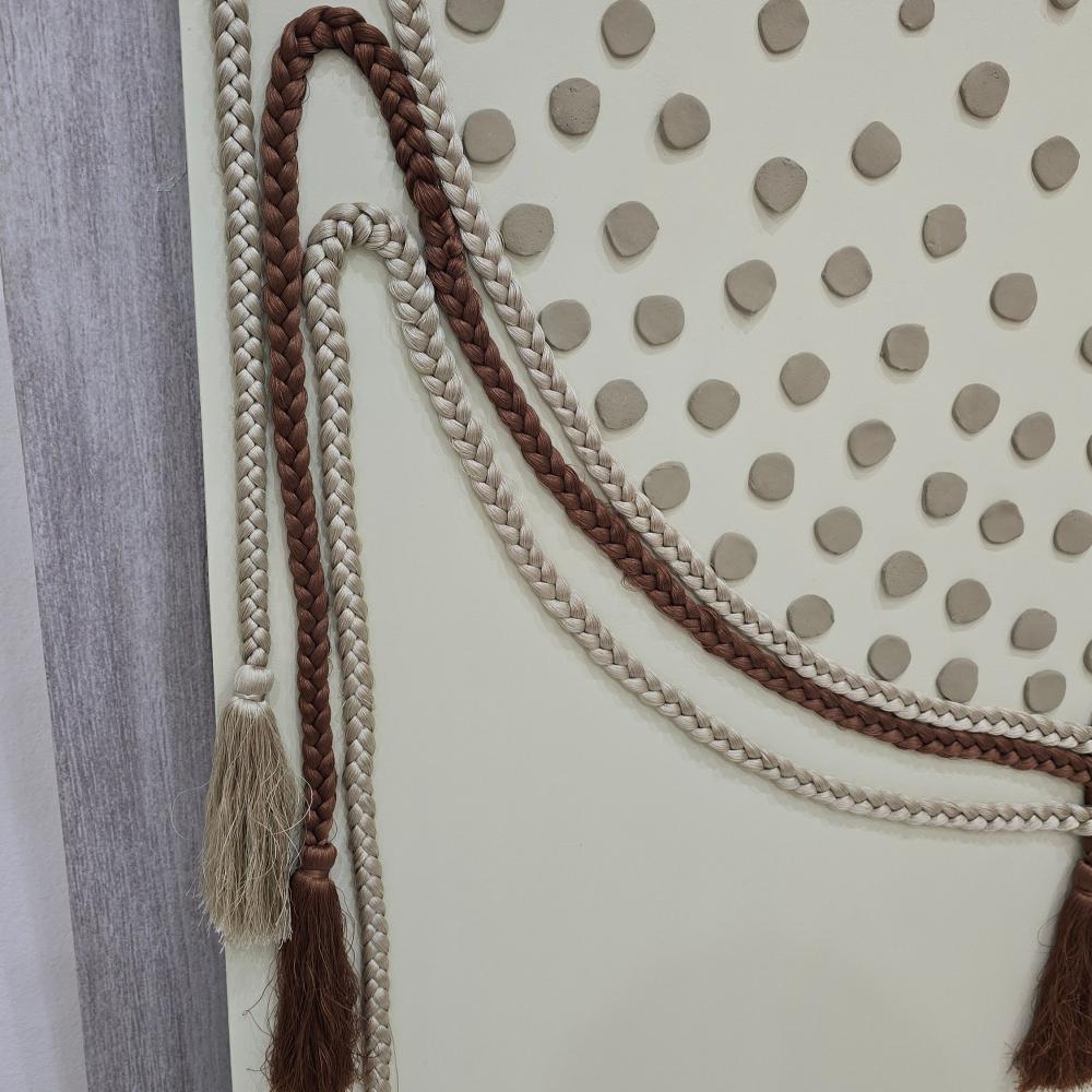 لوحة يدوية بتصميم مبتكر يدمج الحبال والجبس بتدرجات البيج والبني