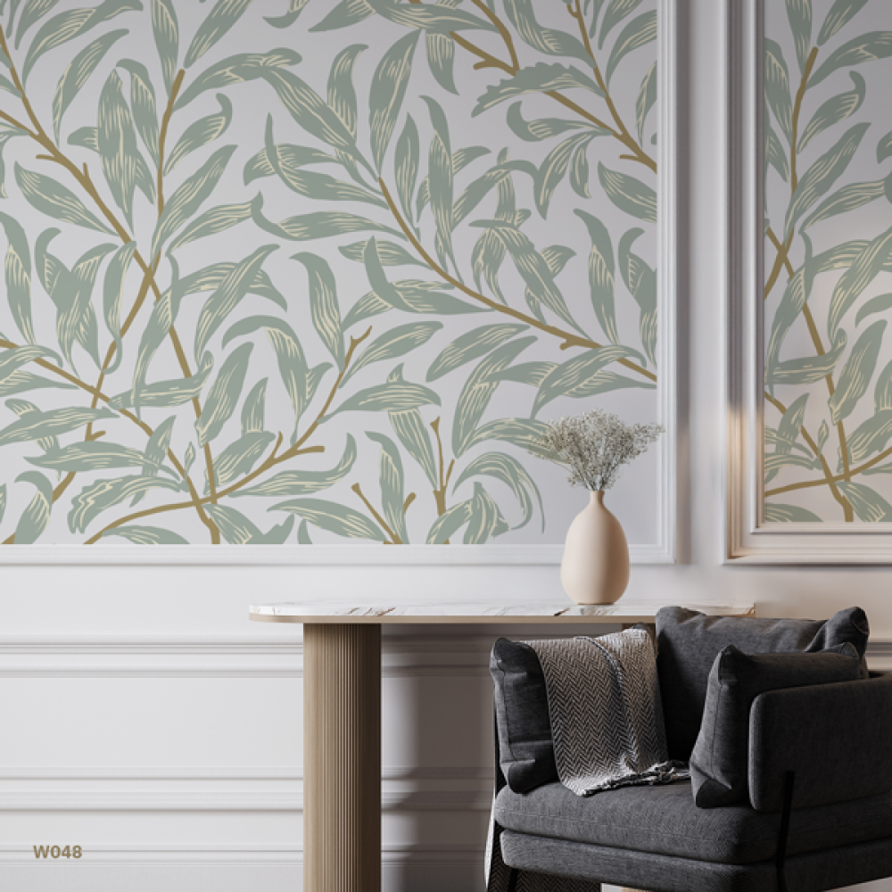 ورق حائط ، اغصان واوراق متداخلة - تدرجات الاخضر والبني