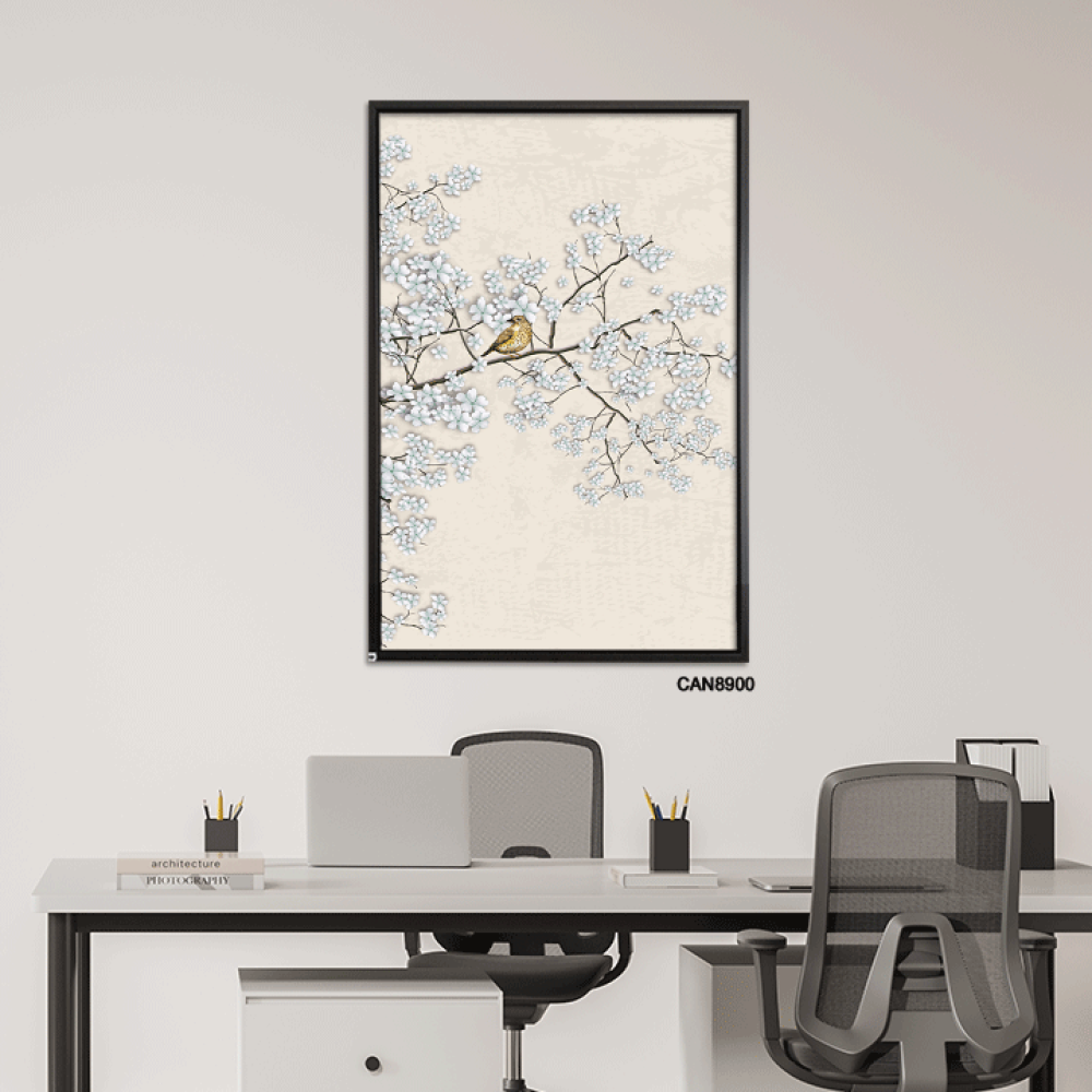 لوحة فنية جدارية كانفس طير وأغصان اللون البيح مع البني والأبيض