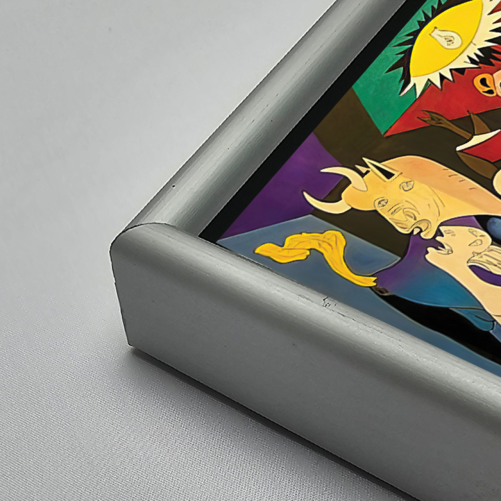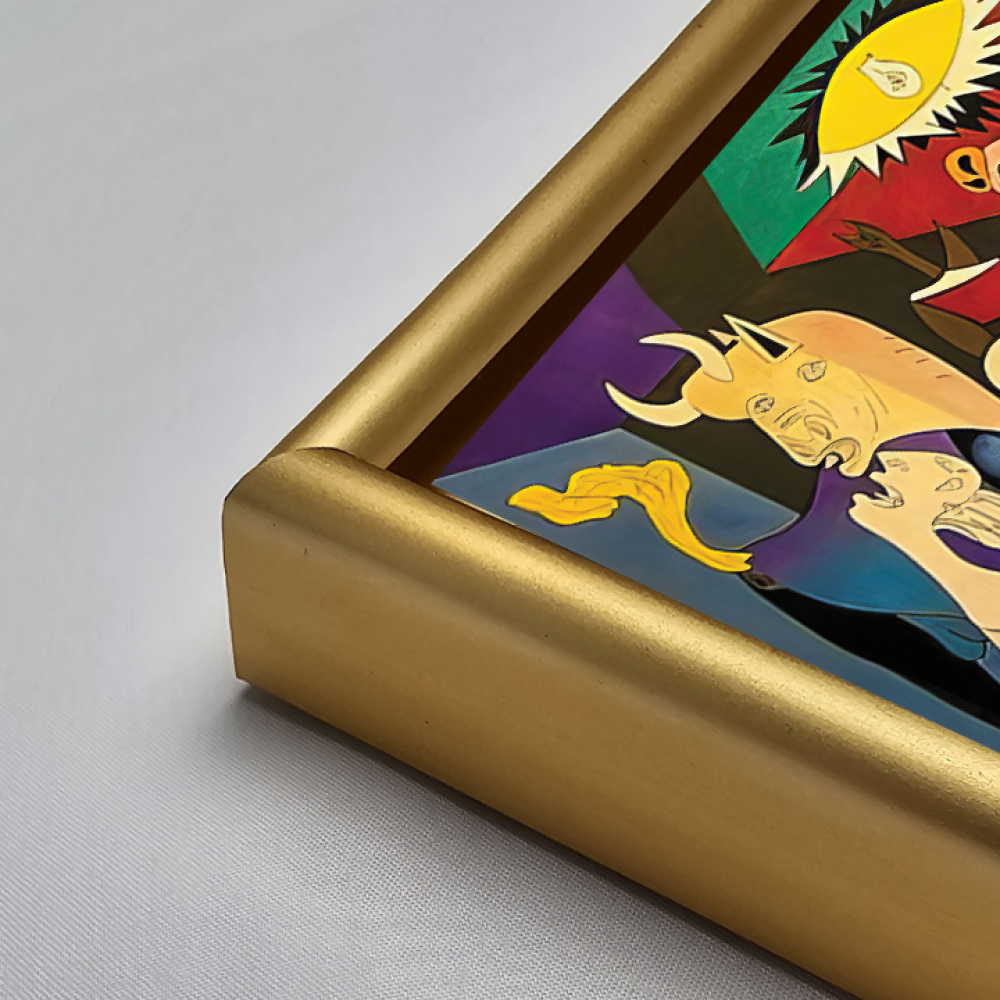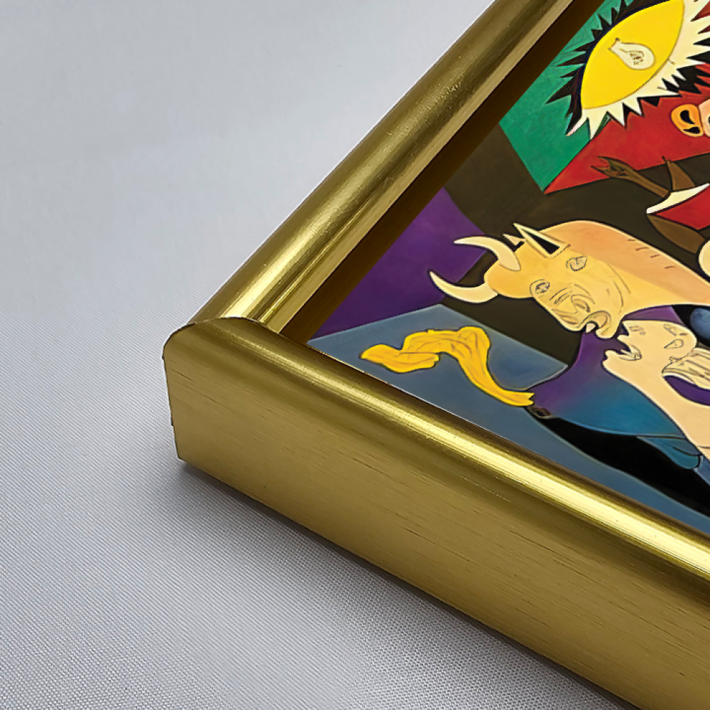 لوحة فنية جدارية أكريليك بتصميم مستوحى من لوحة "غيرنيكا" الشهيرة للفنان الإسباني بابلو بيكاسو، تتميز بتدرجات الأسود والأبيض مع لمسات من الأصفر والأحمر، ما يمنحها تأثيرًا بصريًا جريئًا ومميزًا، ليضيف لمسة من الفن المعاصر لأي مساحة توضع فيها.