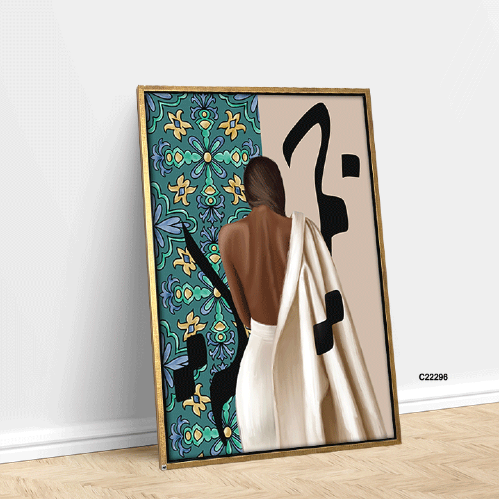 لوحة جدارية كانفس فتاة لوحة اسماء " جميلة " تدرجات البيج والبني