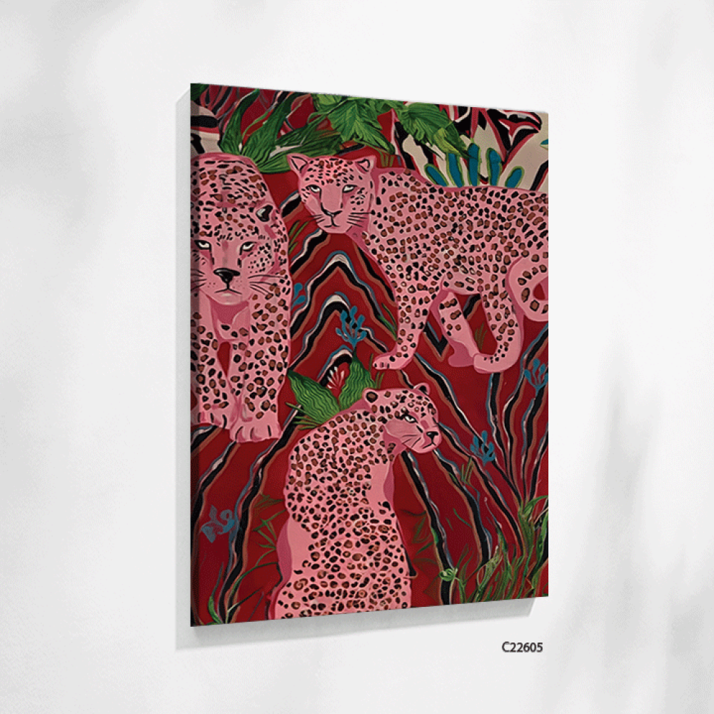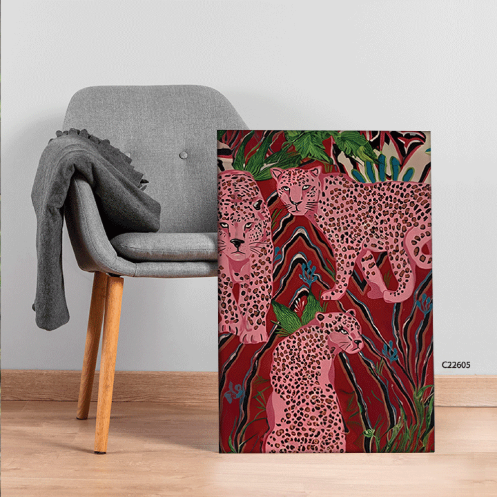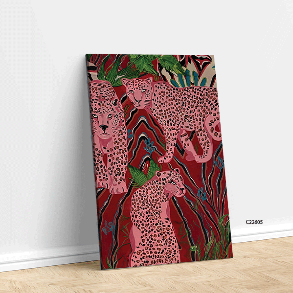 لوحة جدارية كانفس تصور فهود بتدرجات الوردي و الاحمر