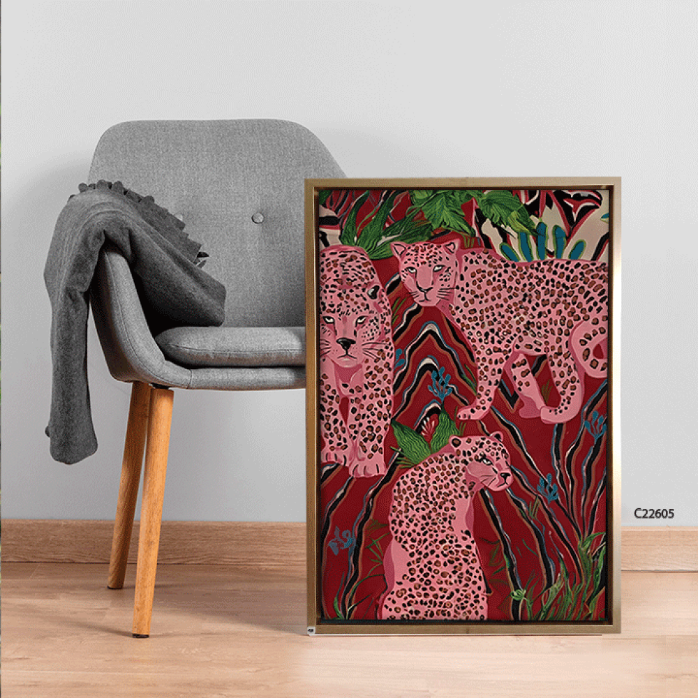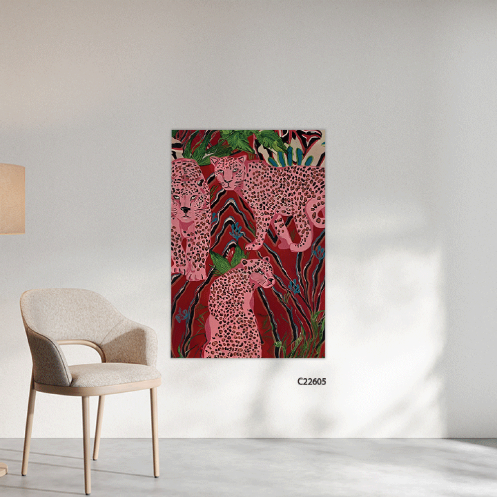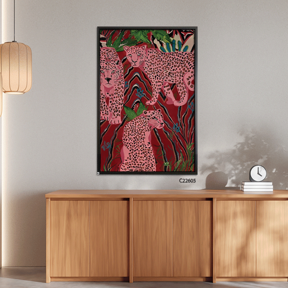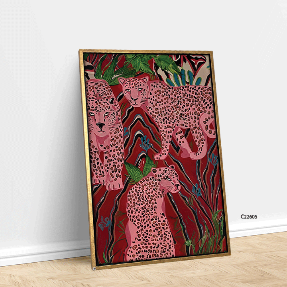 لوحة جدارية كانفس تصور فهود بتدرجات الوردي و الاحمر