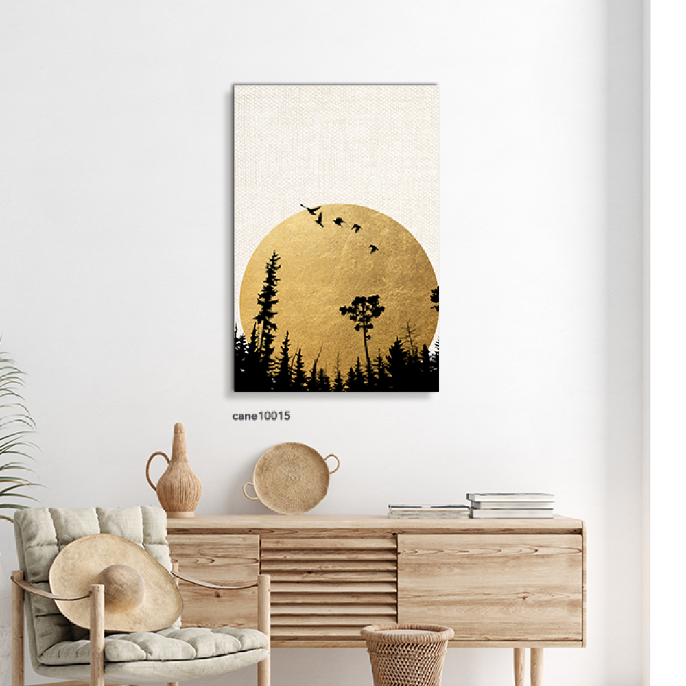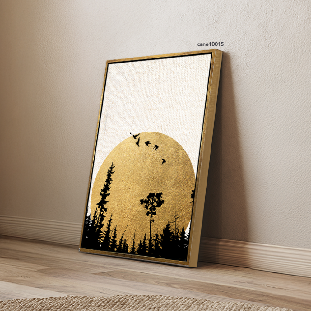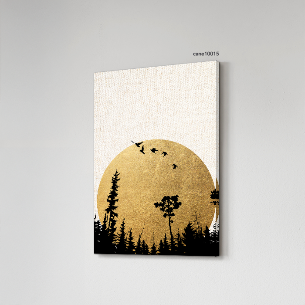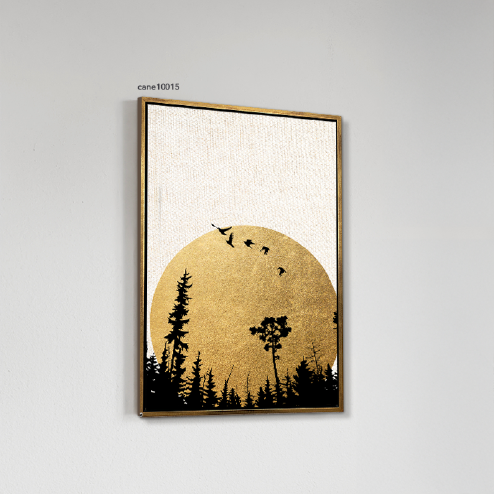 لوحة جدارية كانفس دائرة وطيور وأشجار