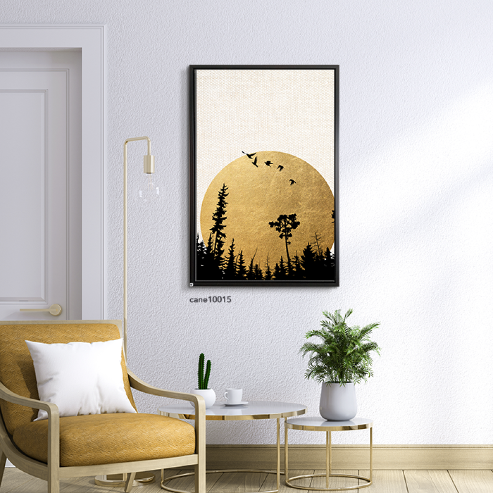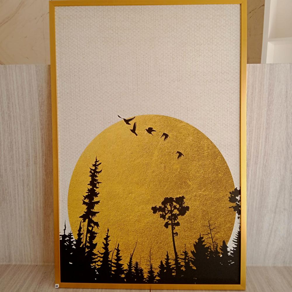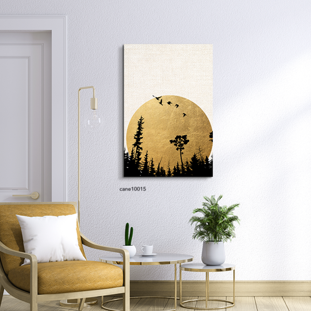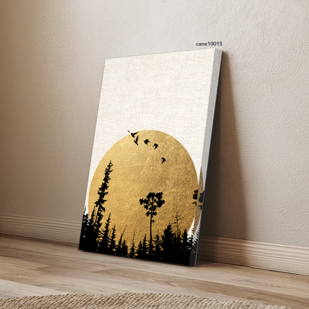 لوحة جدارية كانفس دائرة وطيور وأشجار